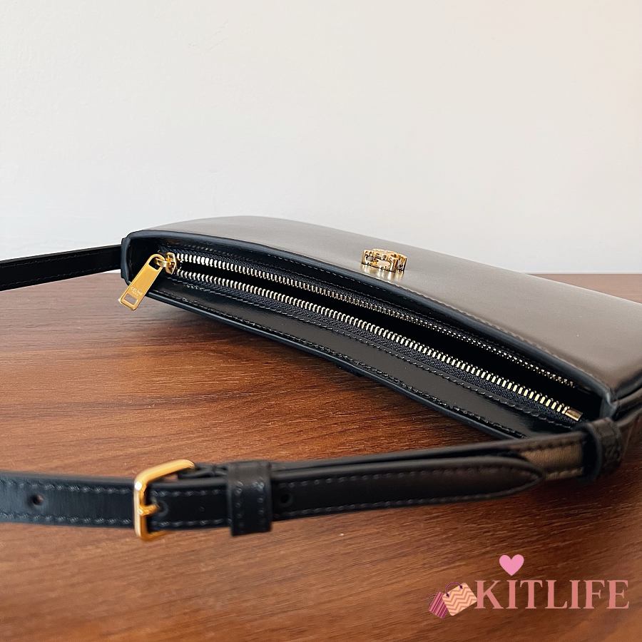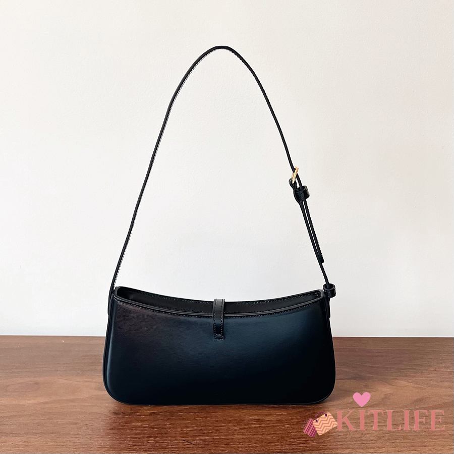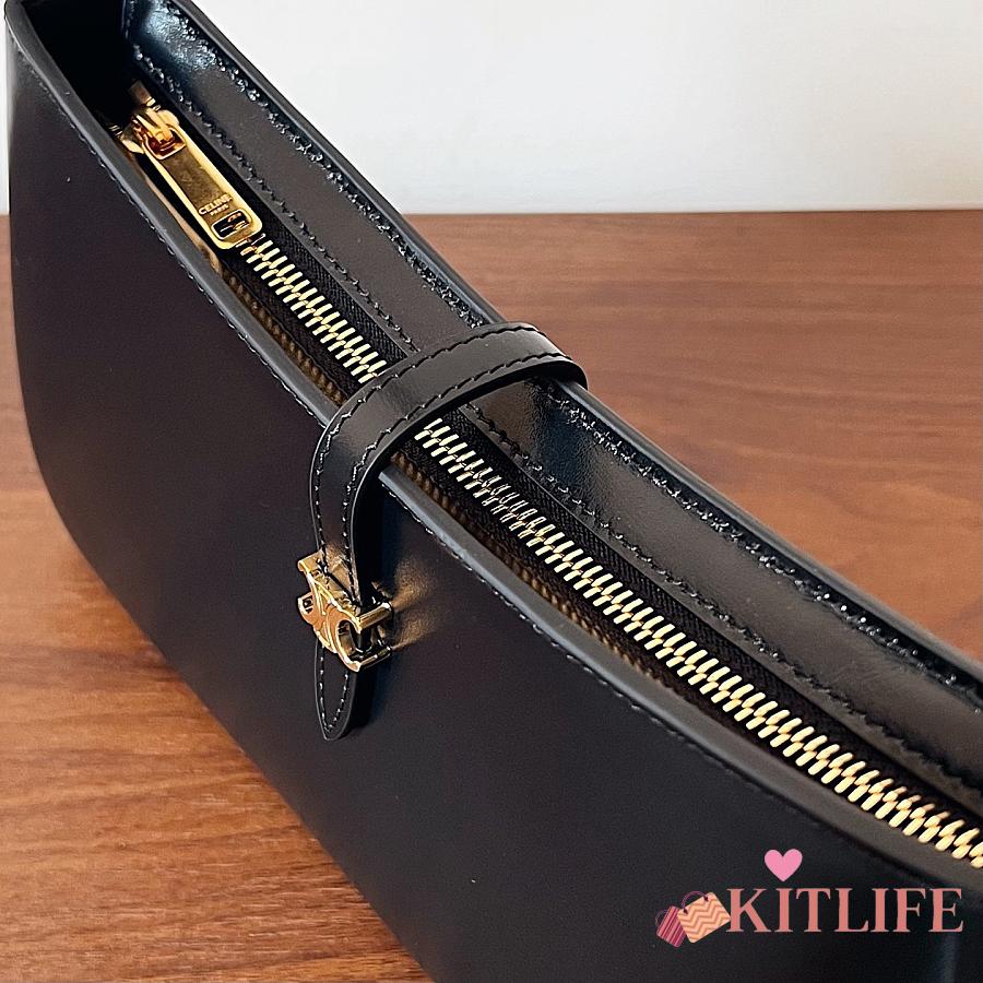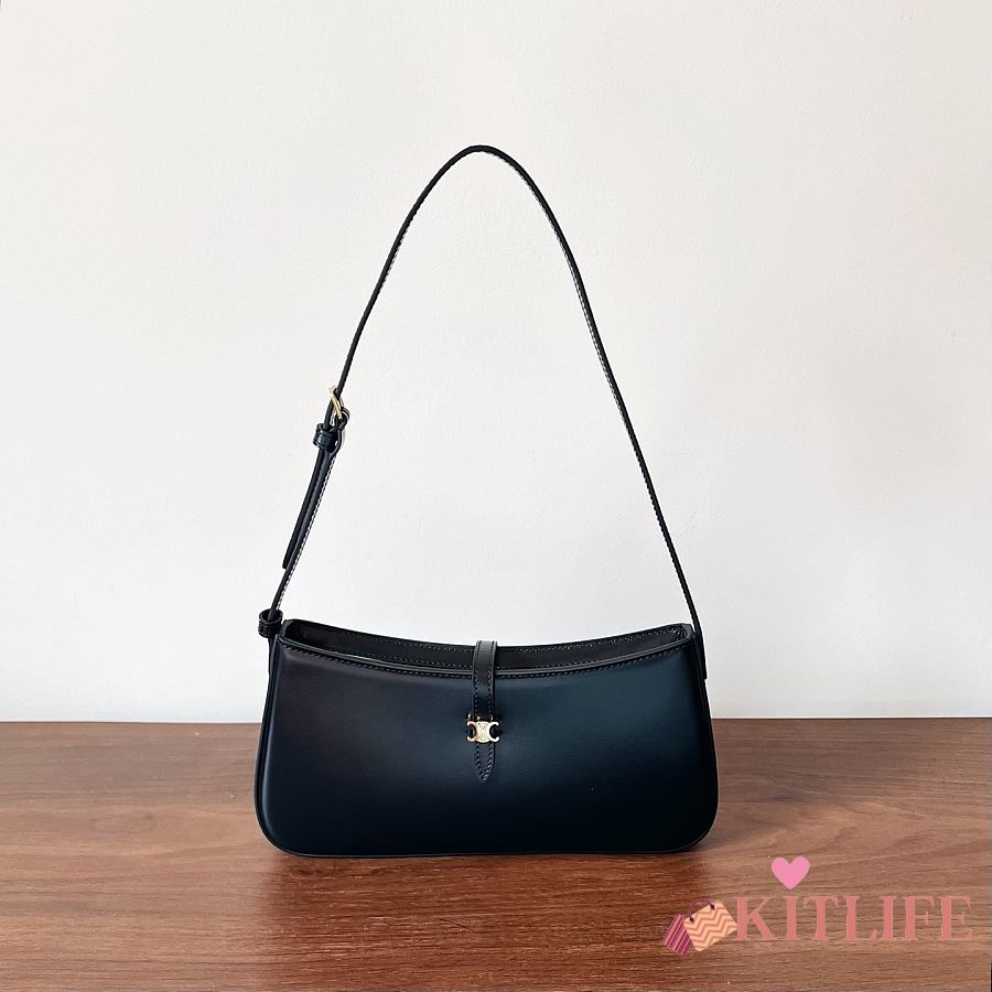 Kitlife Celine Tina Shoulder Bag In Black Shiny Calfskin 123053 25x11.5x2.5cm
