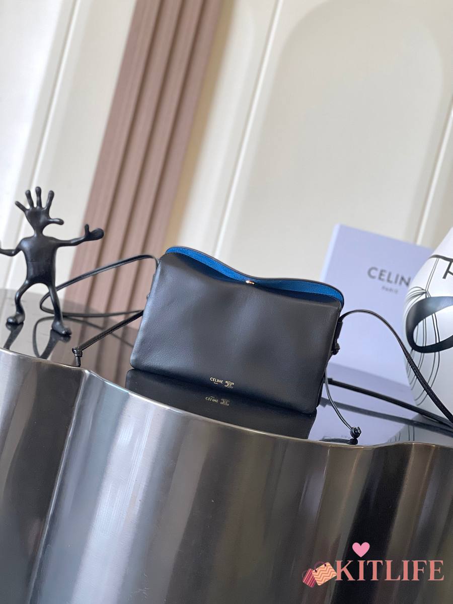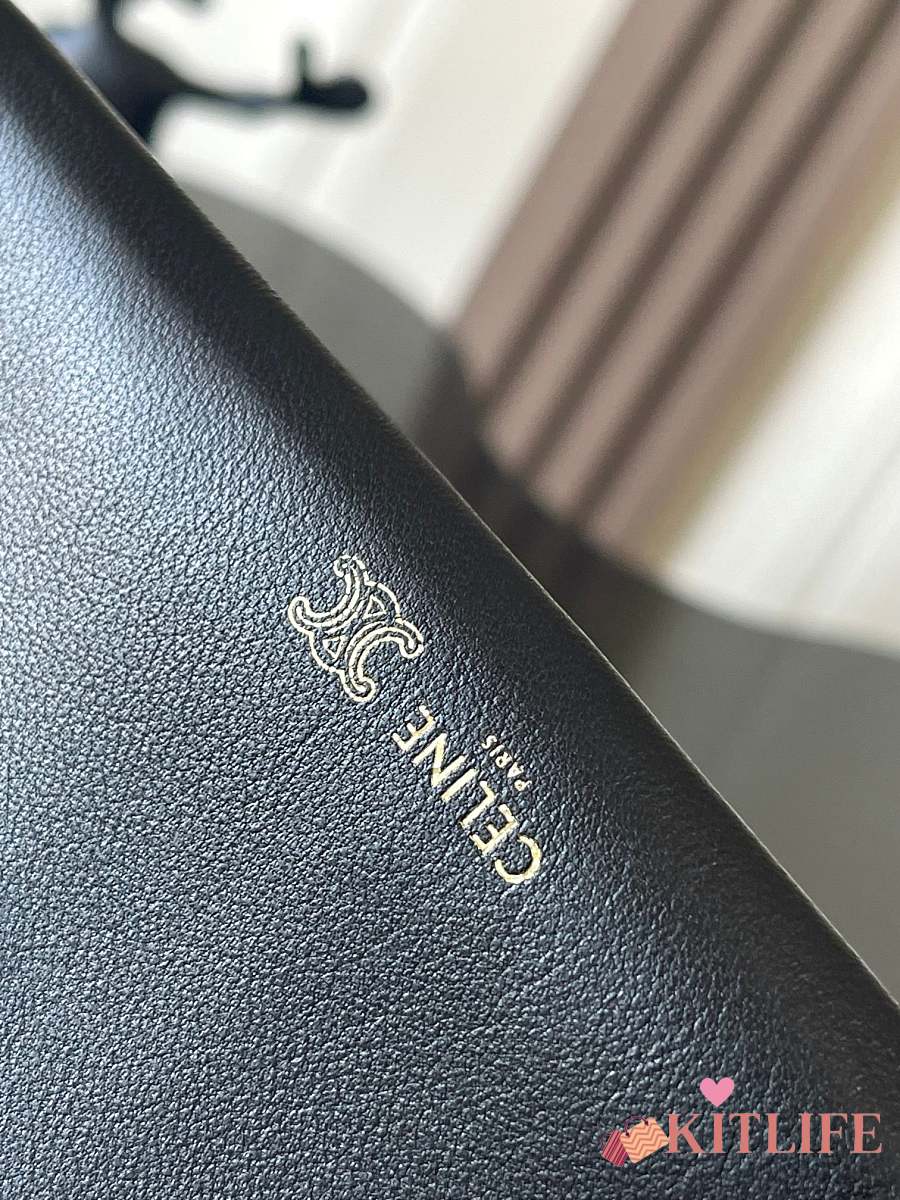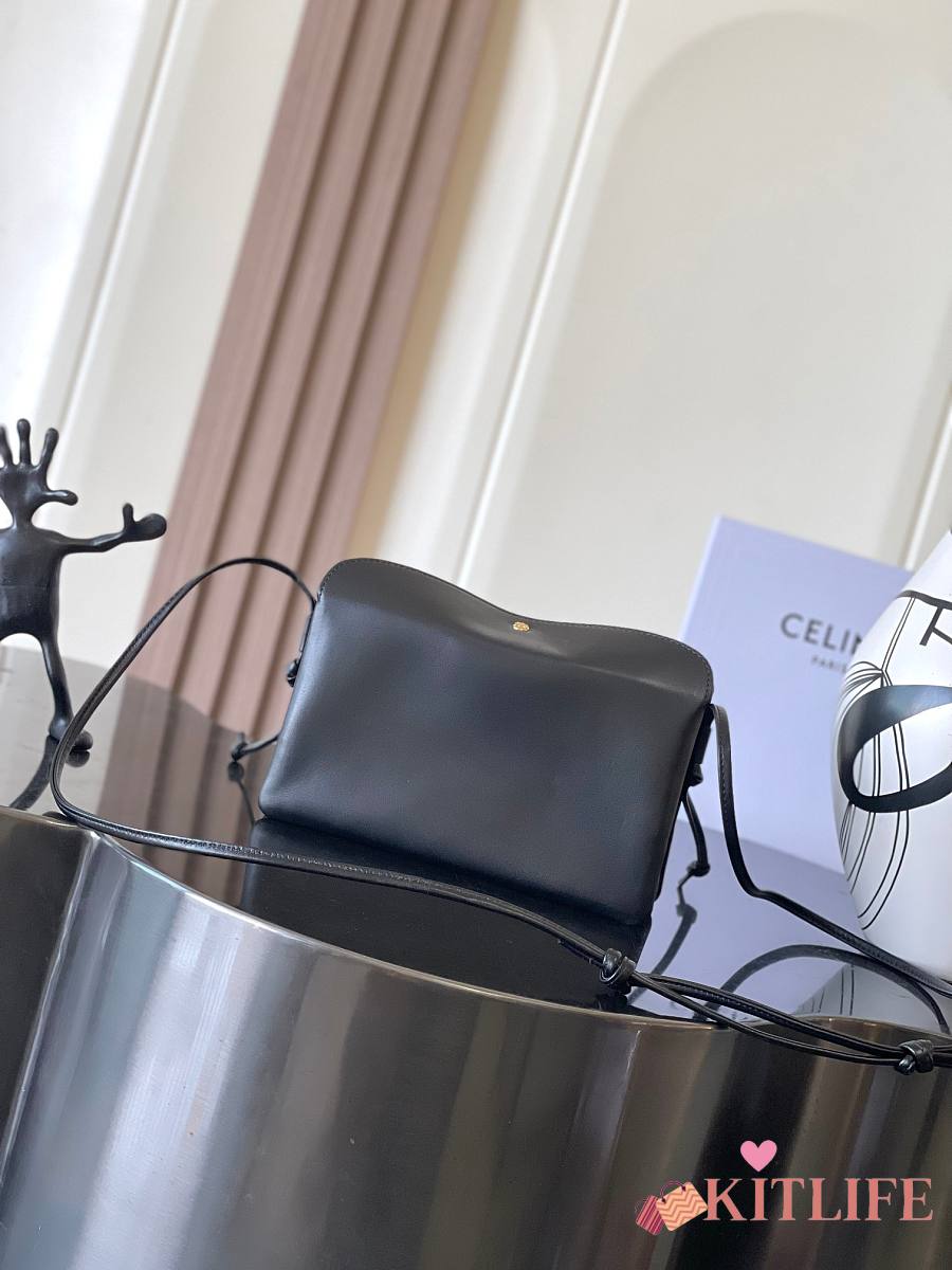 Kitlife Celine Trio Flap Bag In Black Smooth Lambskin 22x14x4cm