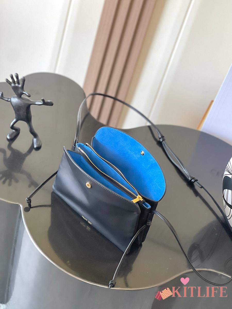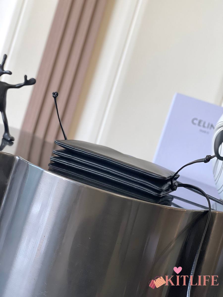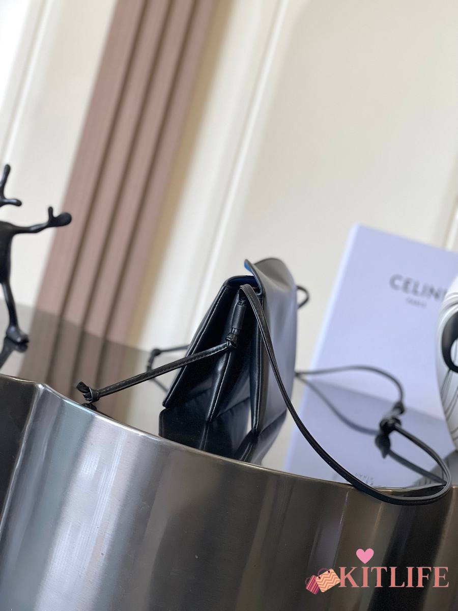 Kitlife Celine Trio Flap Bag In Black Smooth Lambskin 22x14x4cm