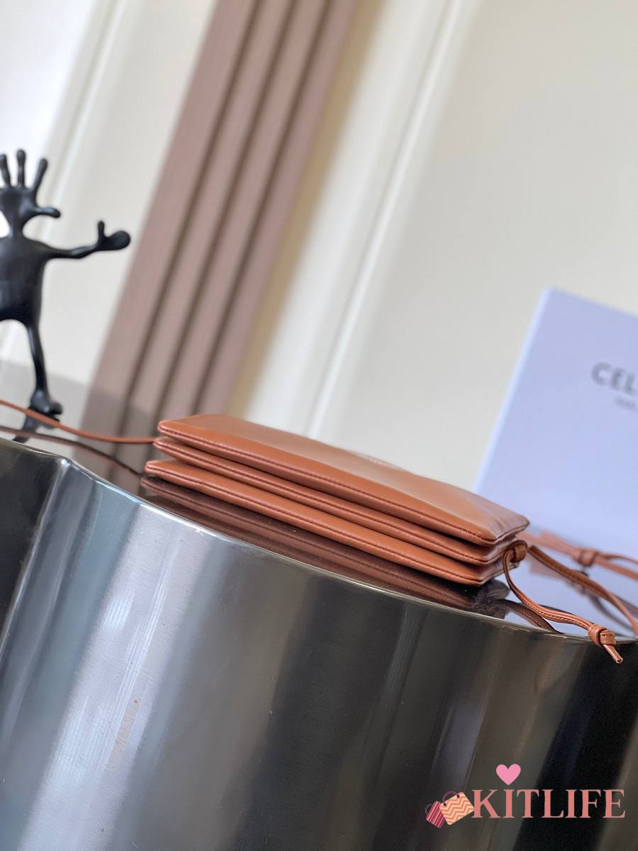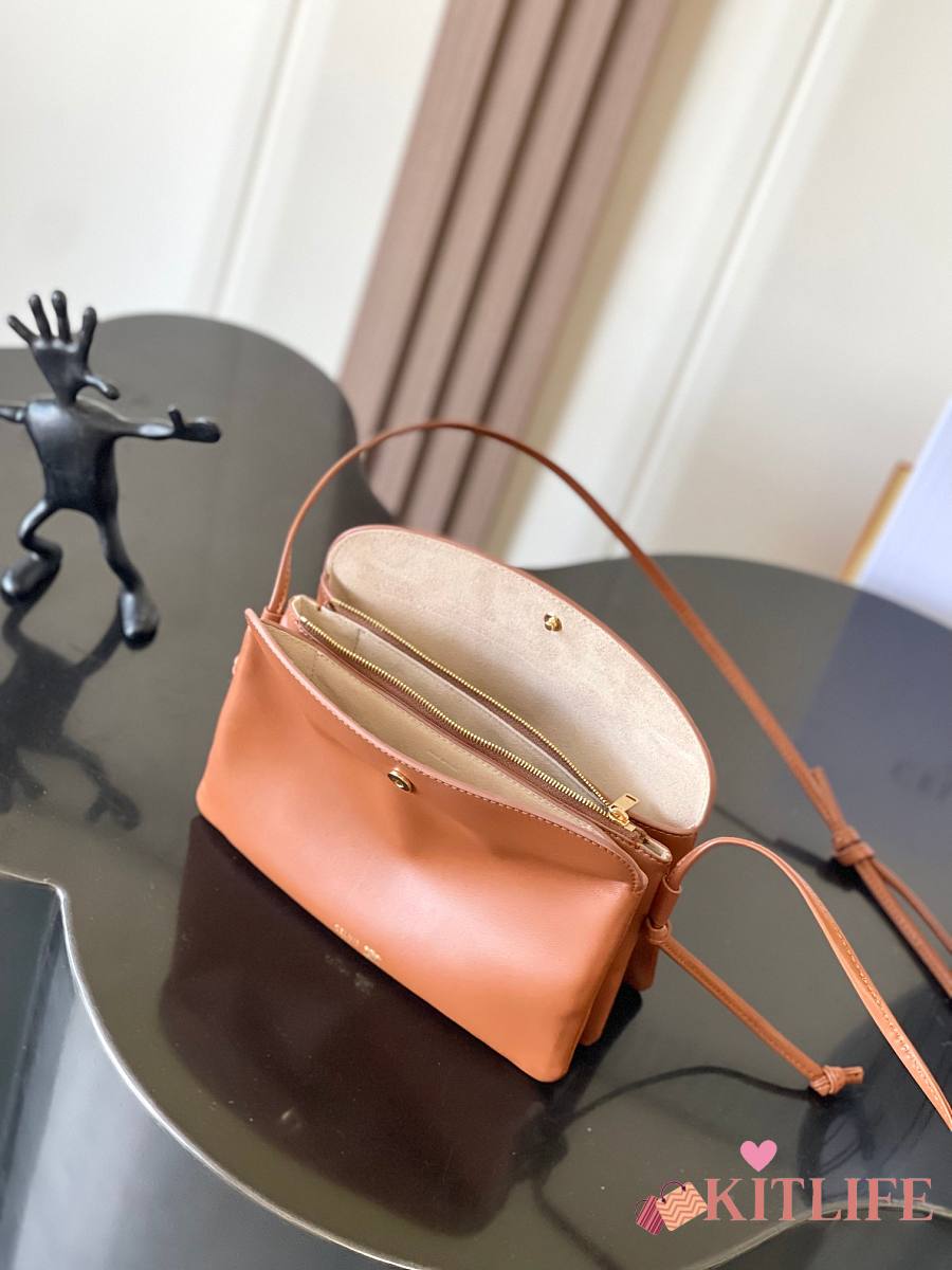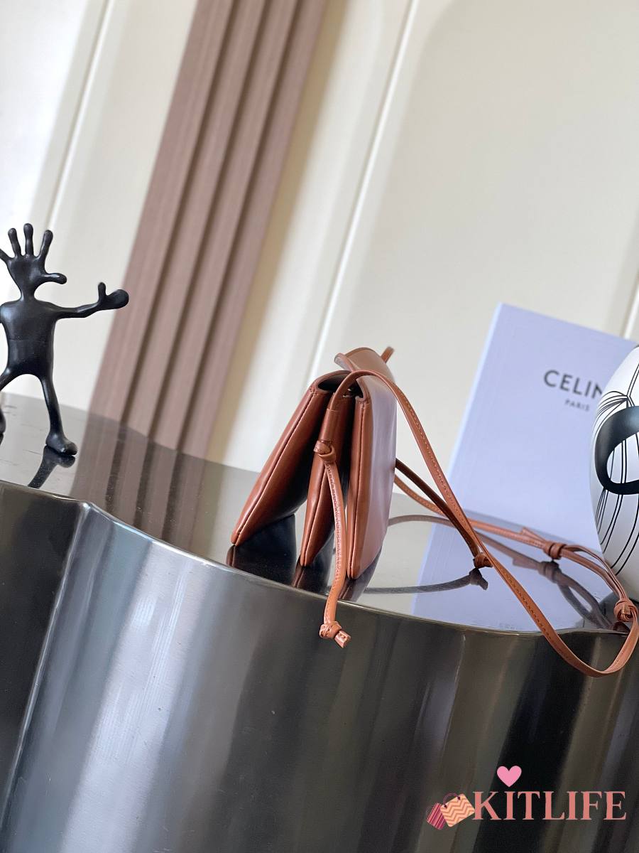 Kitlife Celine Trio Flap Bag In Brown Smooth Lambskin 22x14x4cm