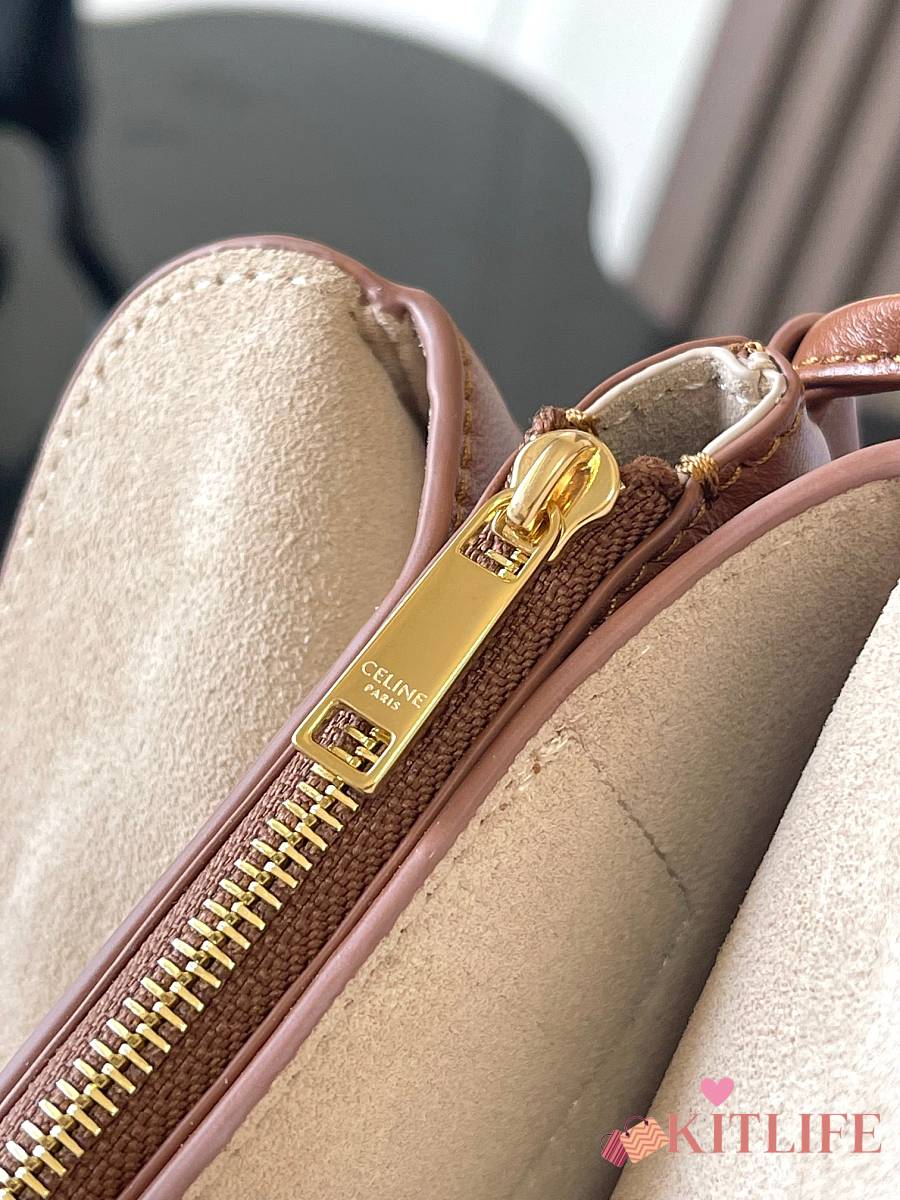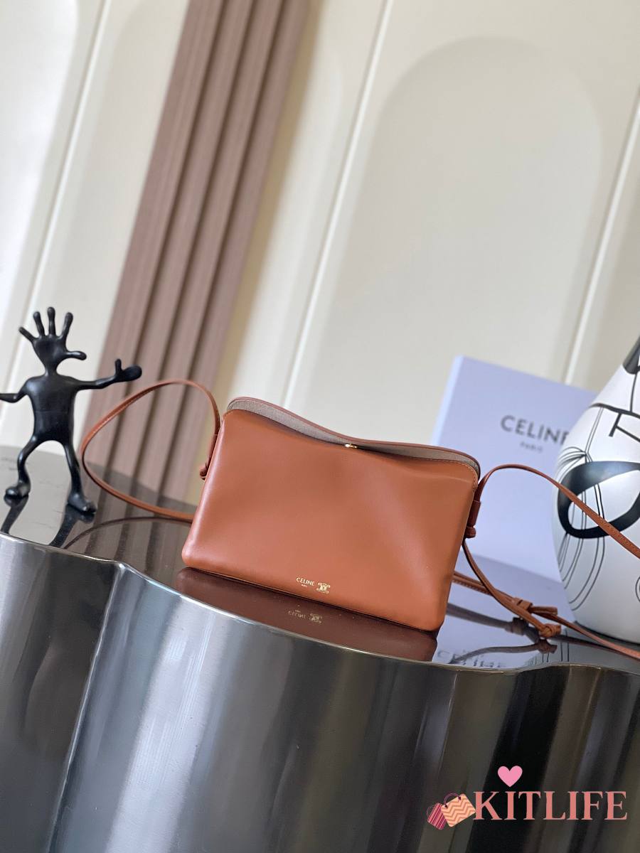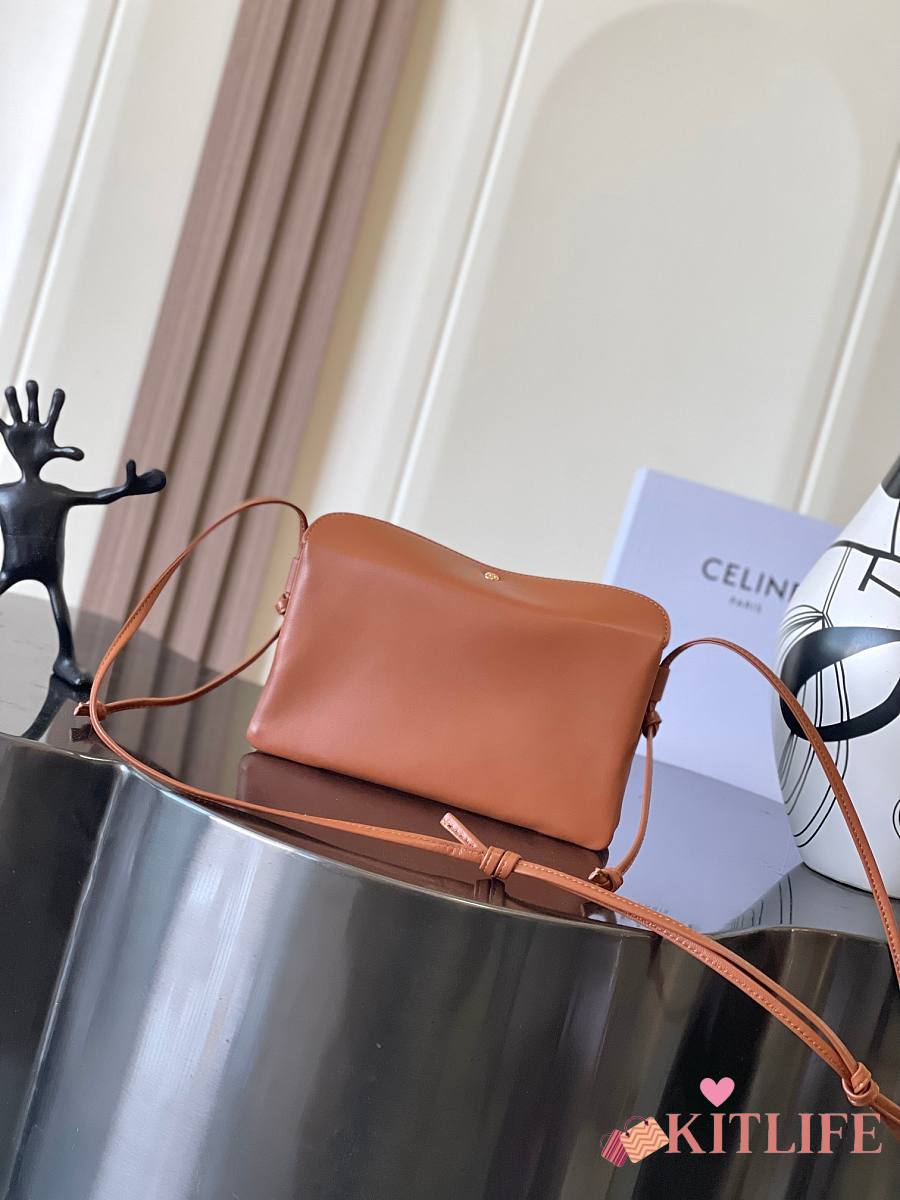Kitlife Celine Trio Flap Bag In Brown Smooth Lambskin 22x14x4cm