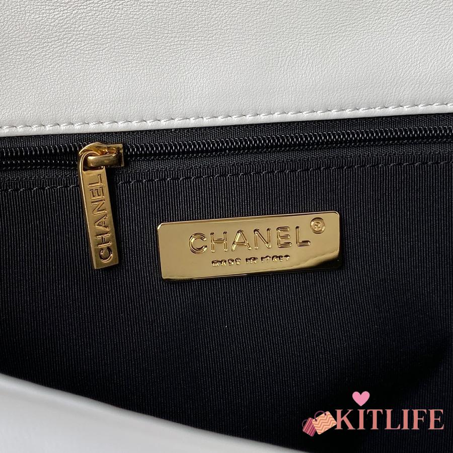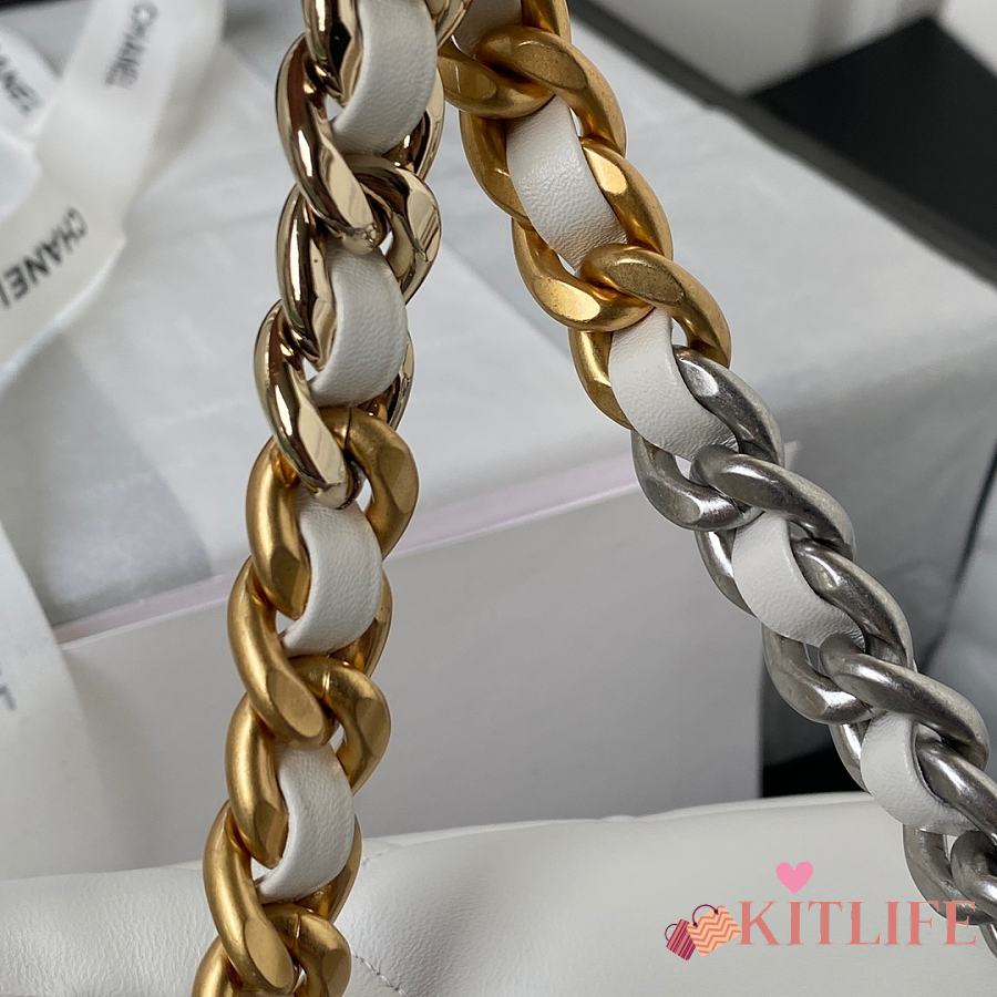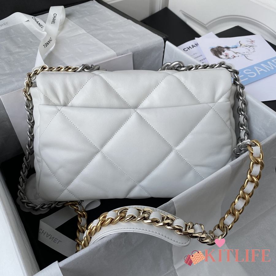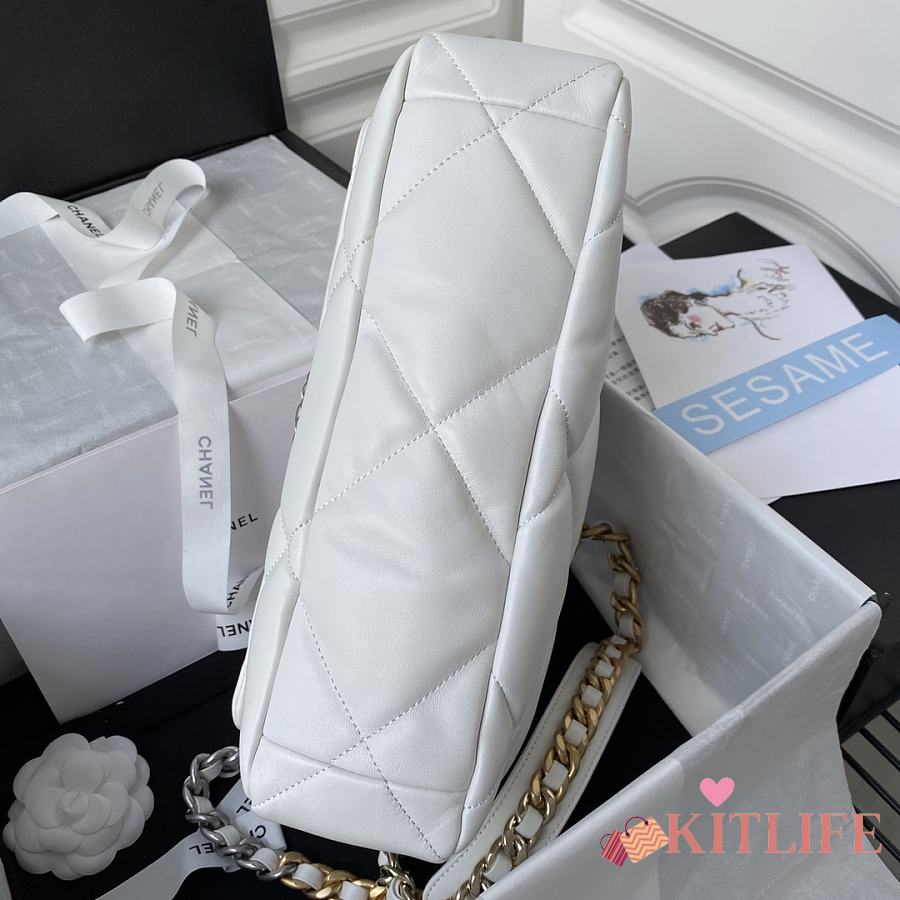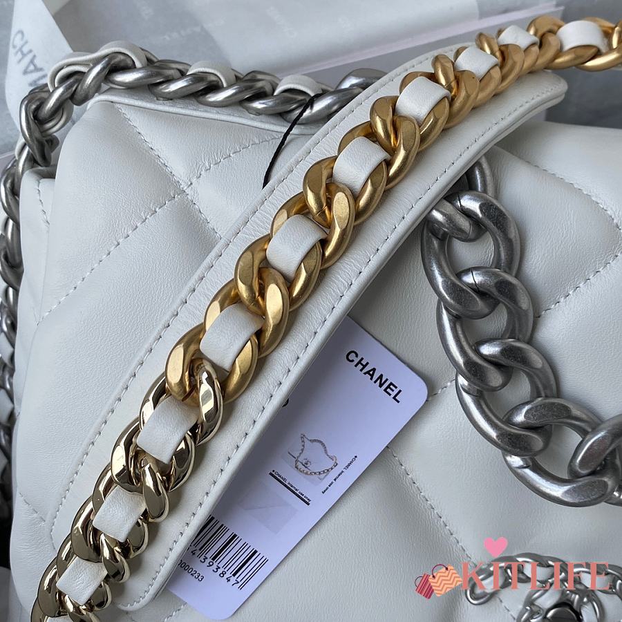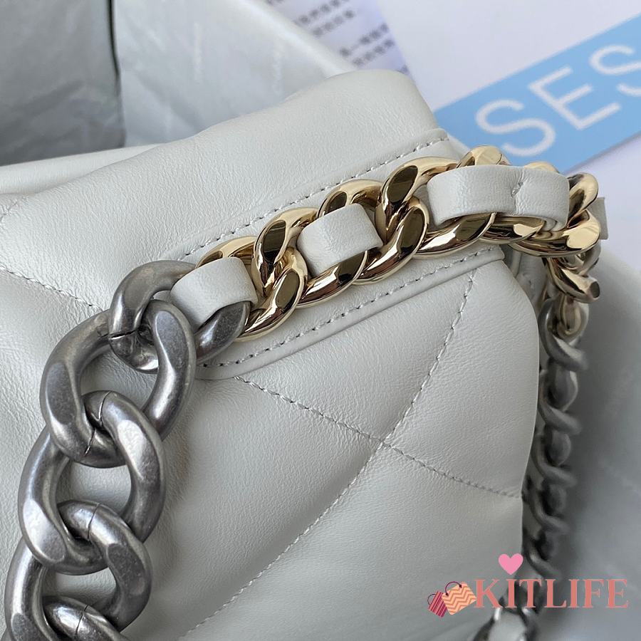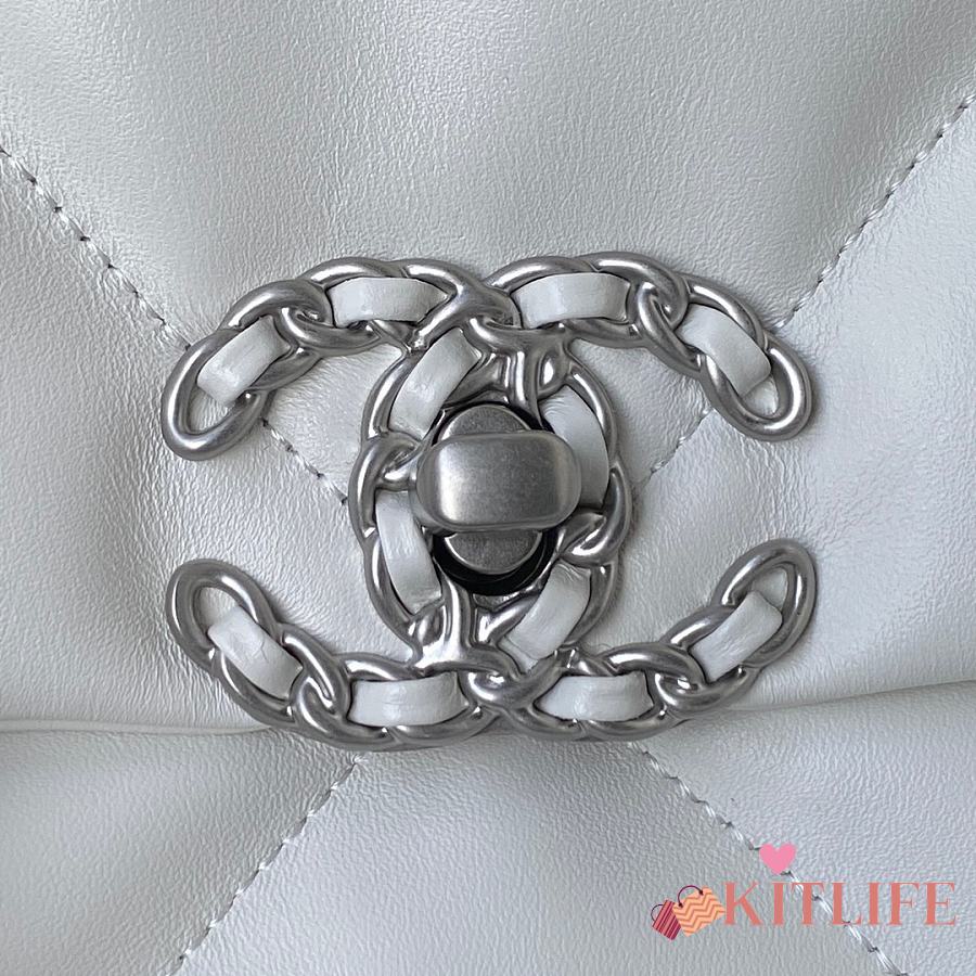 Kitlife Chanel 19 Large Flap Bag White Silver Buckle AS1161 30x20x10cm