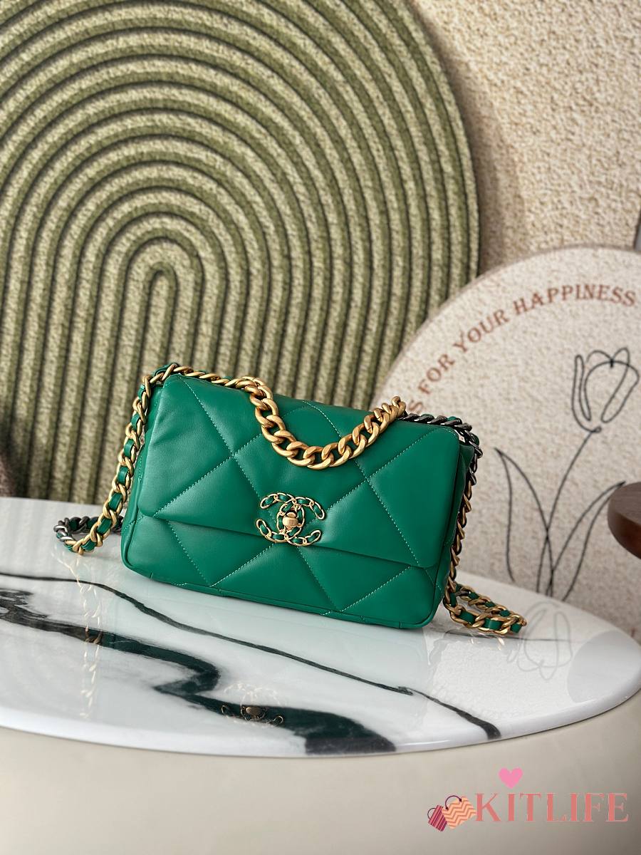 Kitlife Chanel 19 Medium Flap Bag Green AS1160 26x9x16cm