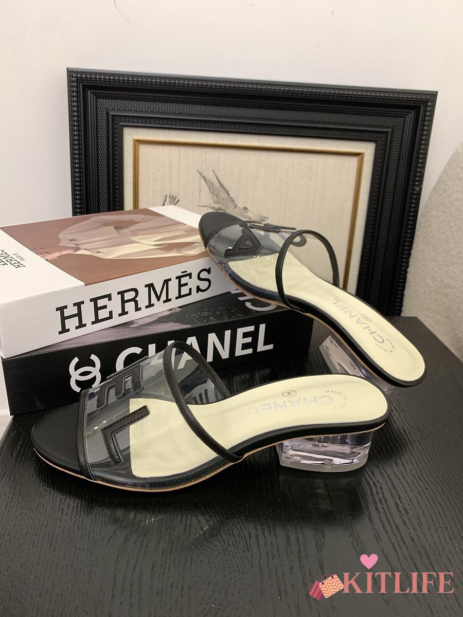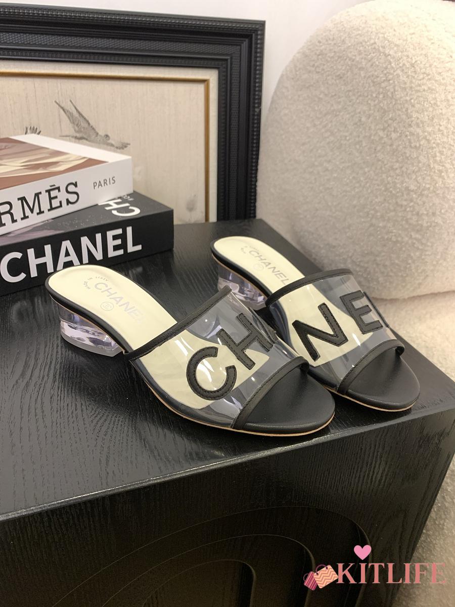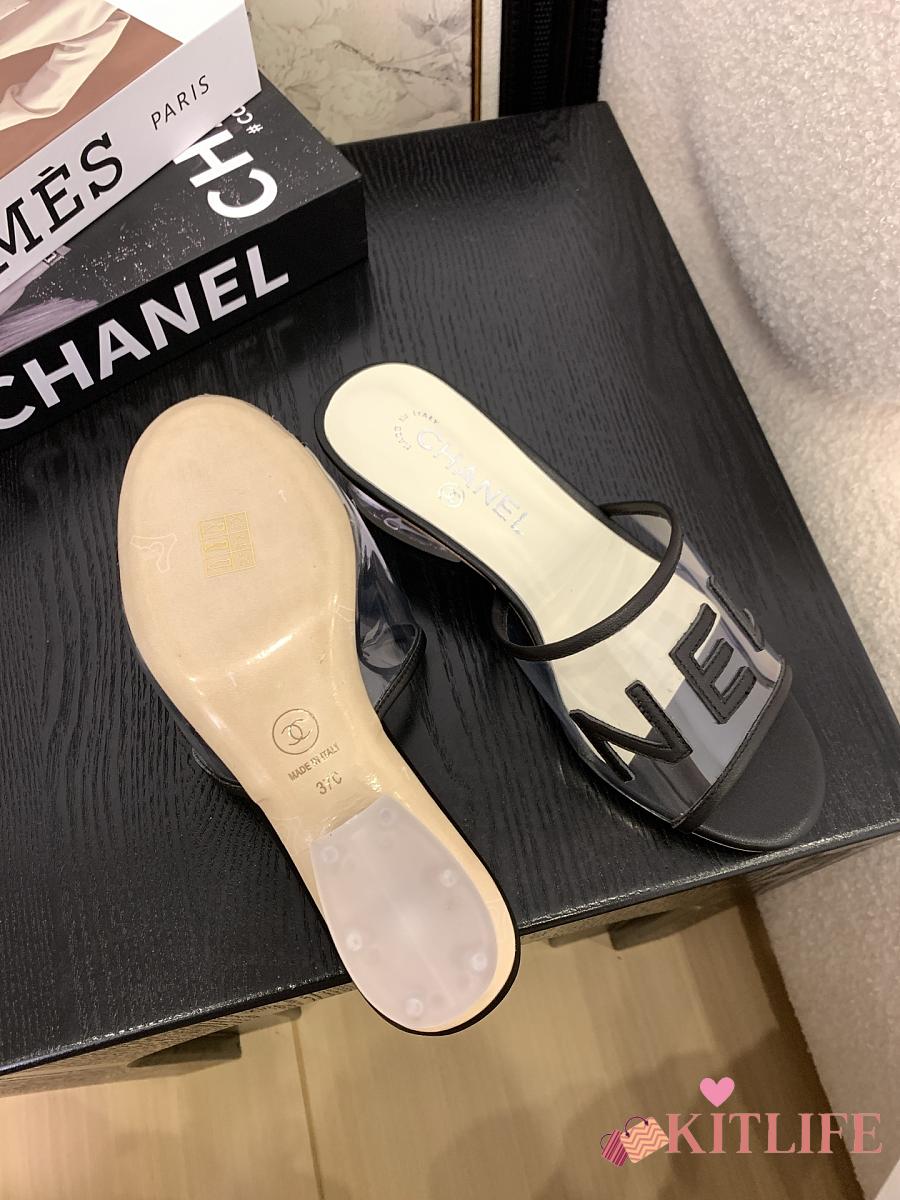 Kitlife Chanel 2025 Interlocking CC Logo Flip Flops Sandals Black