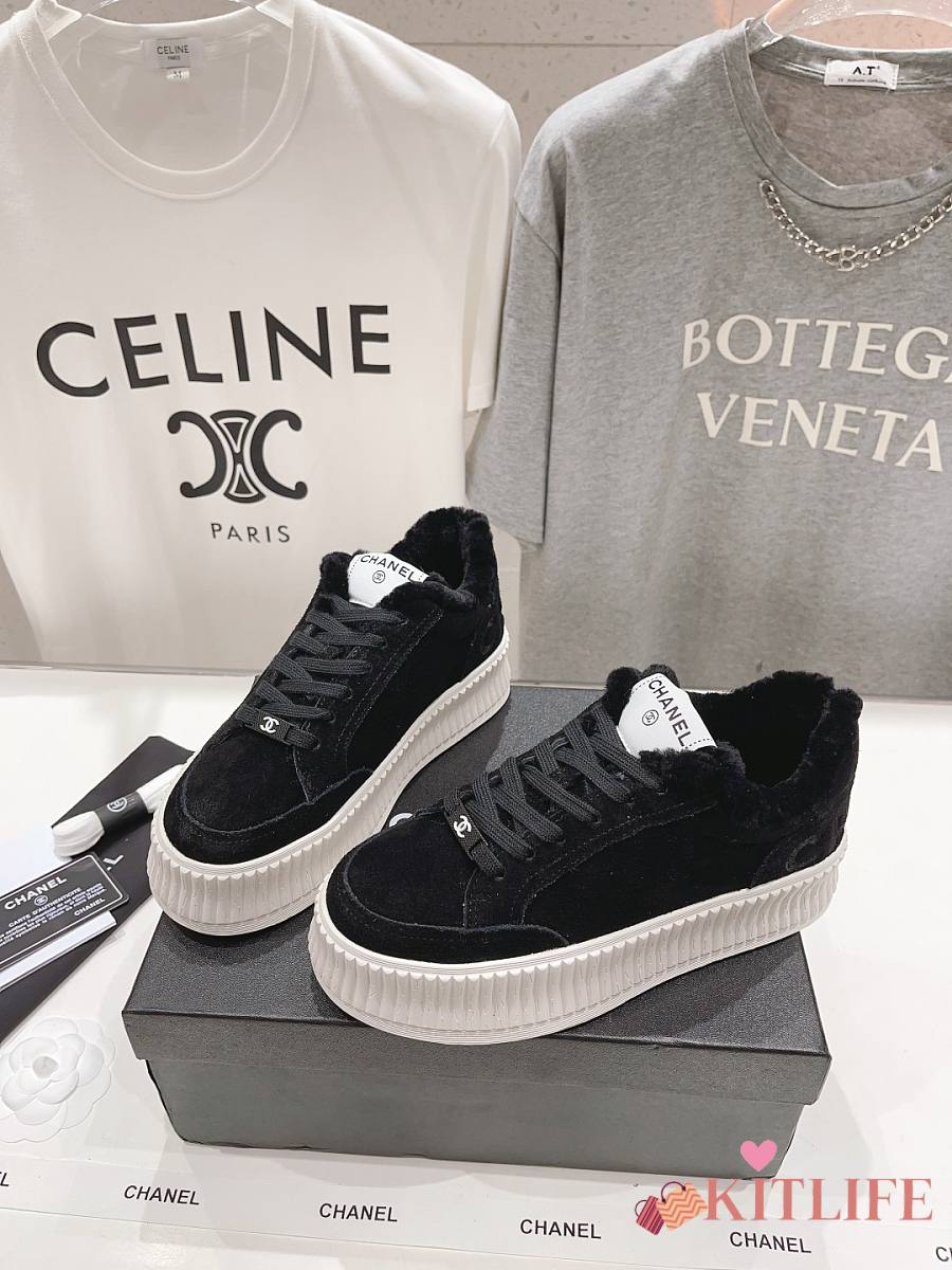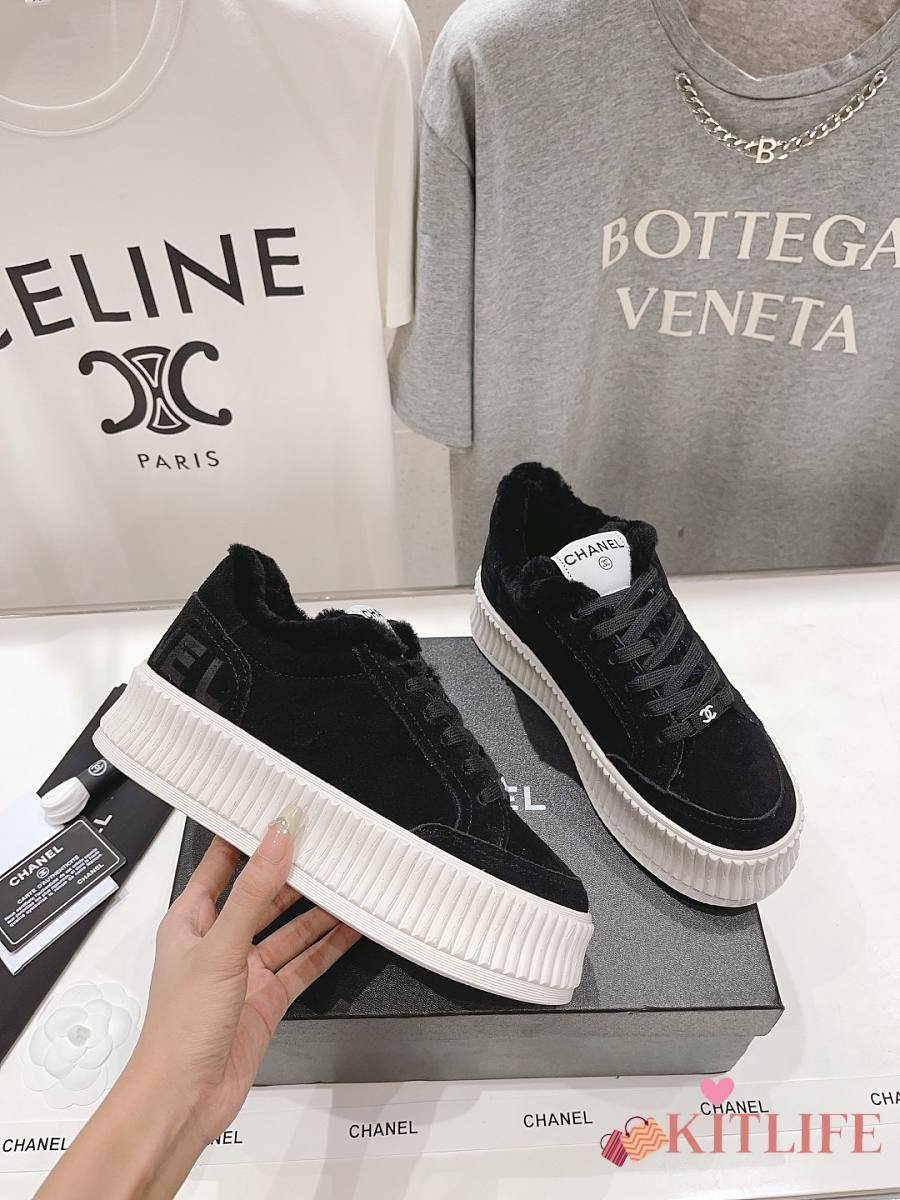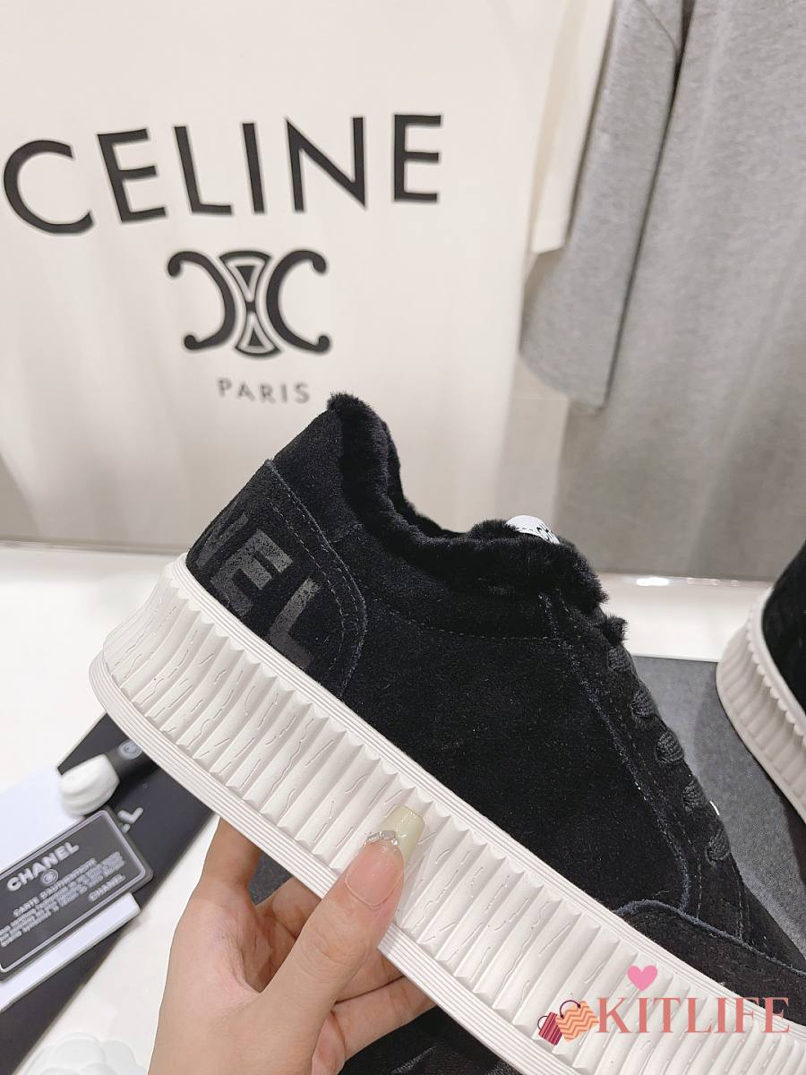 Kitlife Chanel 2025 Platform Biscuit Shoes with Wool Lining Black