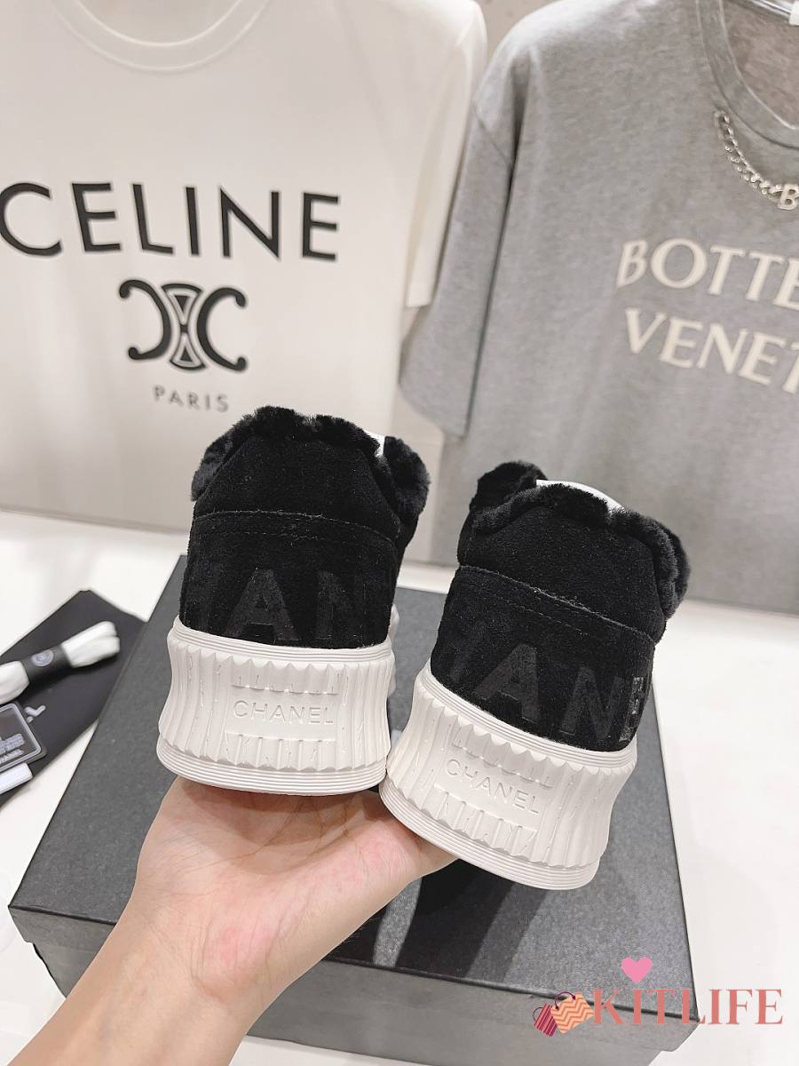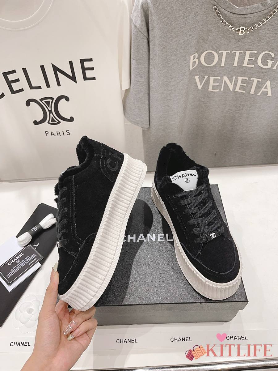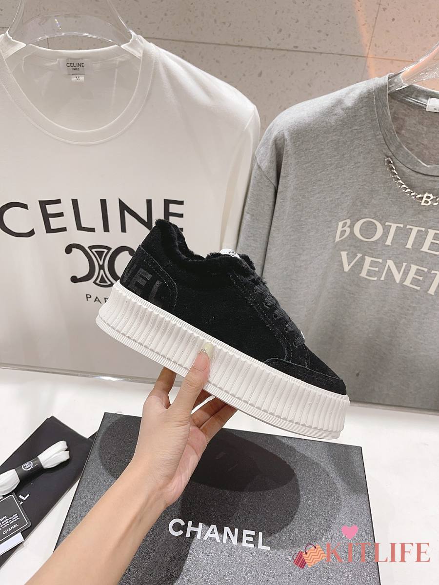 Kitlife Chanel 2025 Platform Biscuit Shoes with Wool Lining Black