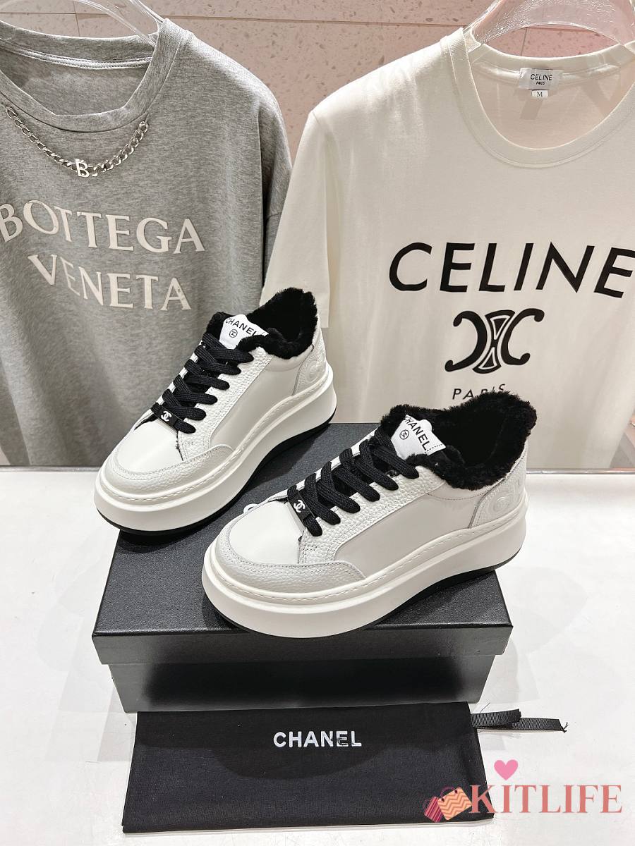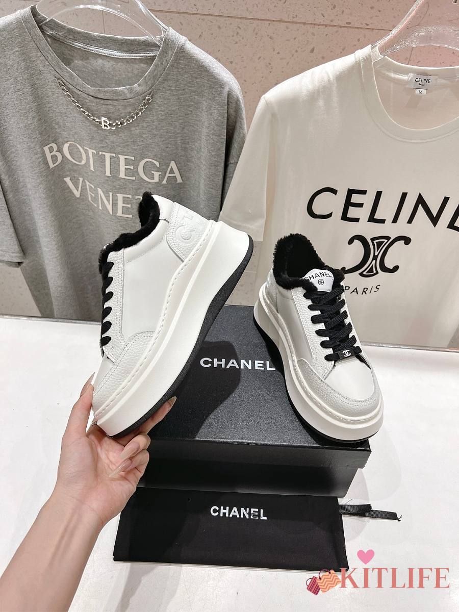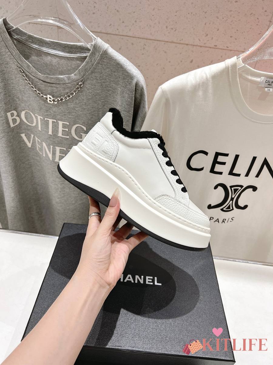 Kitlife Chanel 2025 Platform Biscuit Shoes with Wool Lining White