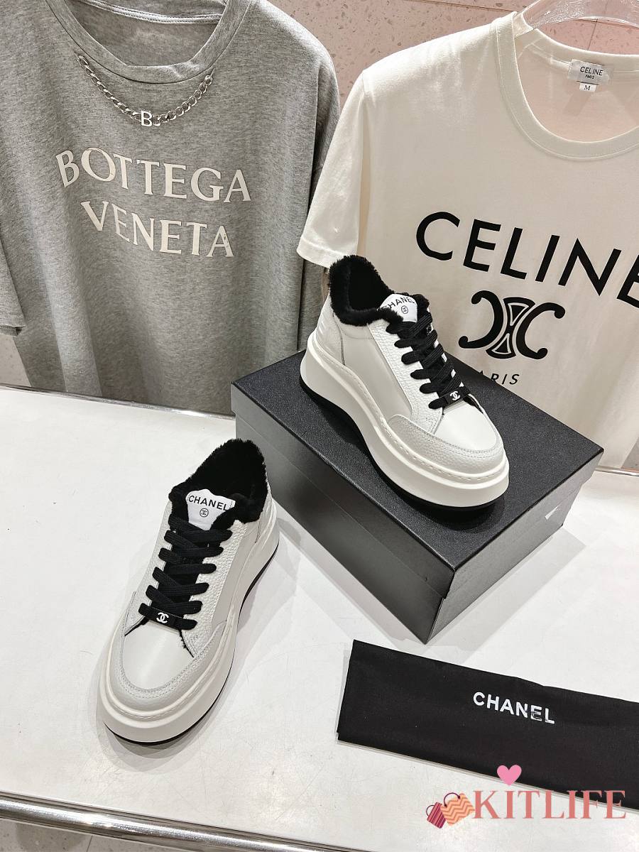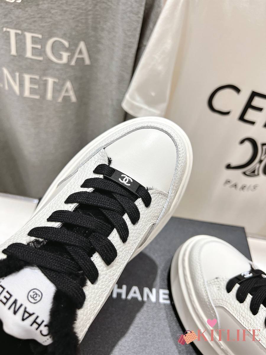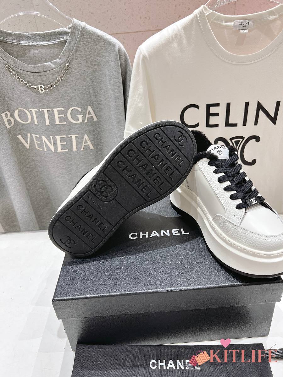 Kitlife Chanel 2025 Platform Biscuit Shoes with Wool Lining White