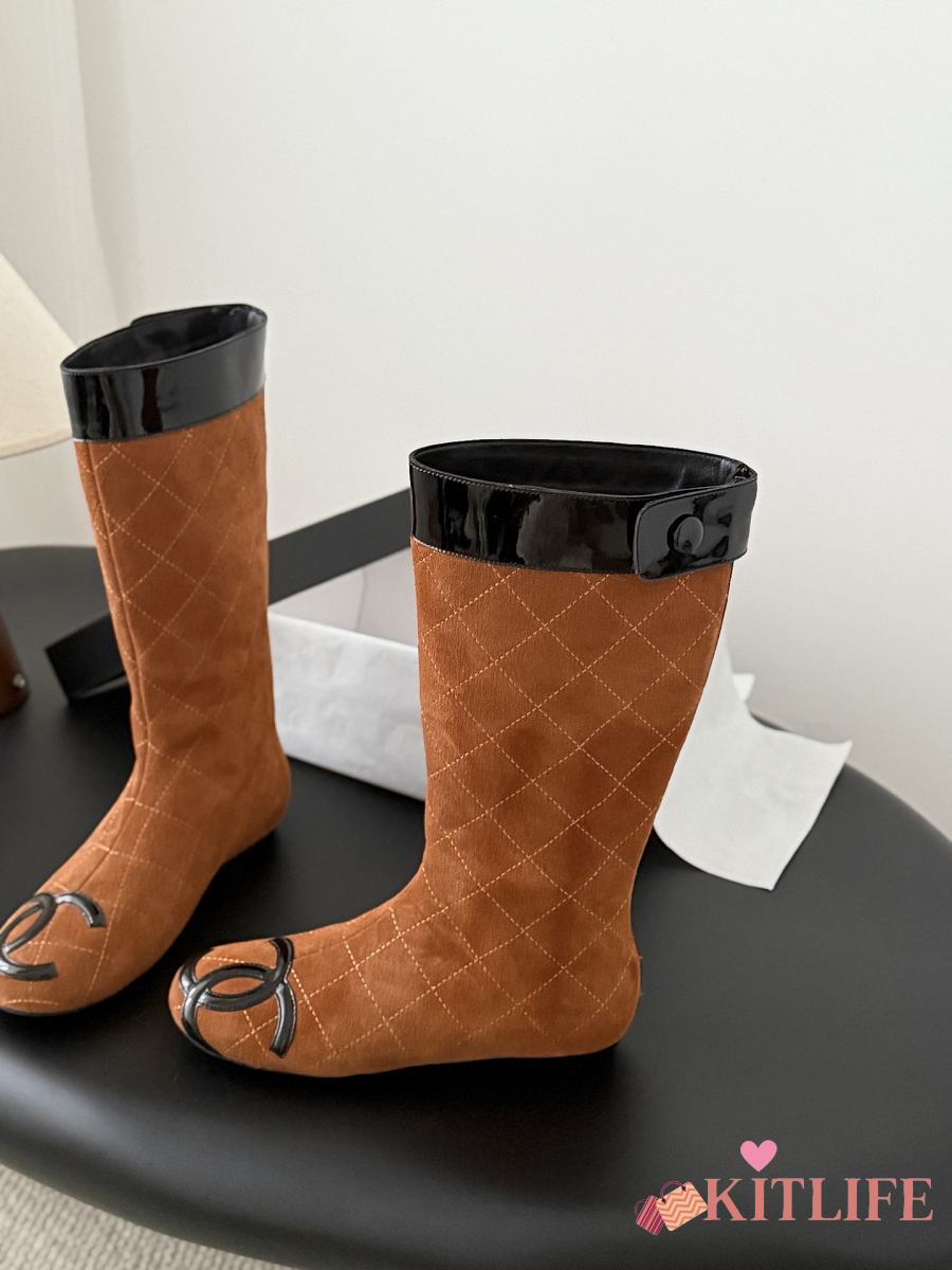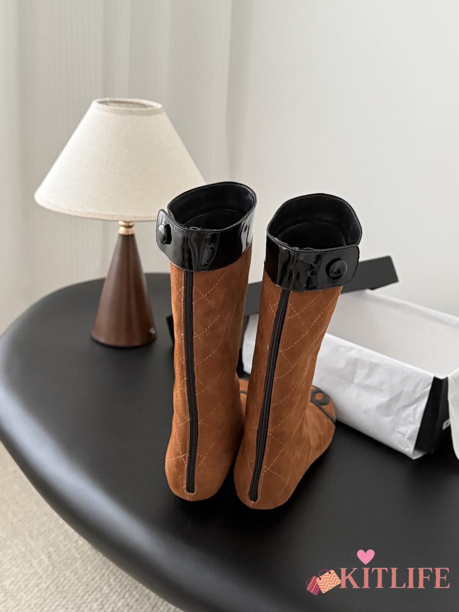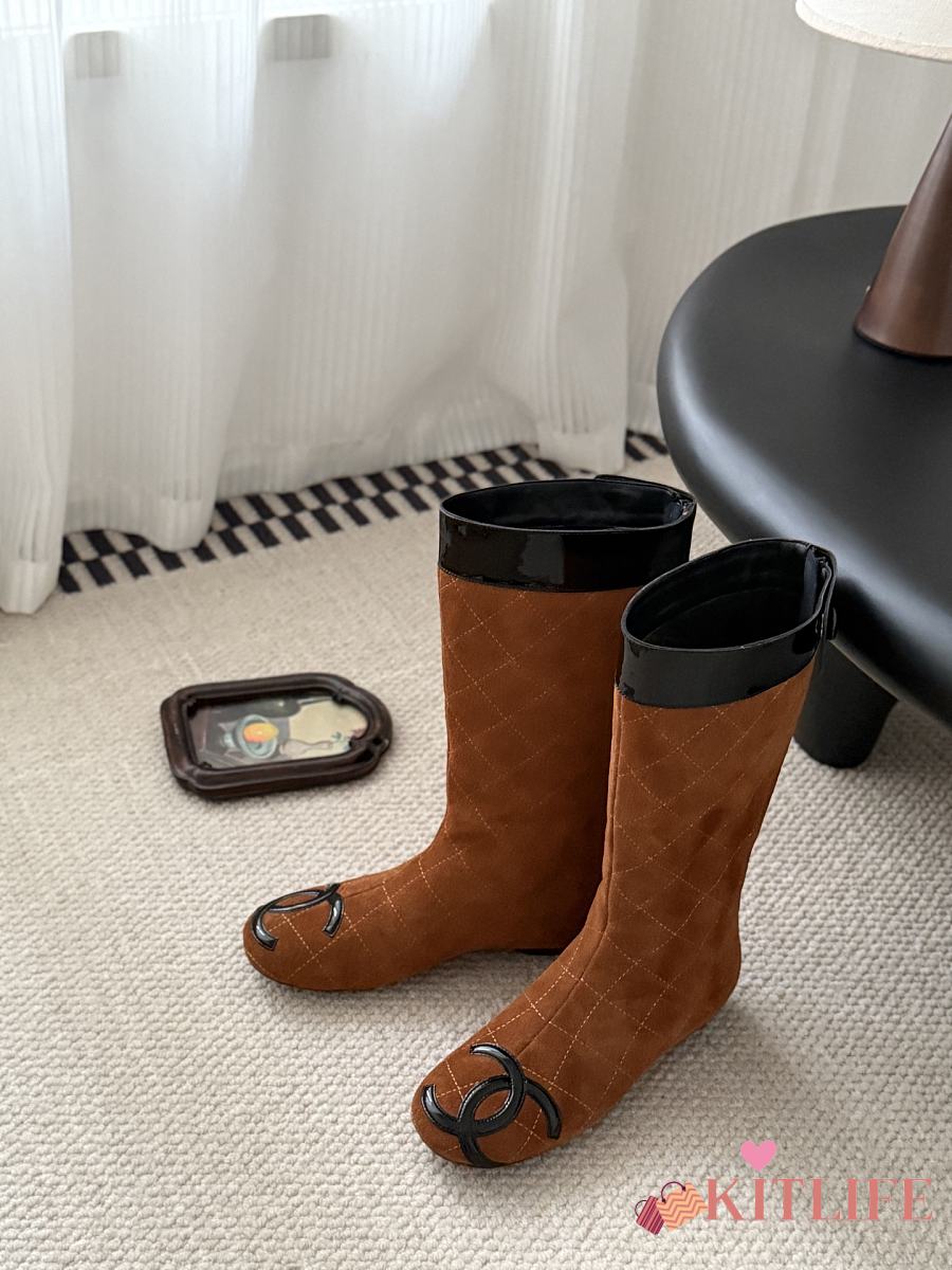 Kitlife Chanel 2025B Long Boots Brown Suede Leather