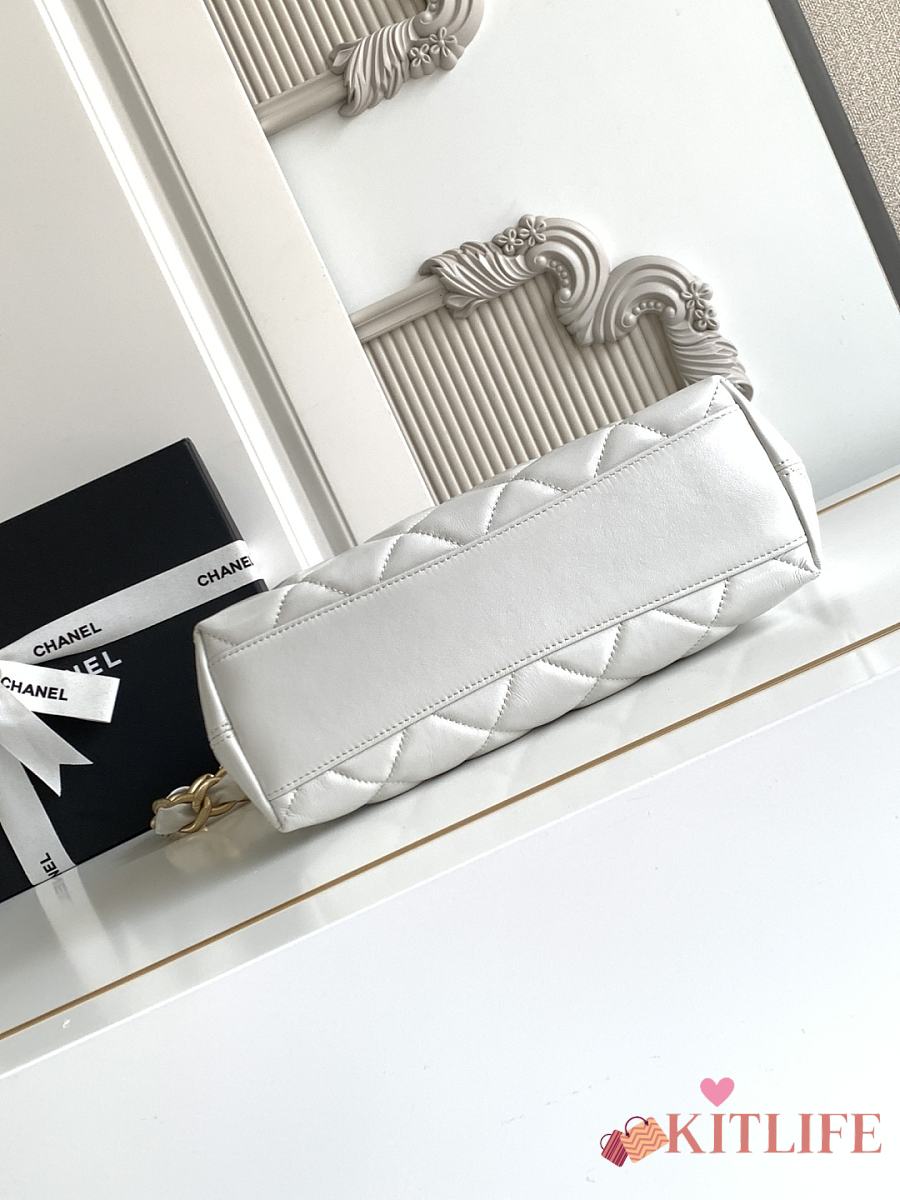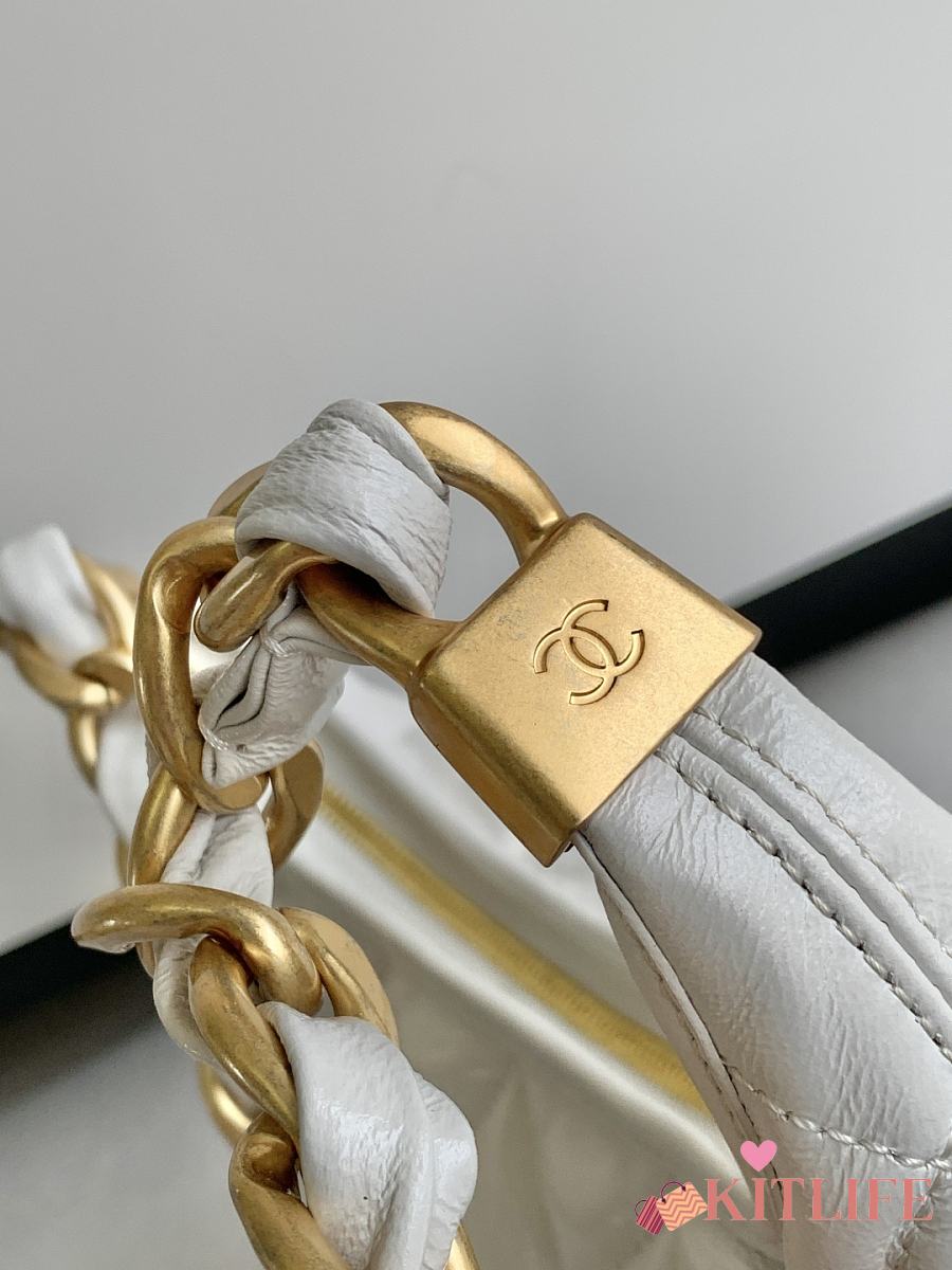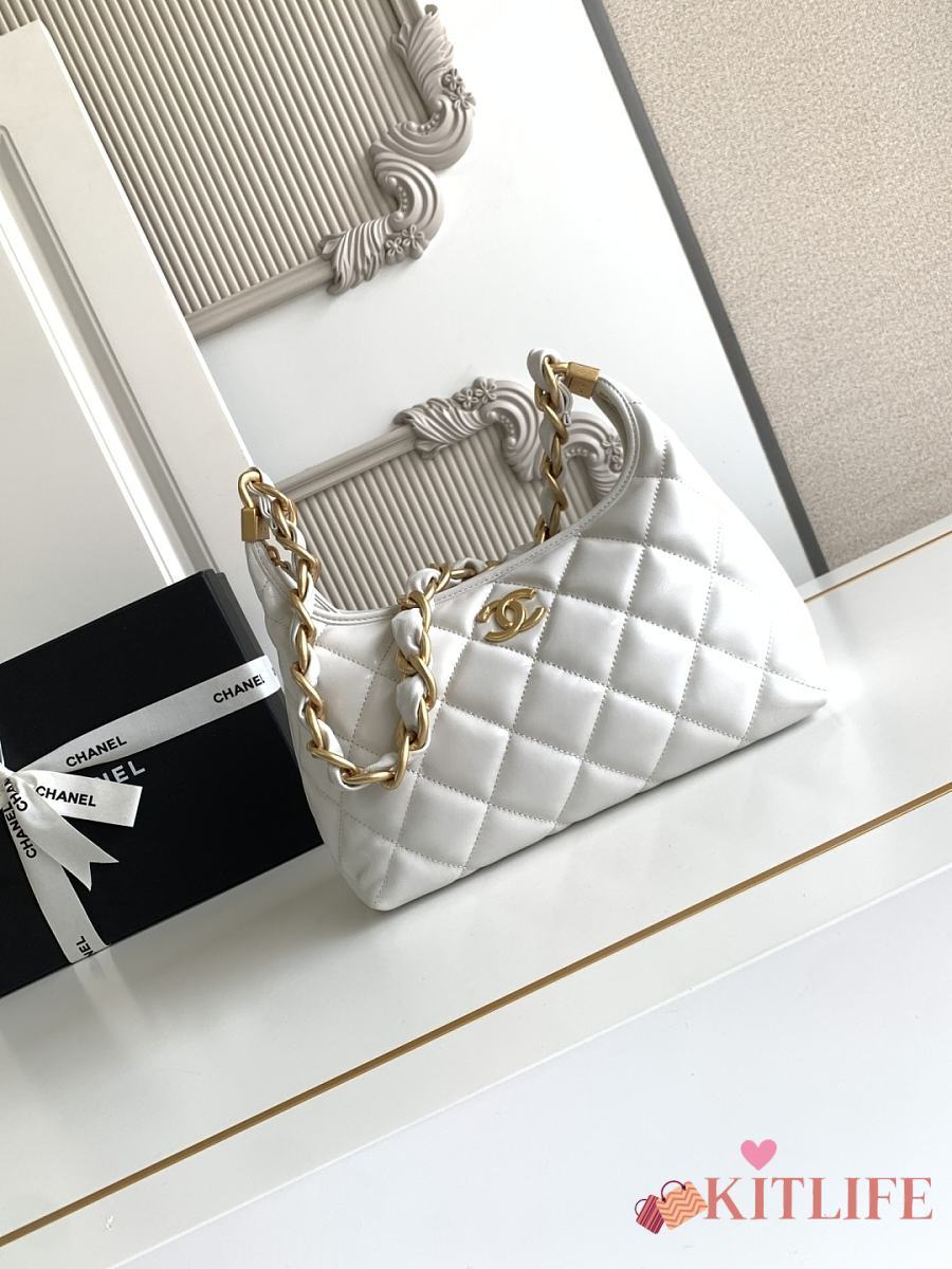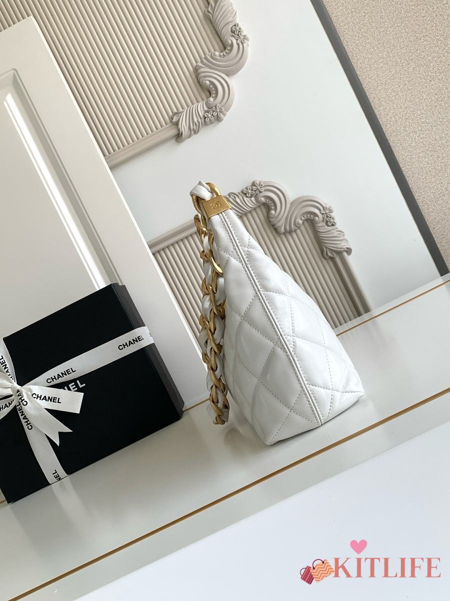 Kitlife Chanel 25 Hobo Bag in White Lambskin AS4912 24x26x9.5cm