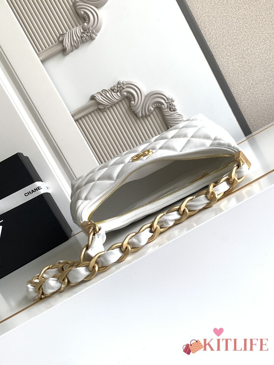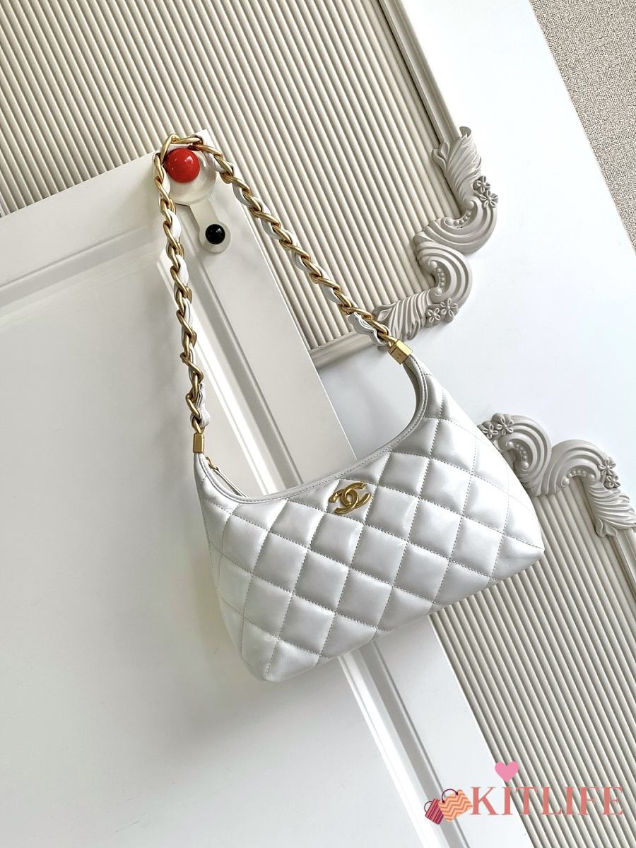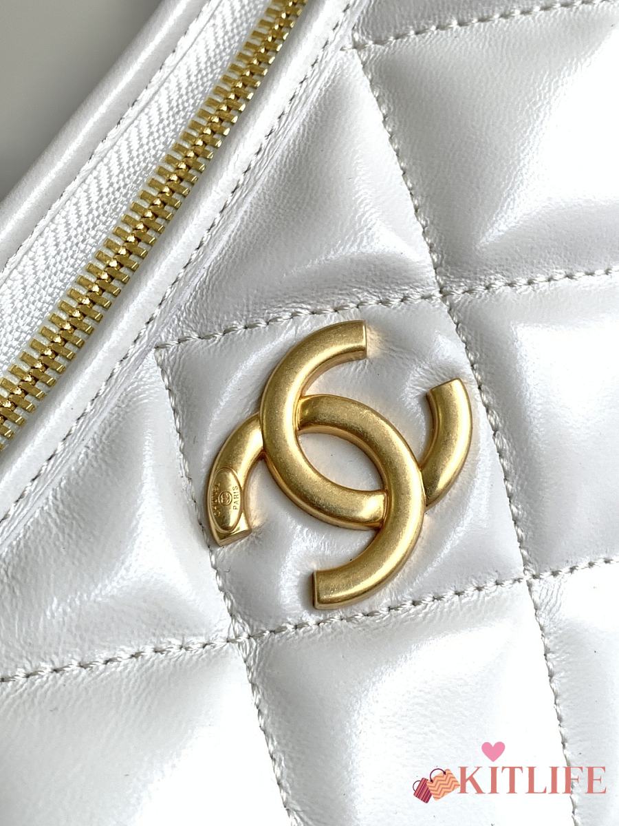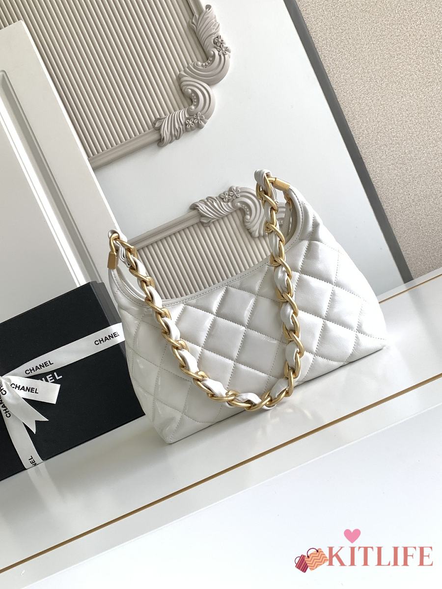 Kitlife Chanel 25 Hobo Bag in White Lambskin AS4912 24x26x9.5cm