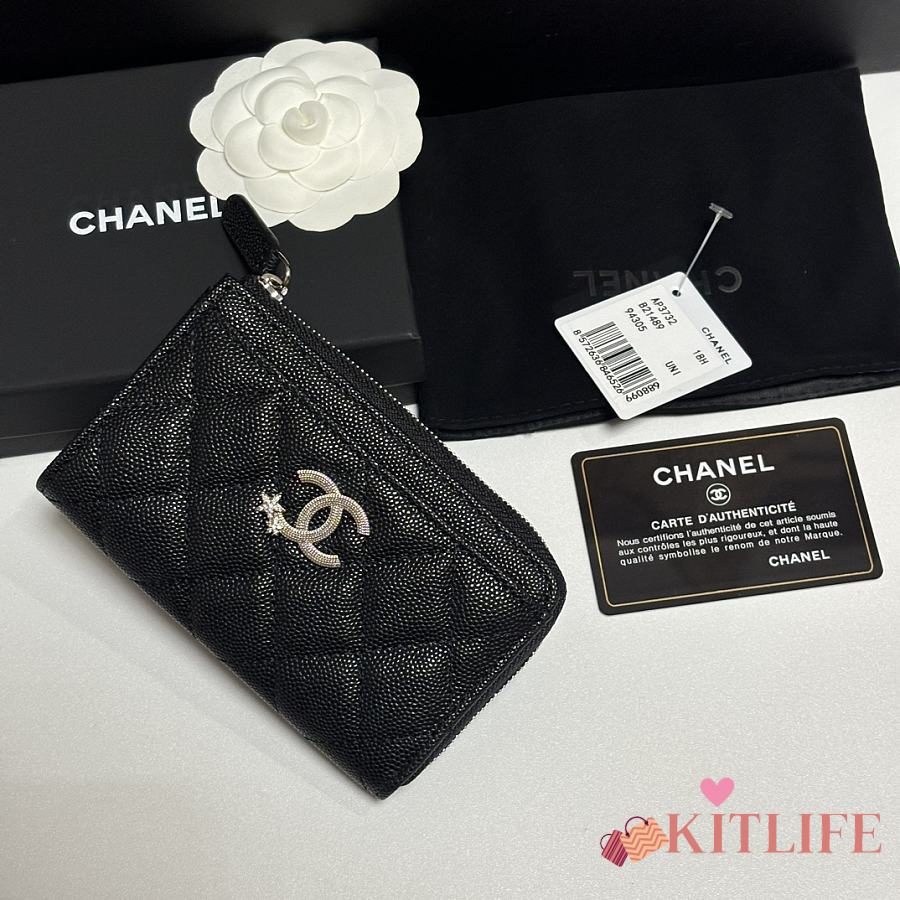 Kitlife Chanel 25 Meteor Hardware Wallet Black 12x7.5x2.5cm