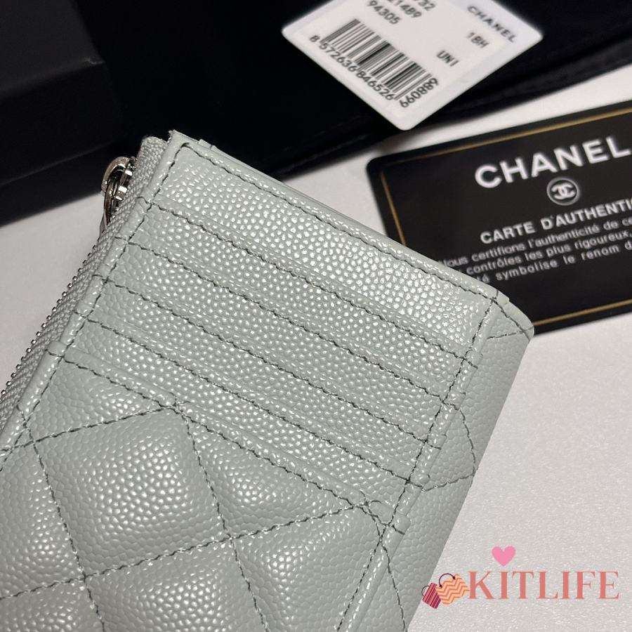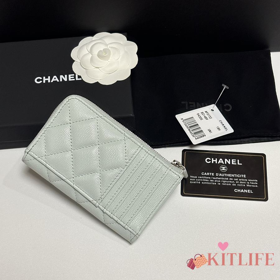 Kitlife Chanel Classic Quilted Zip Coin Purse Green 7.5x11x2cm