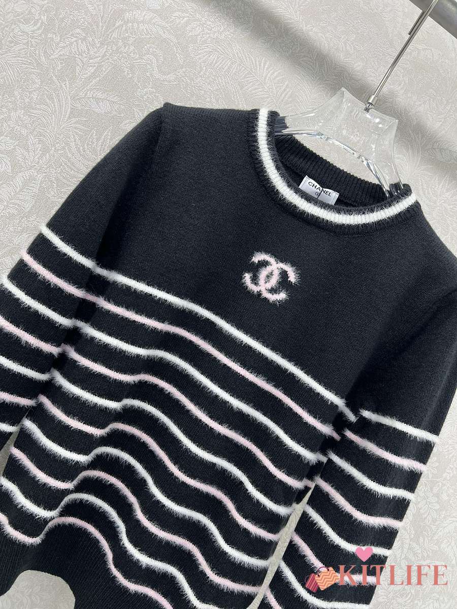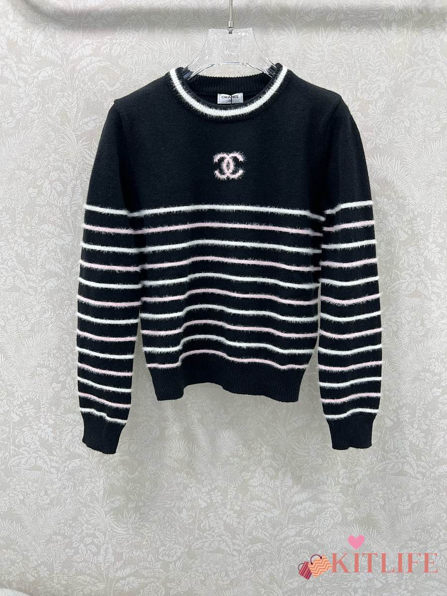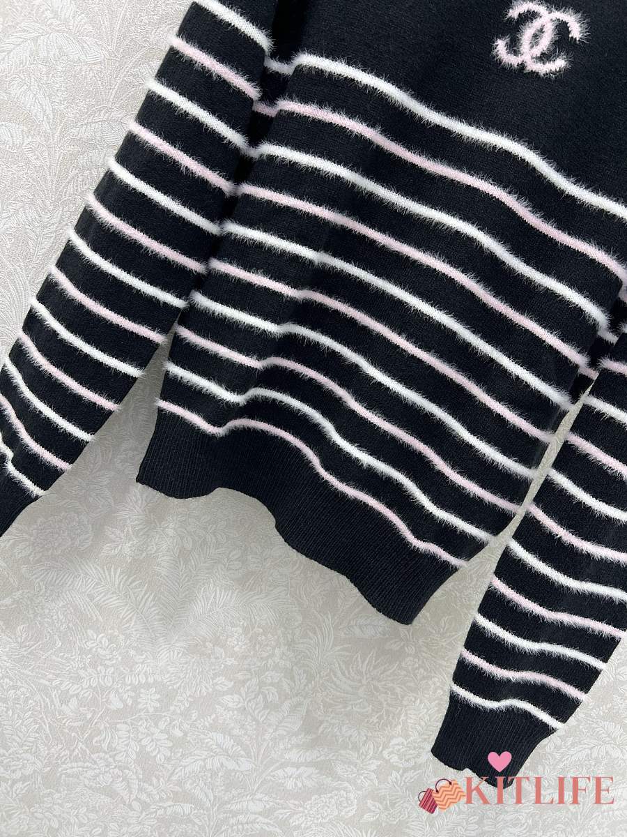 Kitlife Chanel 25 Striped Knit Pullover Sweater Black