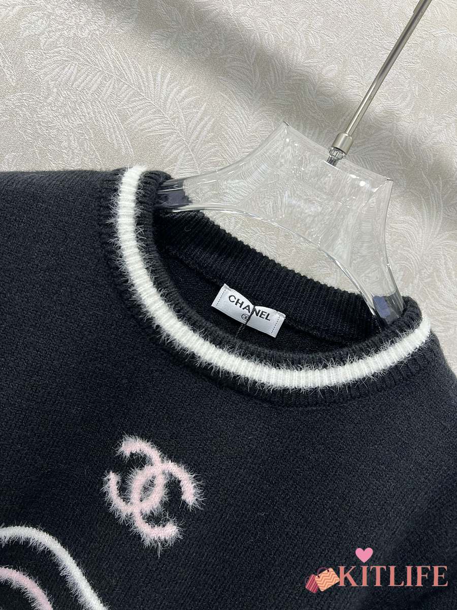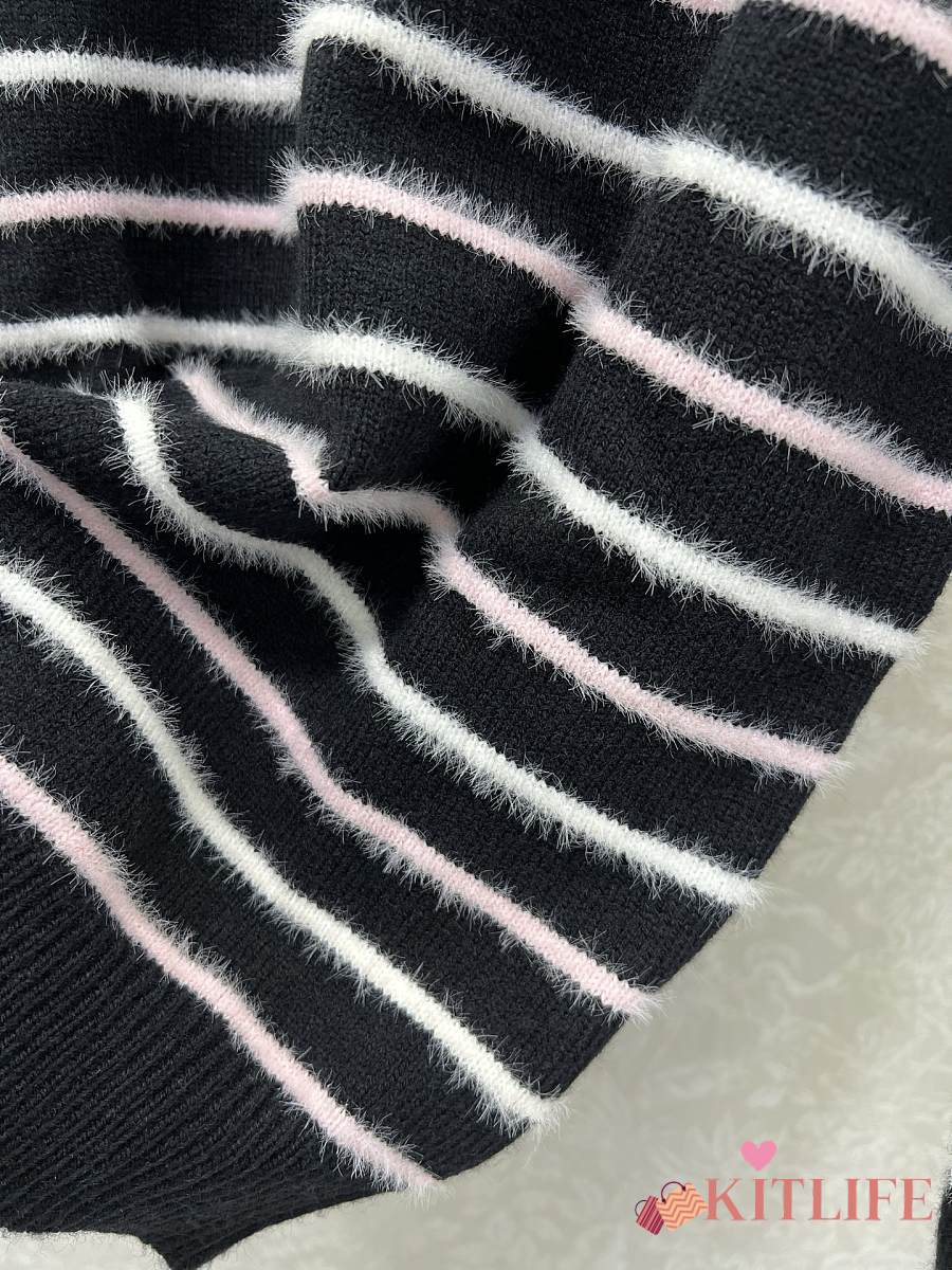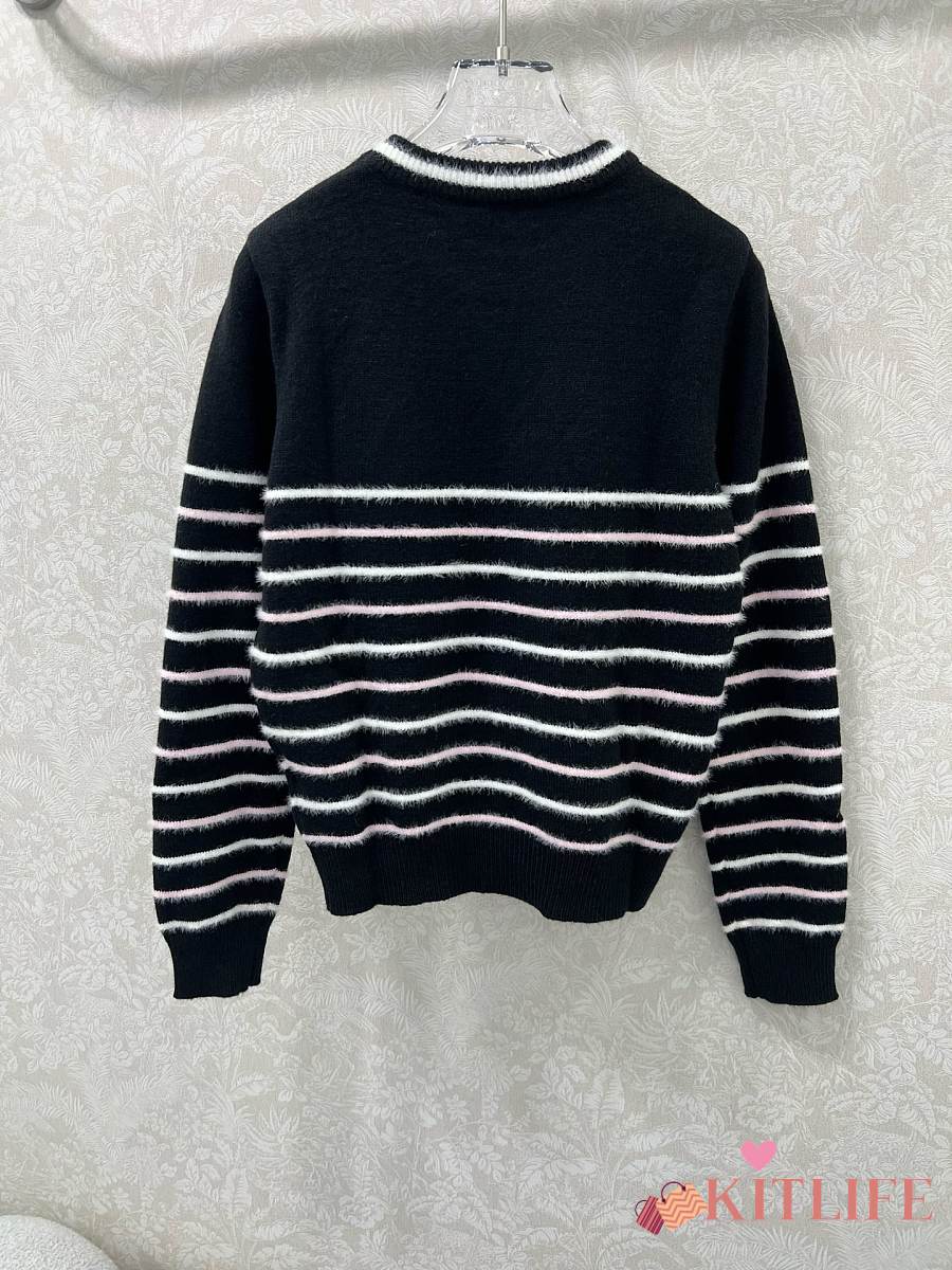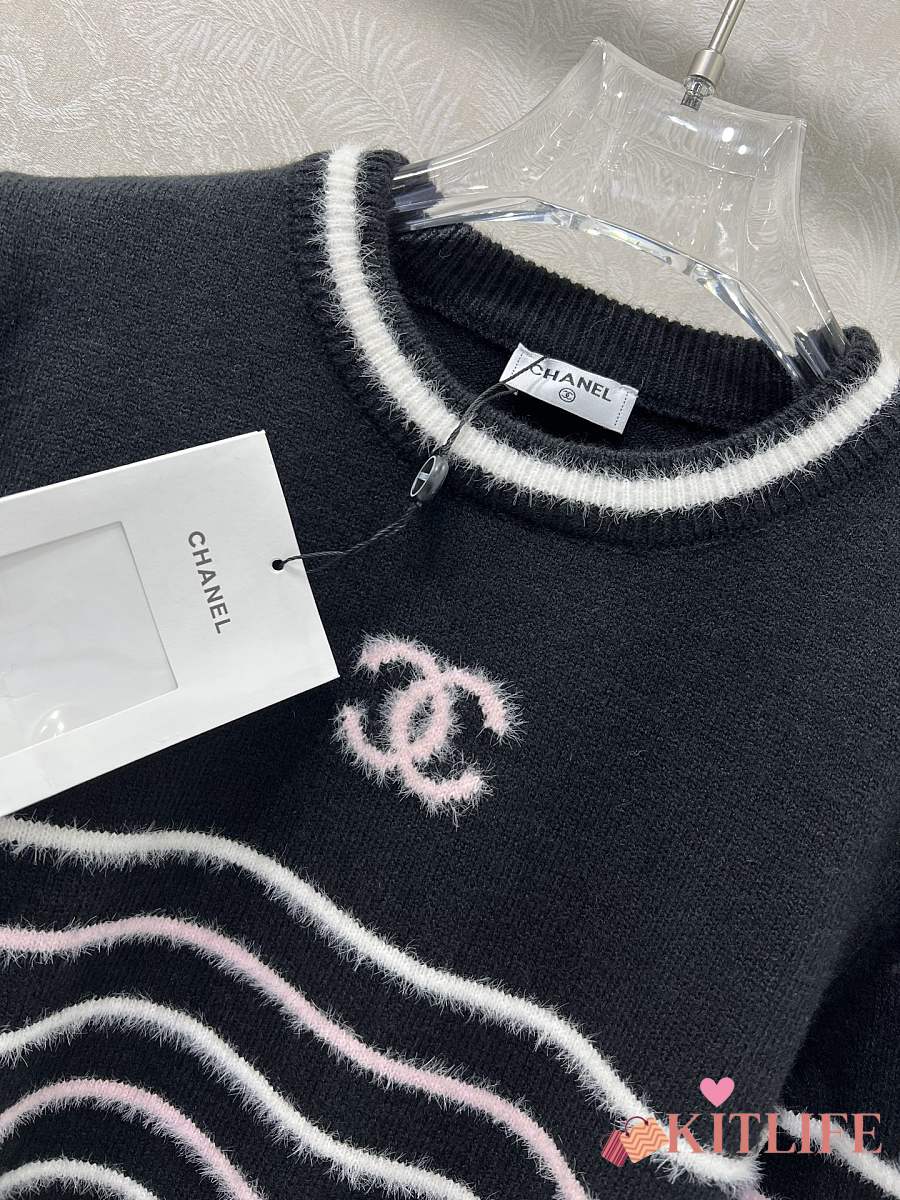 Kitlife Chanel 25 Striped Knit Pullover Sweater Black