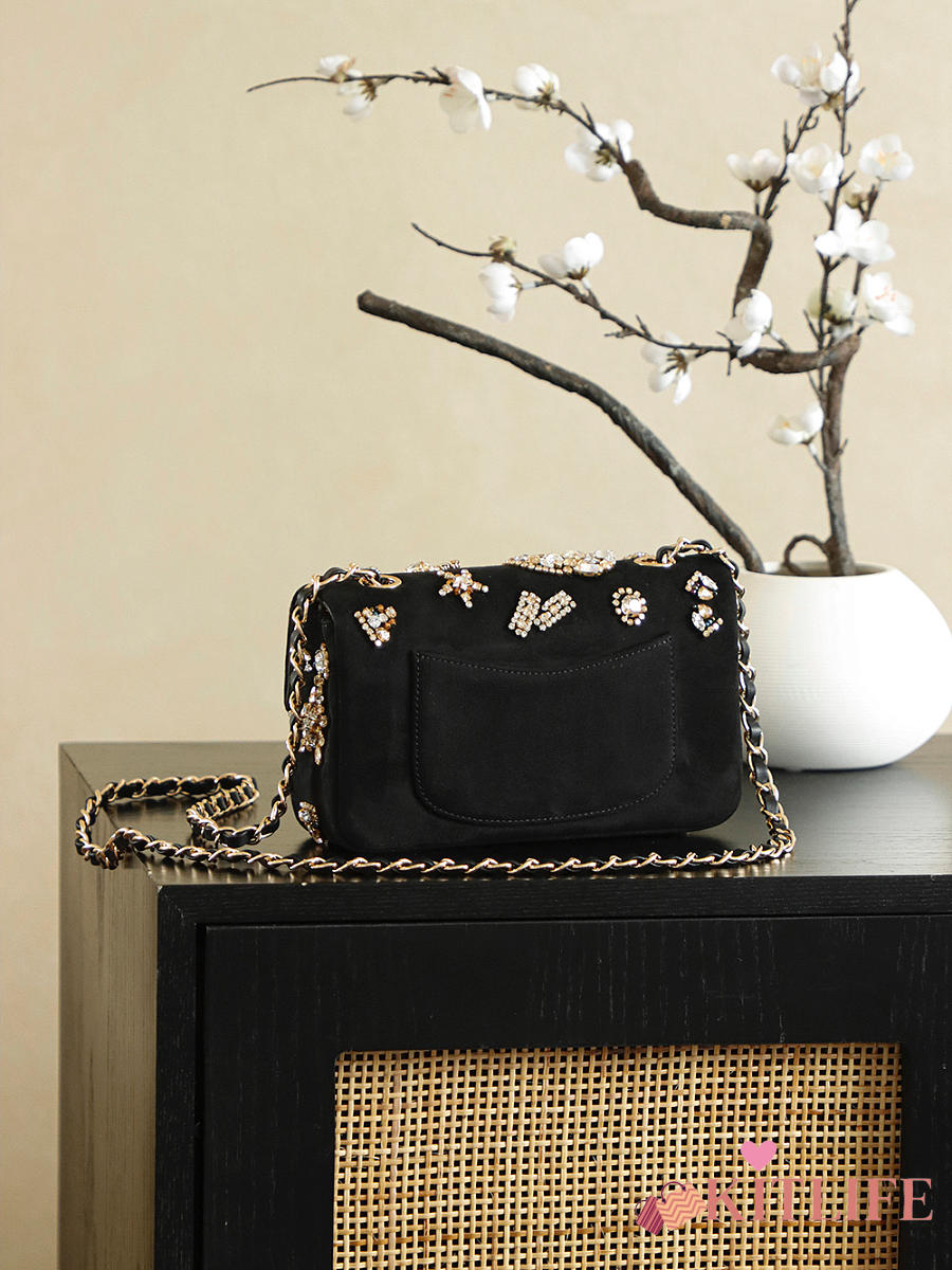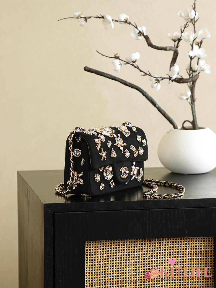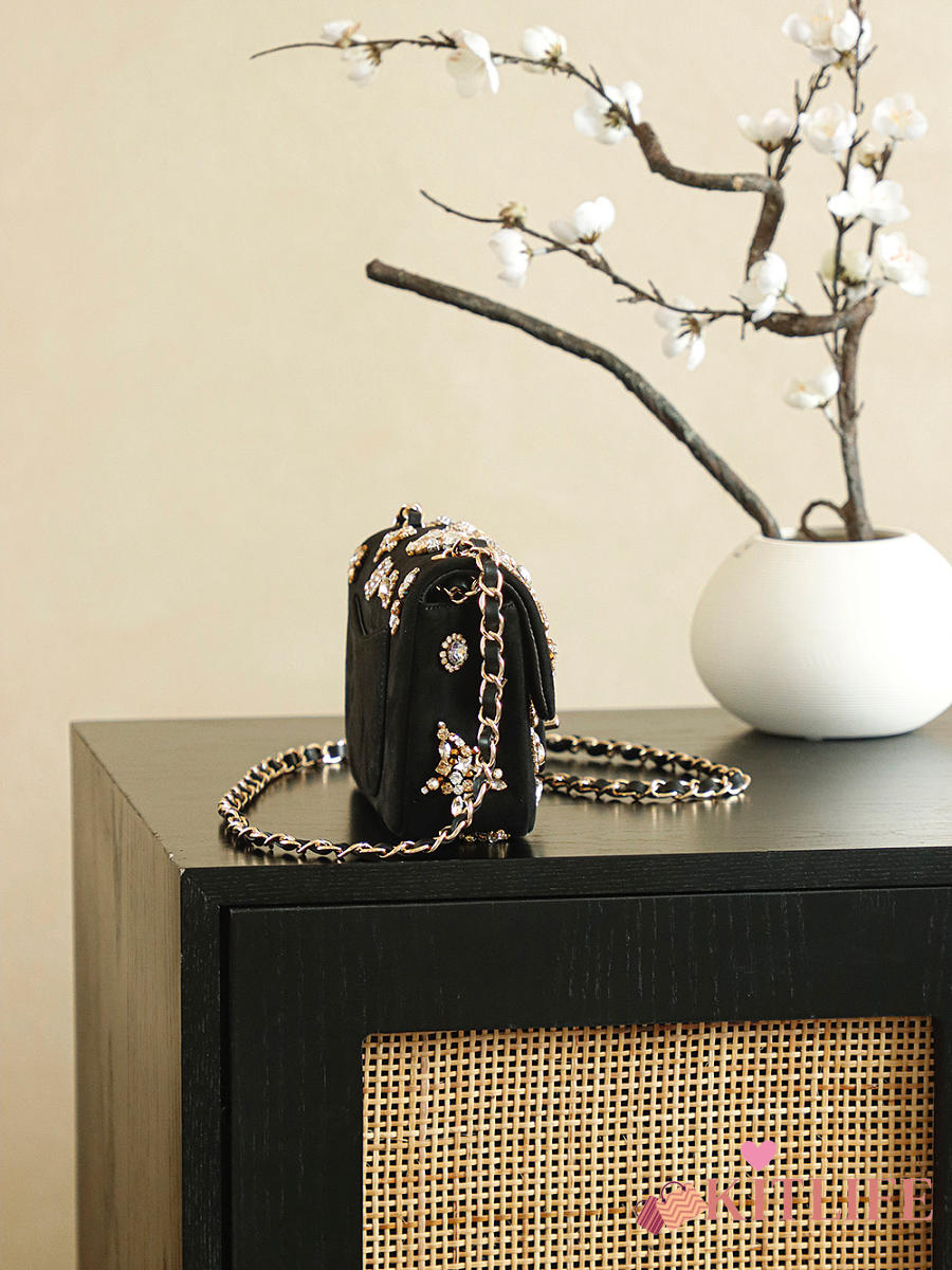 Kitlife Chanel 25A Paris Grand Palais Runway Limited Edition Badge Bag Black 10x20x7cm