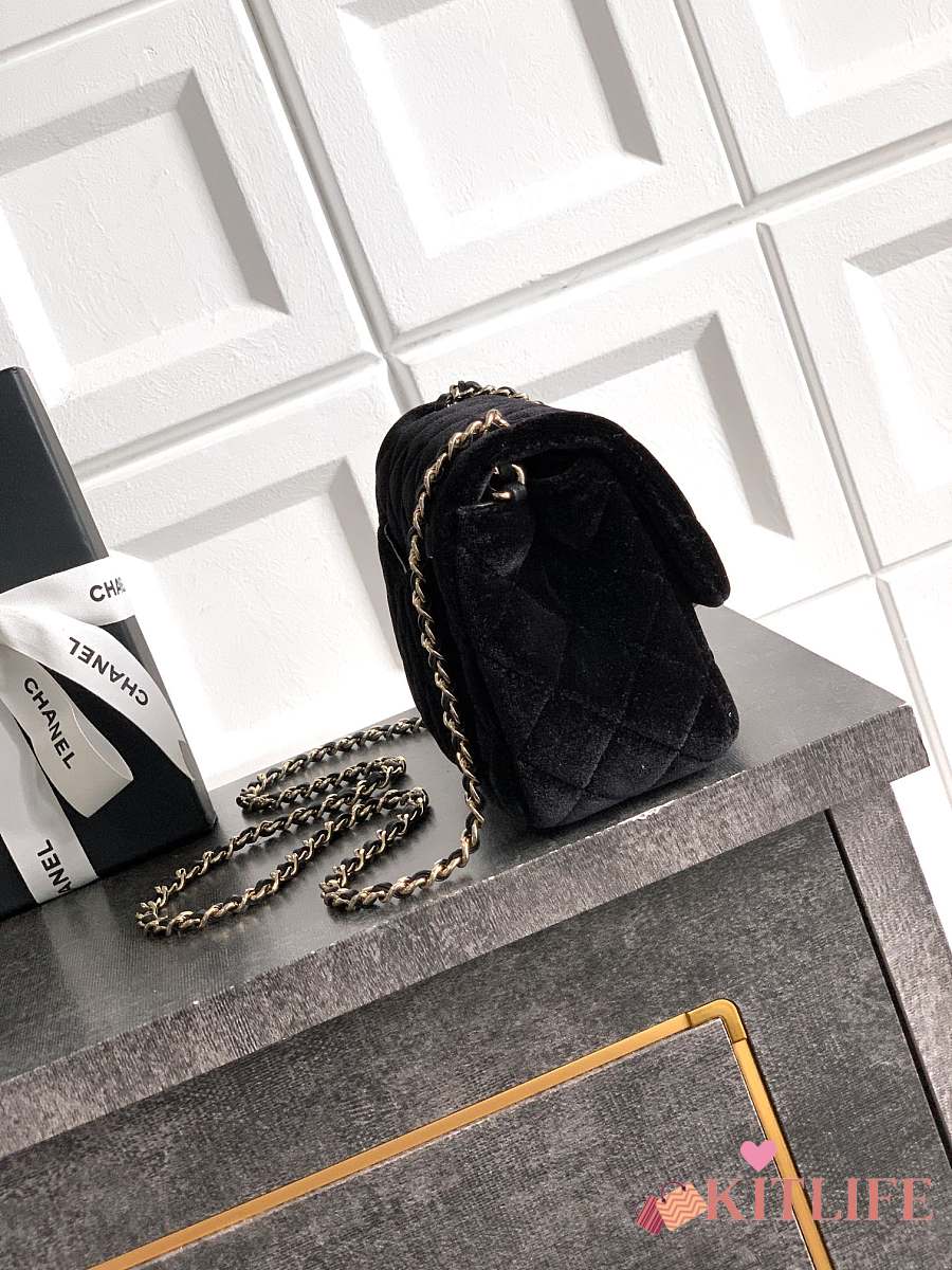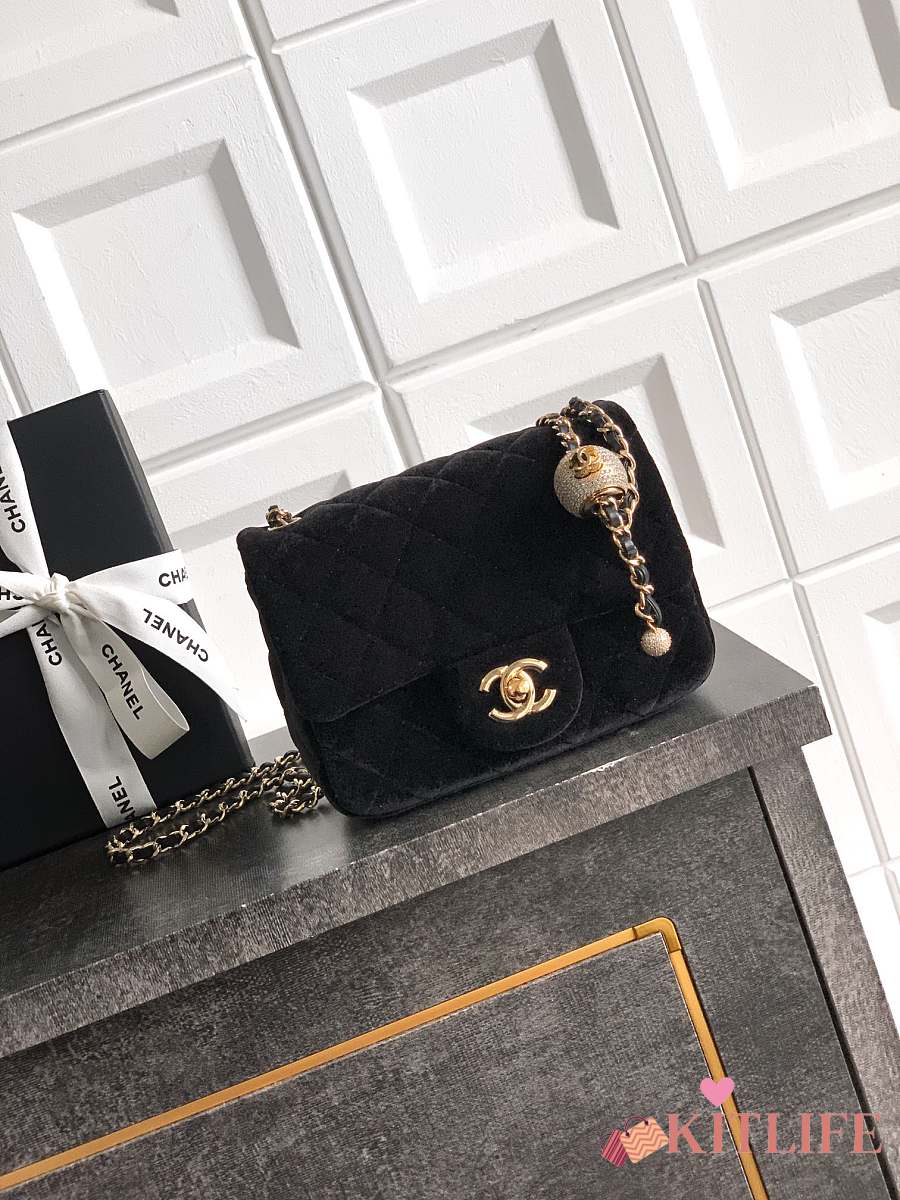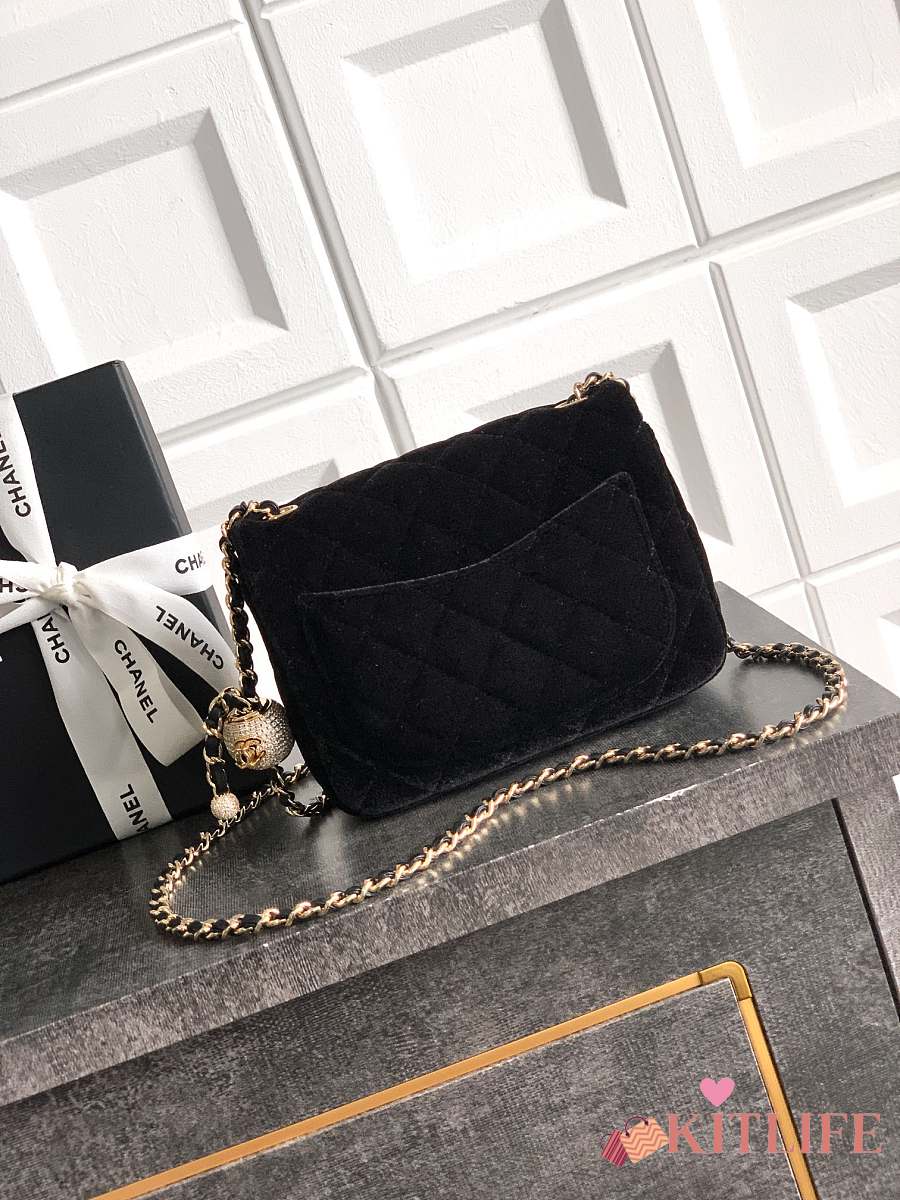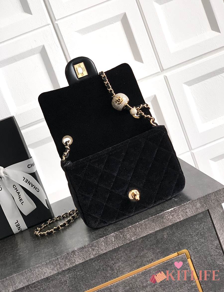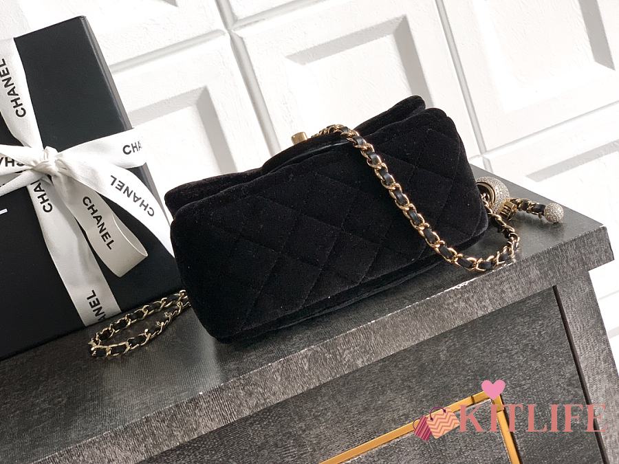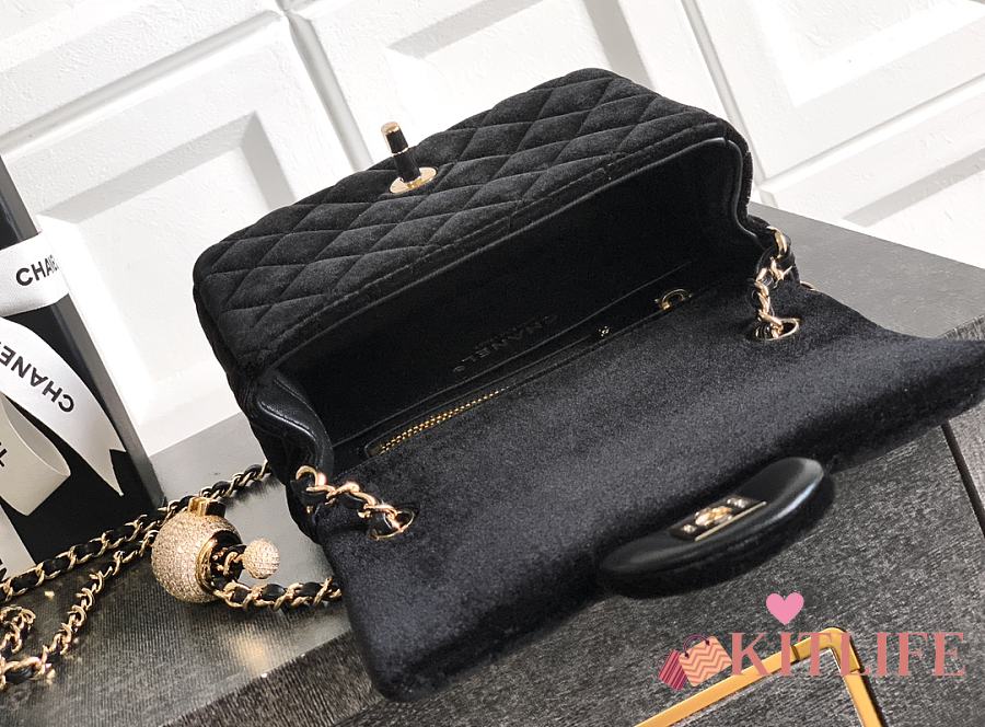 Kitlife Chanel 25B Black Velvet Bag With Rhinestone Balls AS1786 18cm