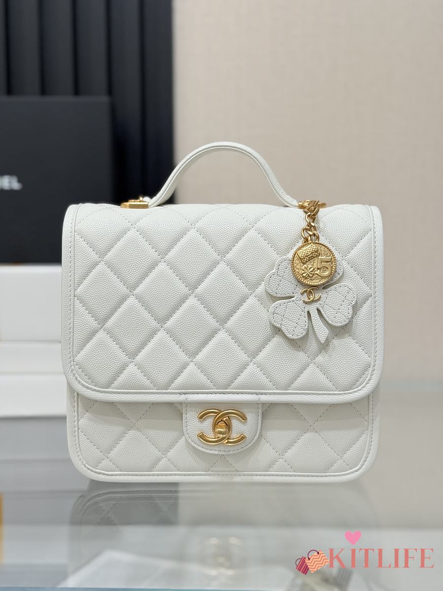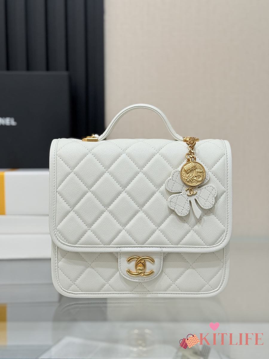Kitlife Chanel 25B Clover Backpack White 22x19.5x7cm