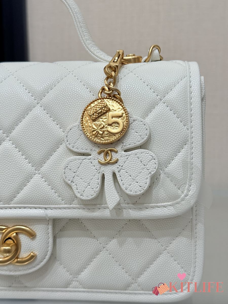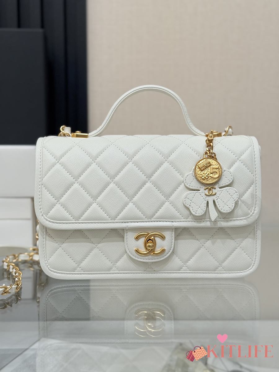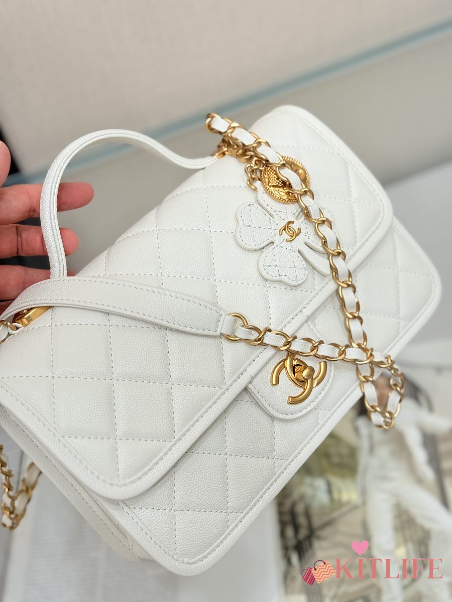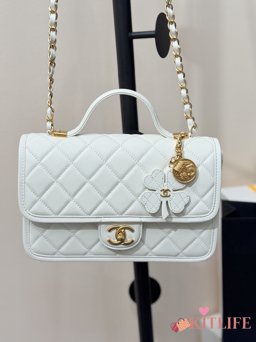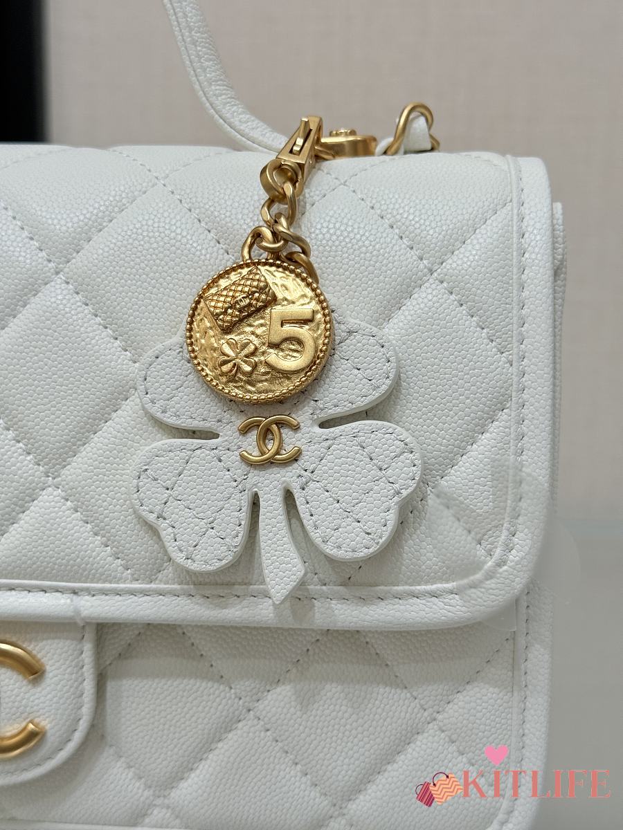 Kitlife Chanel 25B Clover Messenger Crossbody Bag White 16.5x25x8.5cm