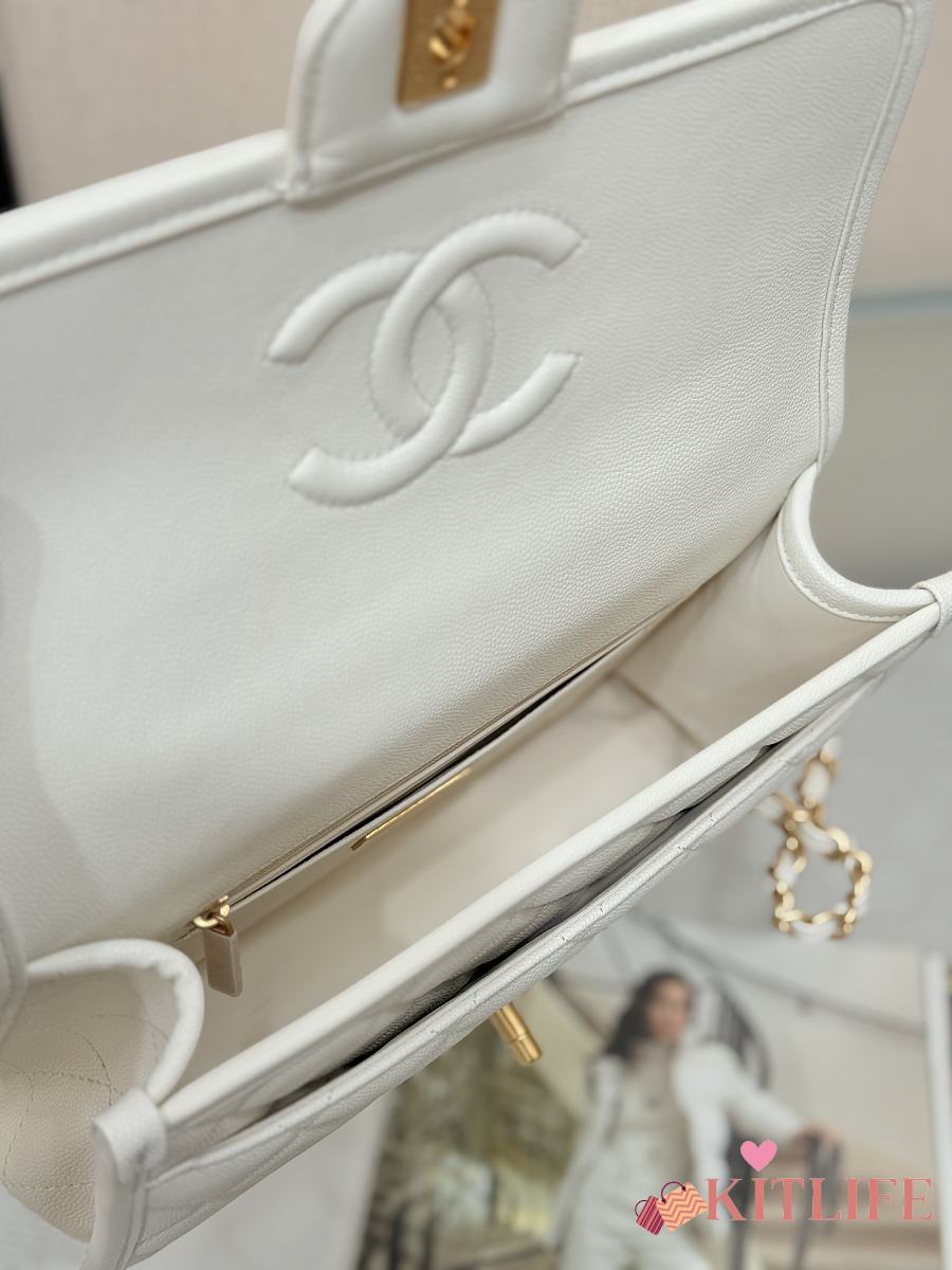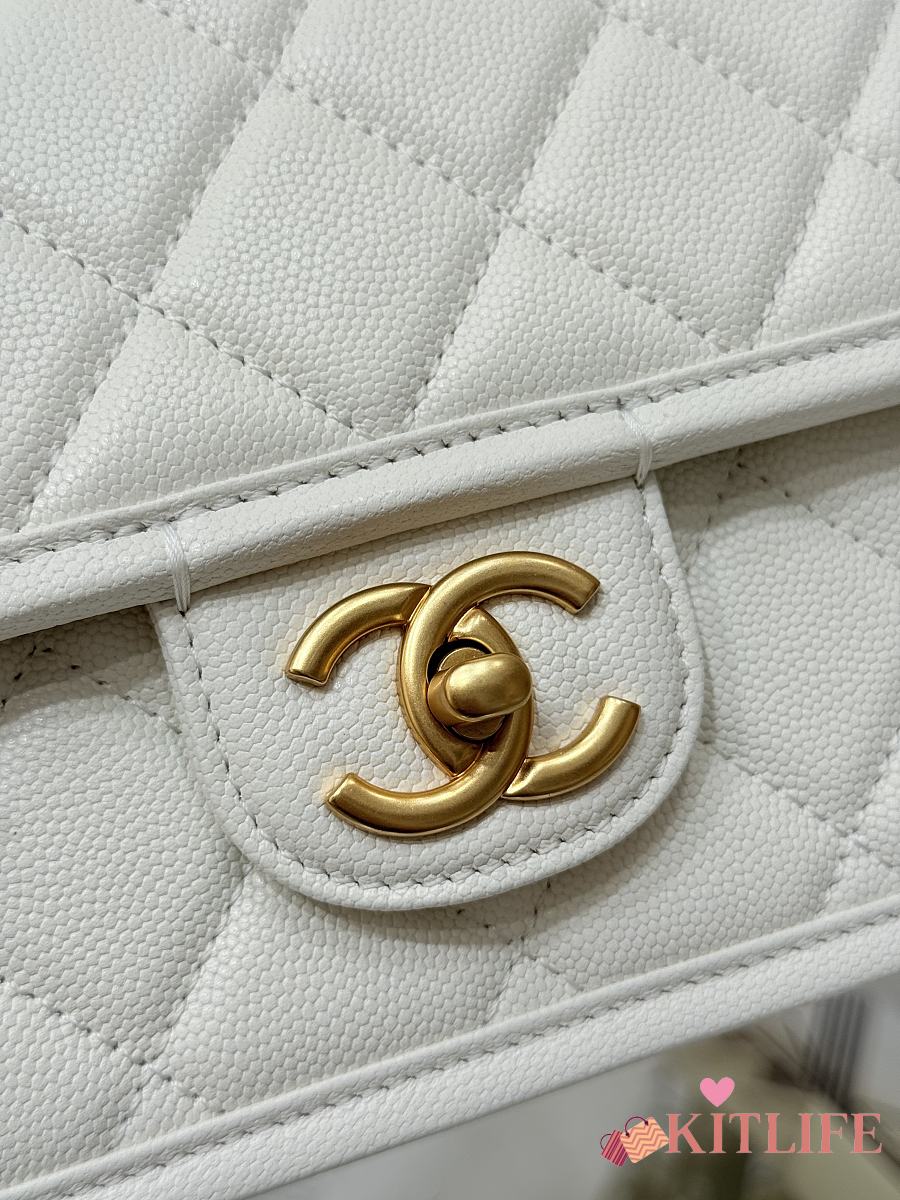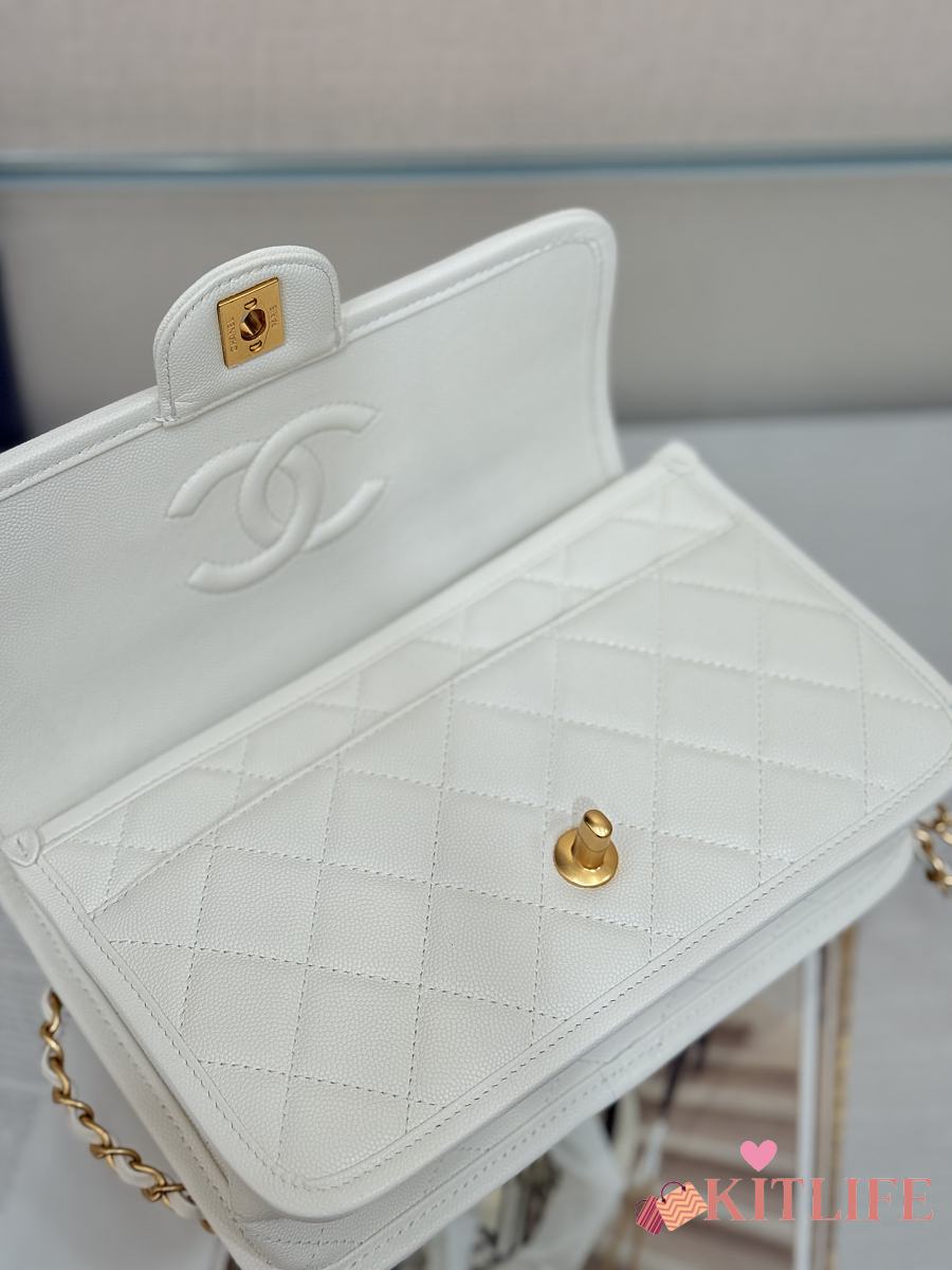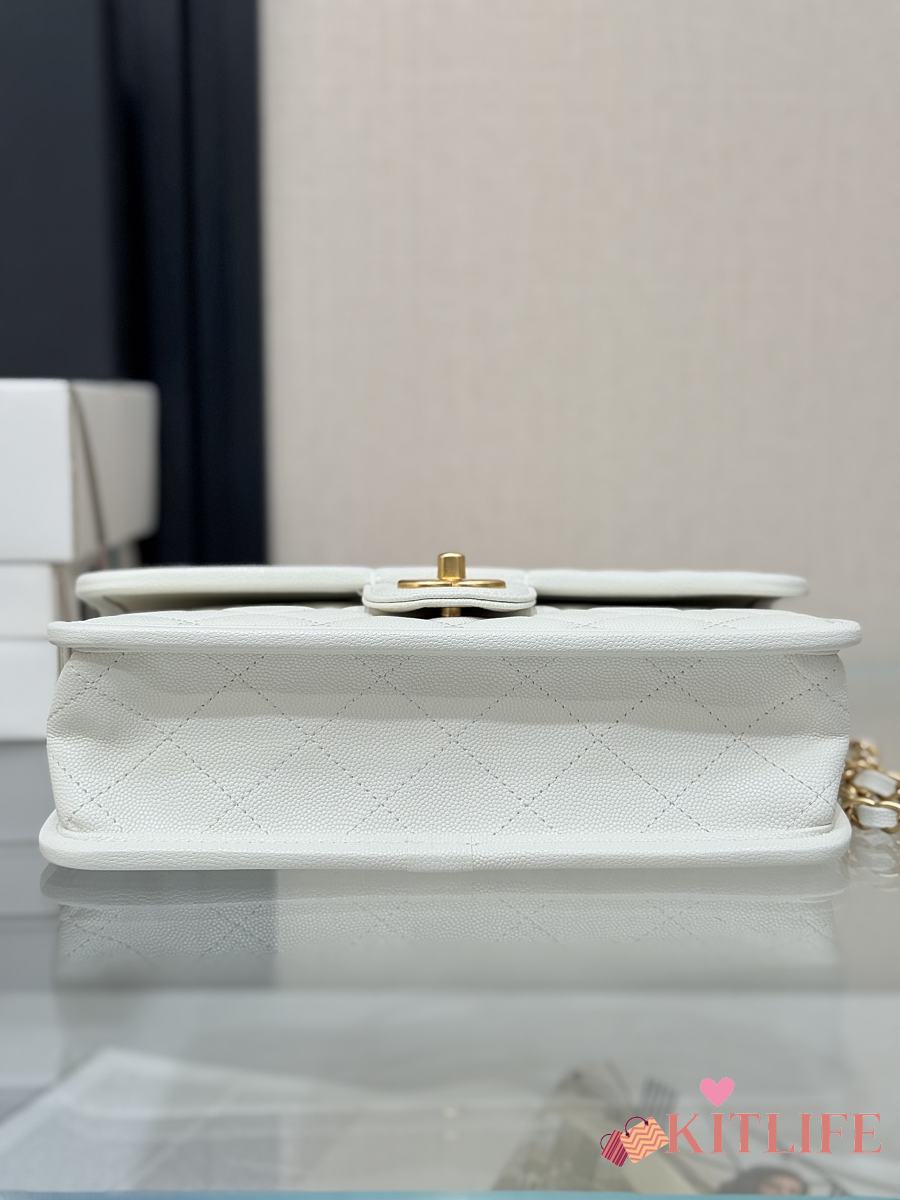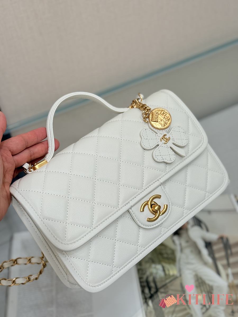 Kitlife Chanel 25B Clover Messenger Crossbody Bag White 16.5x25x8.5cm