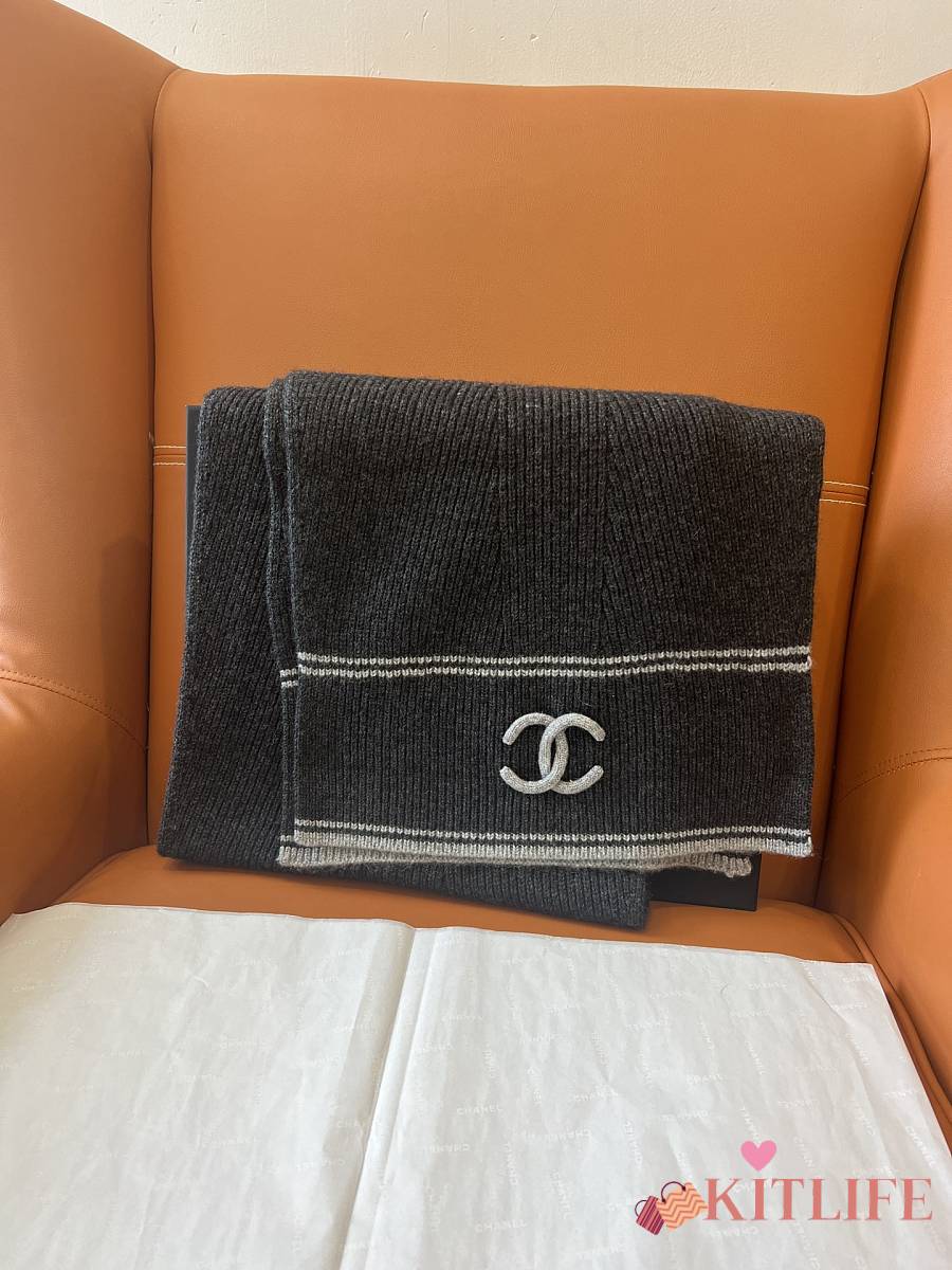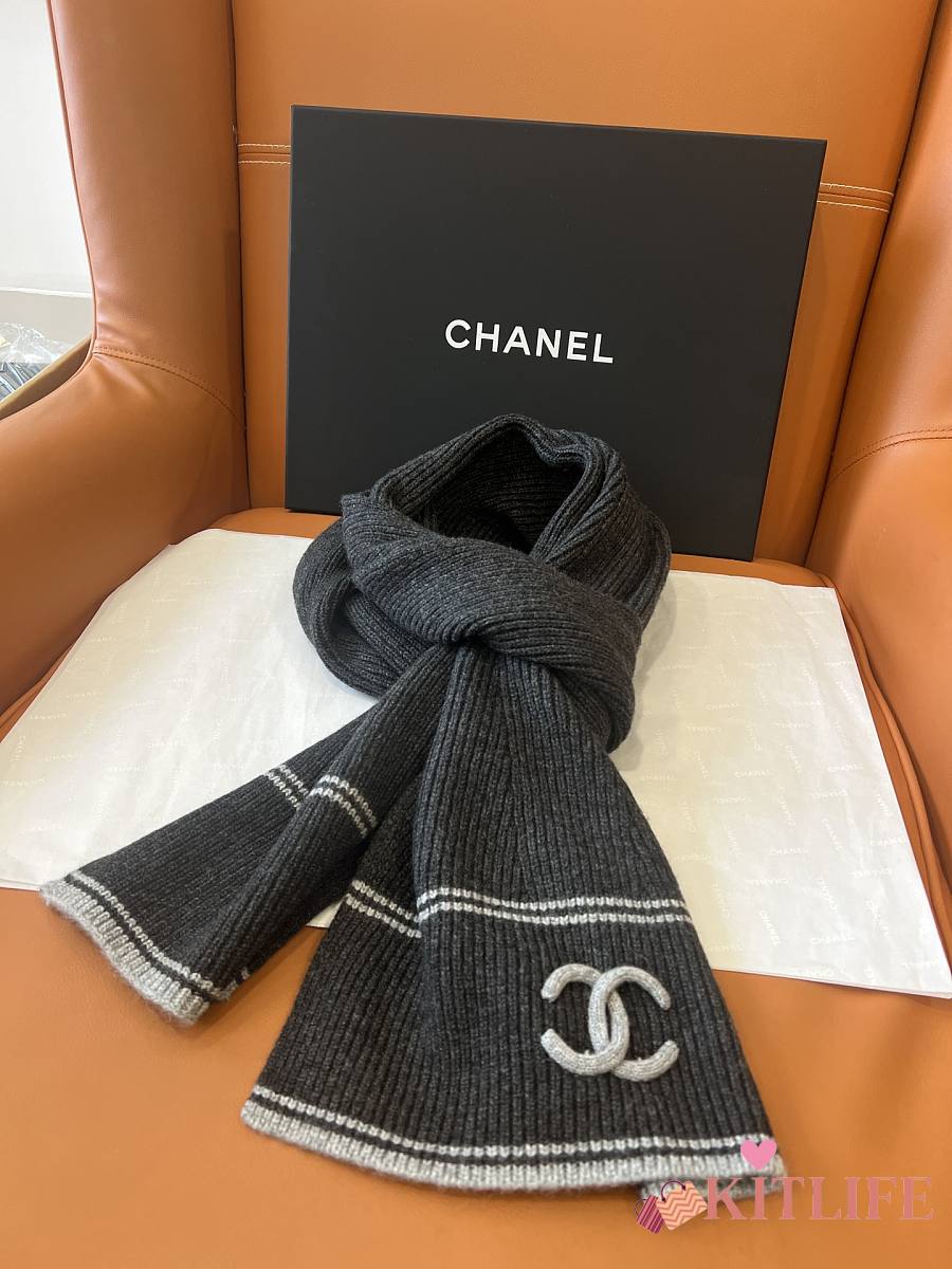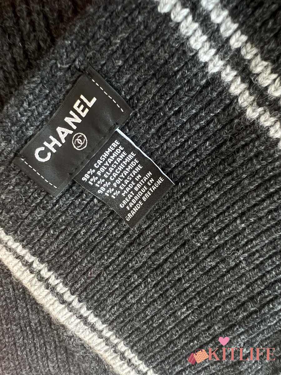 Kitlife Chanel 25B Knitted Cashmere Scarf Dark Grey 30x190cm