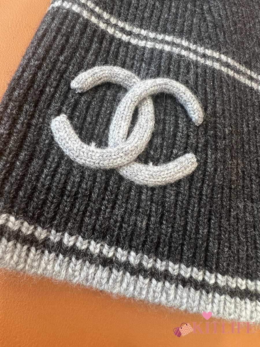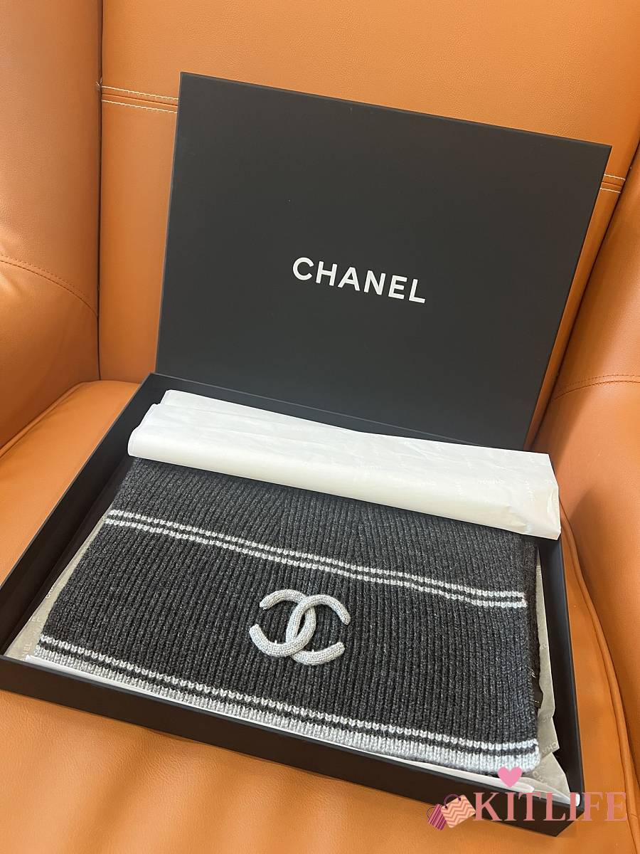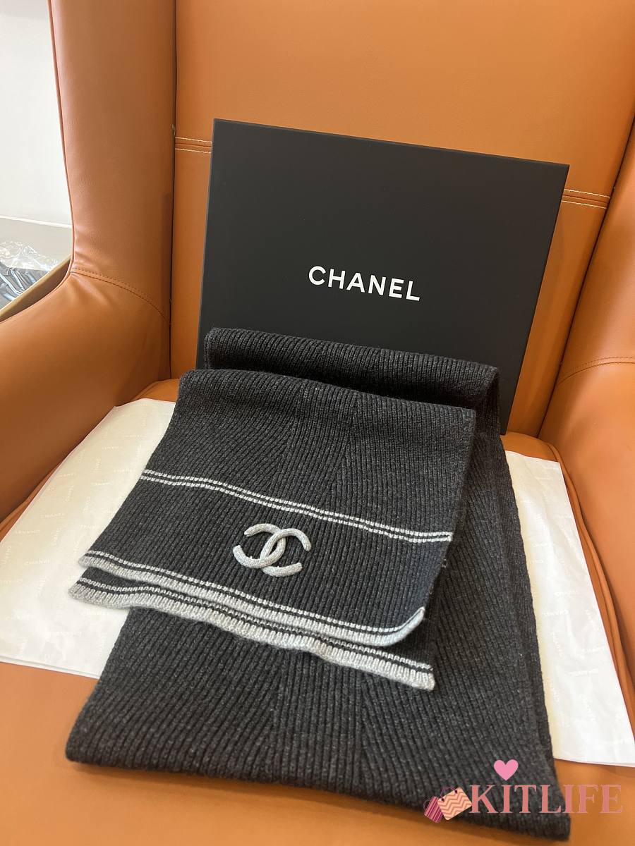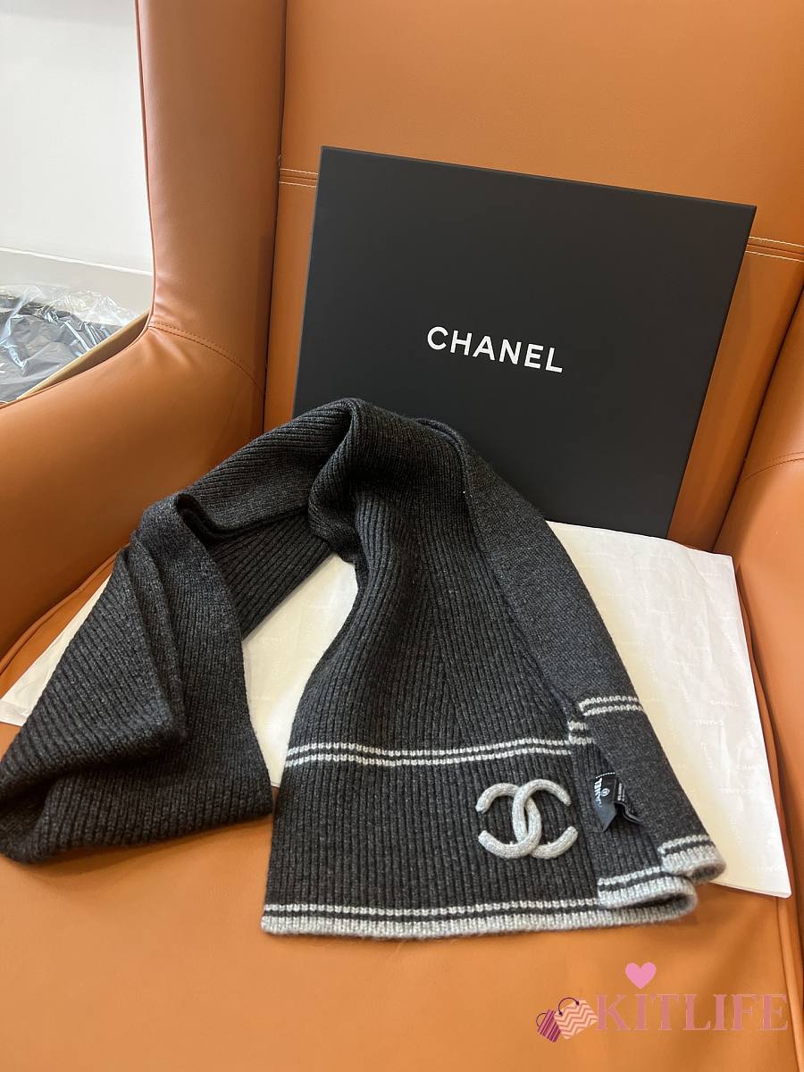 Kitlife Chanel 25B Knitted Cashmere Scarf Dark Grey 30x190cm