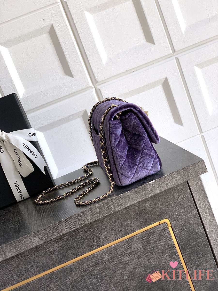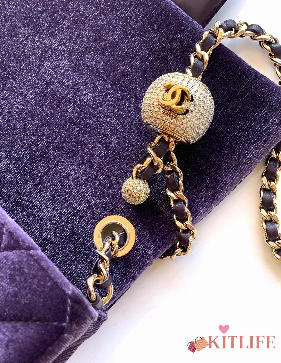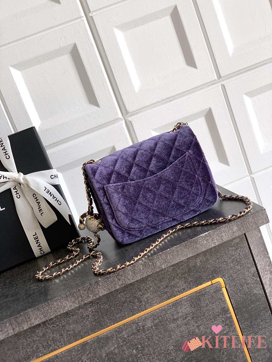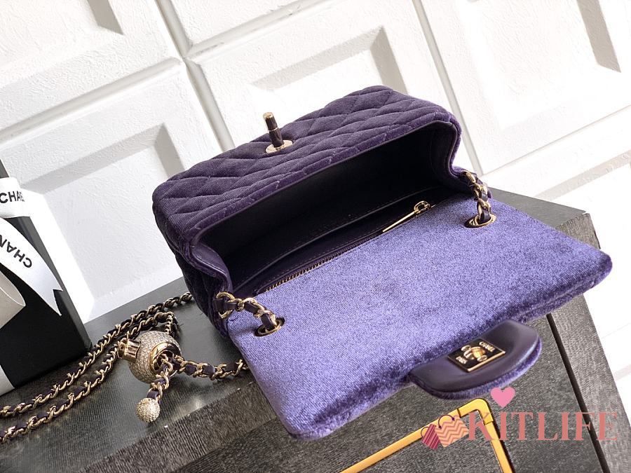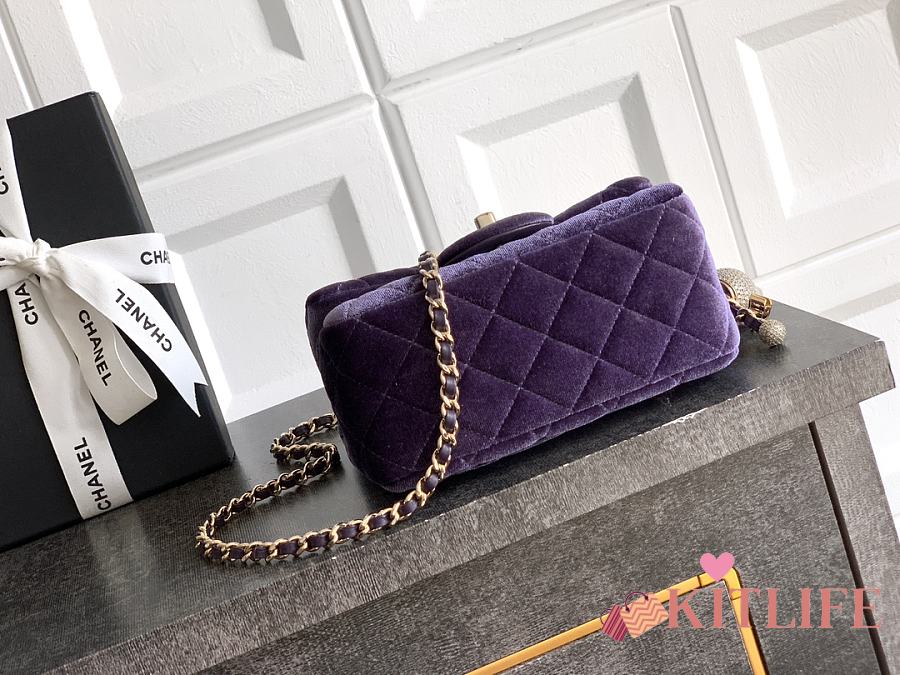 Kitlife Chanel 25B Purple Velvet Bag With Rhinestone Balls AS1786 18cm