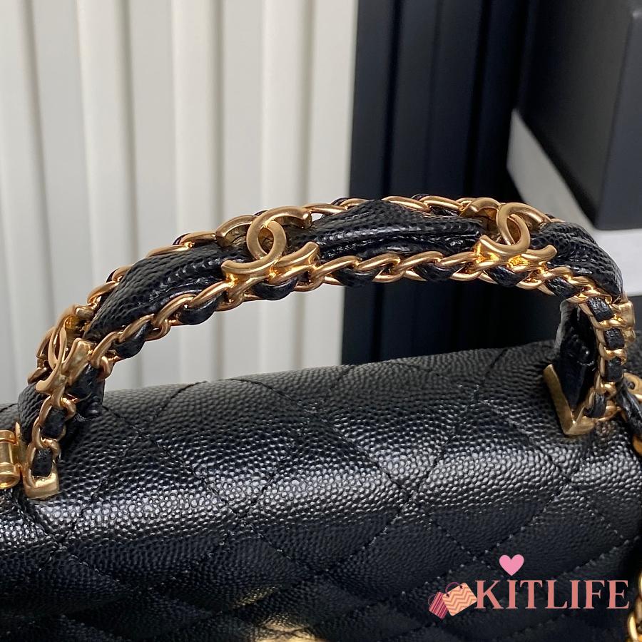 Chanel Coco Handle Bag Black Gold Metal
