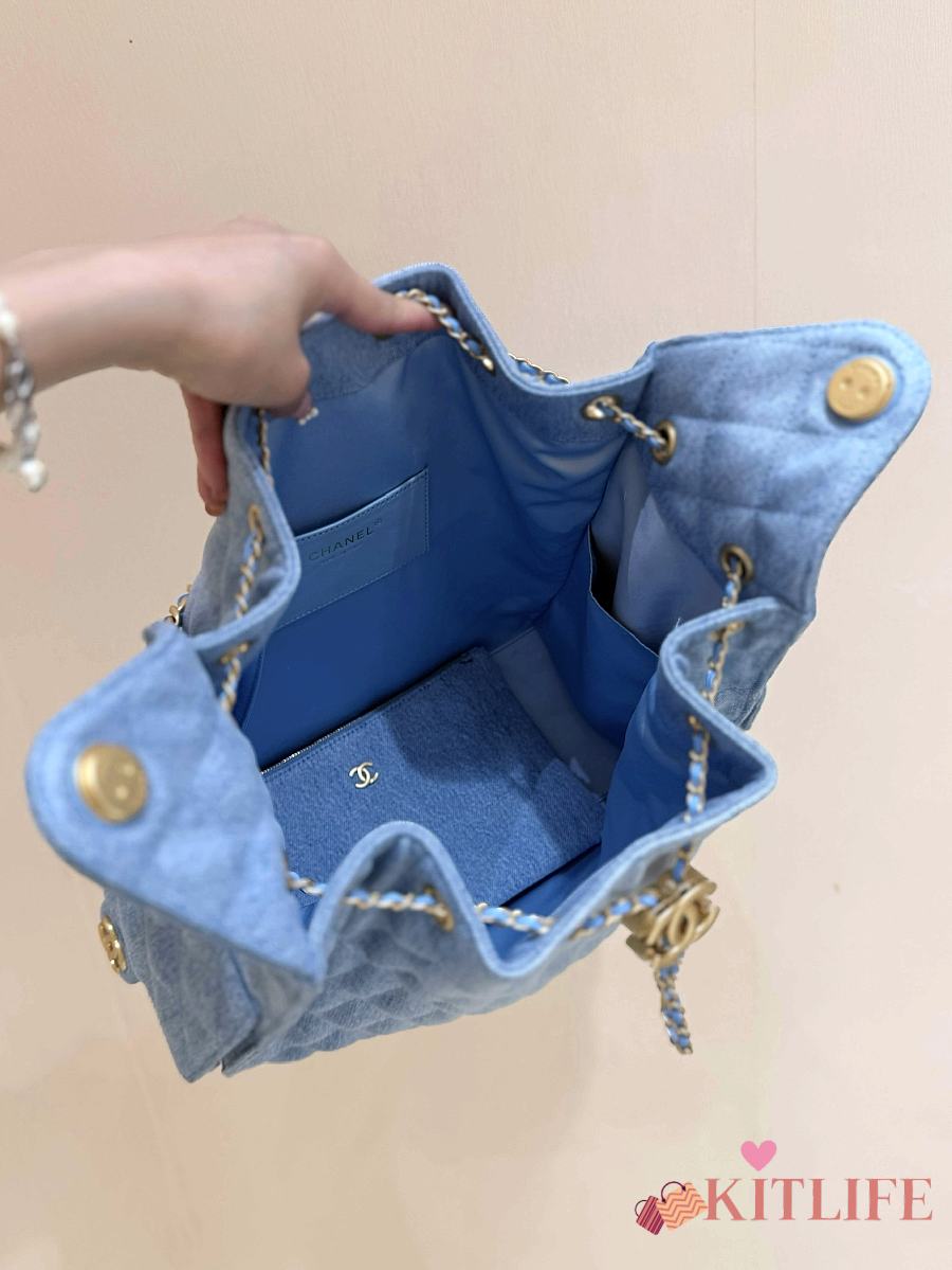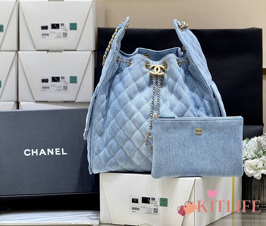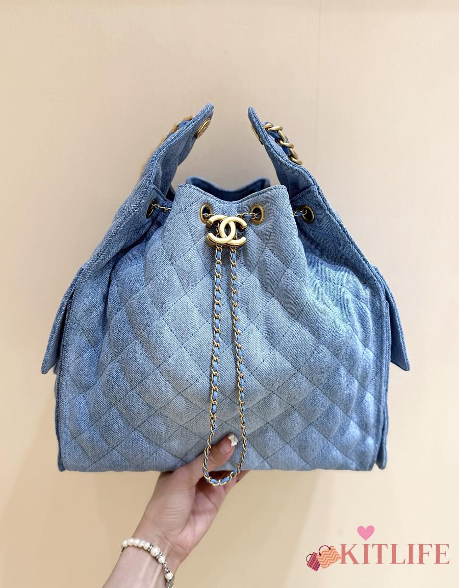 Kitlife Chanel 25C Drawstring Bucket Hobo Bag Blue Denim AS5311 40x30x15cm