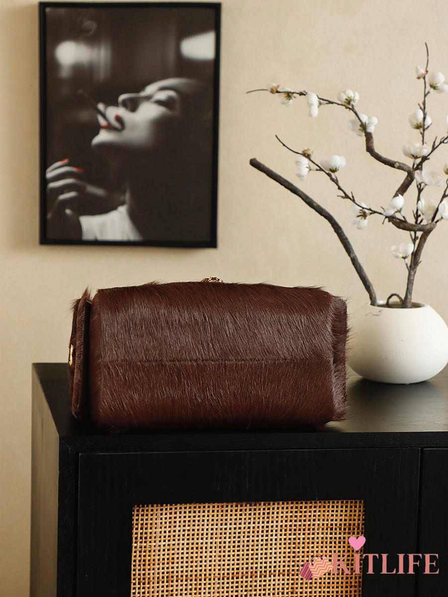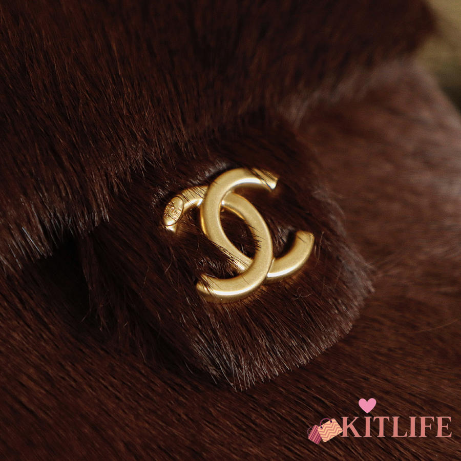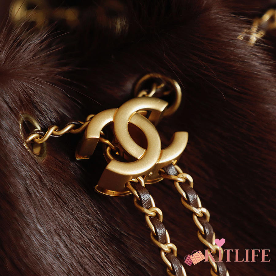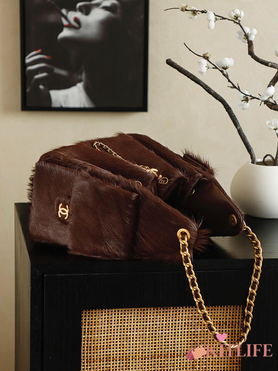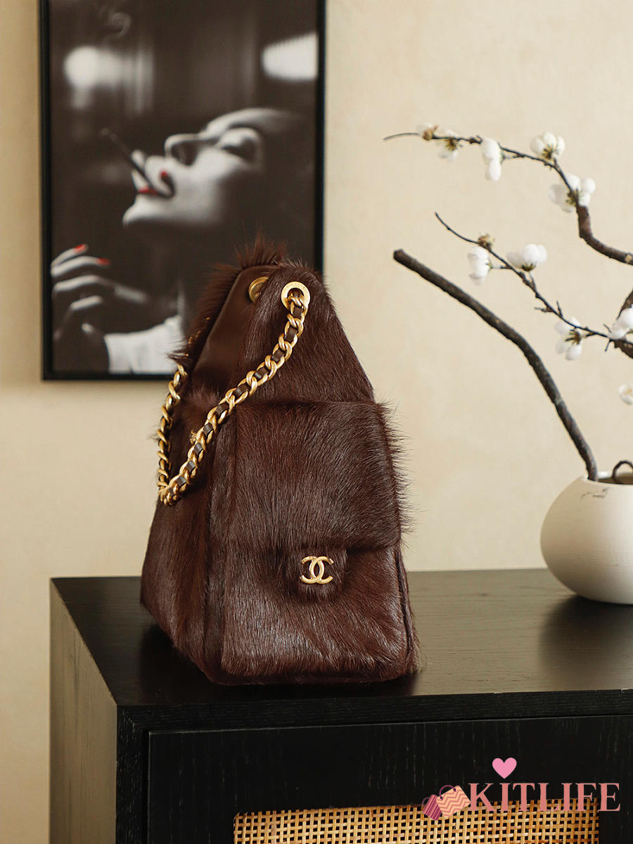 Kitlife Chanel 25C Drawstring Bucket Hobo Bag Chocolate Pony Hair 30x26x14cm