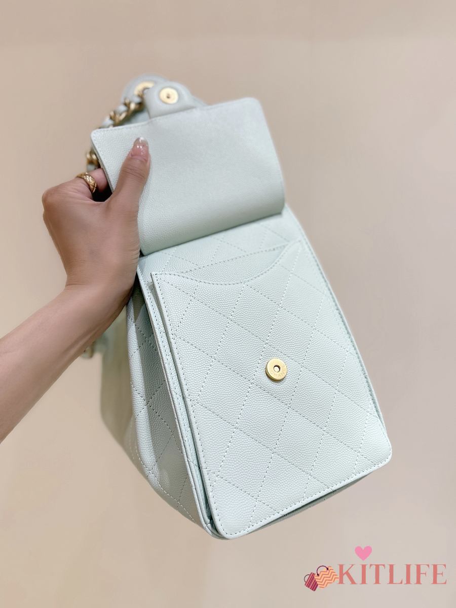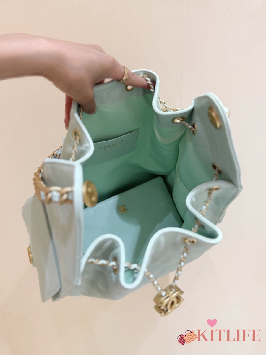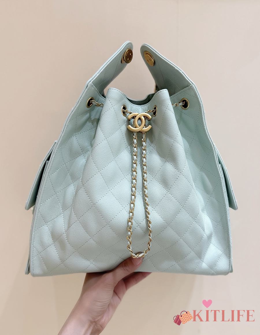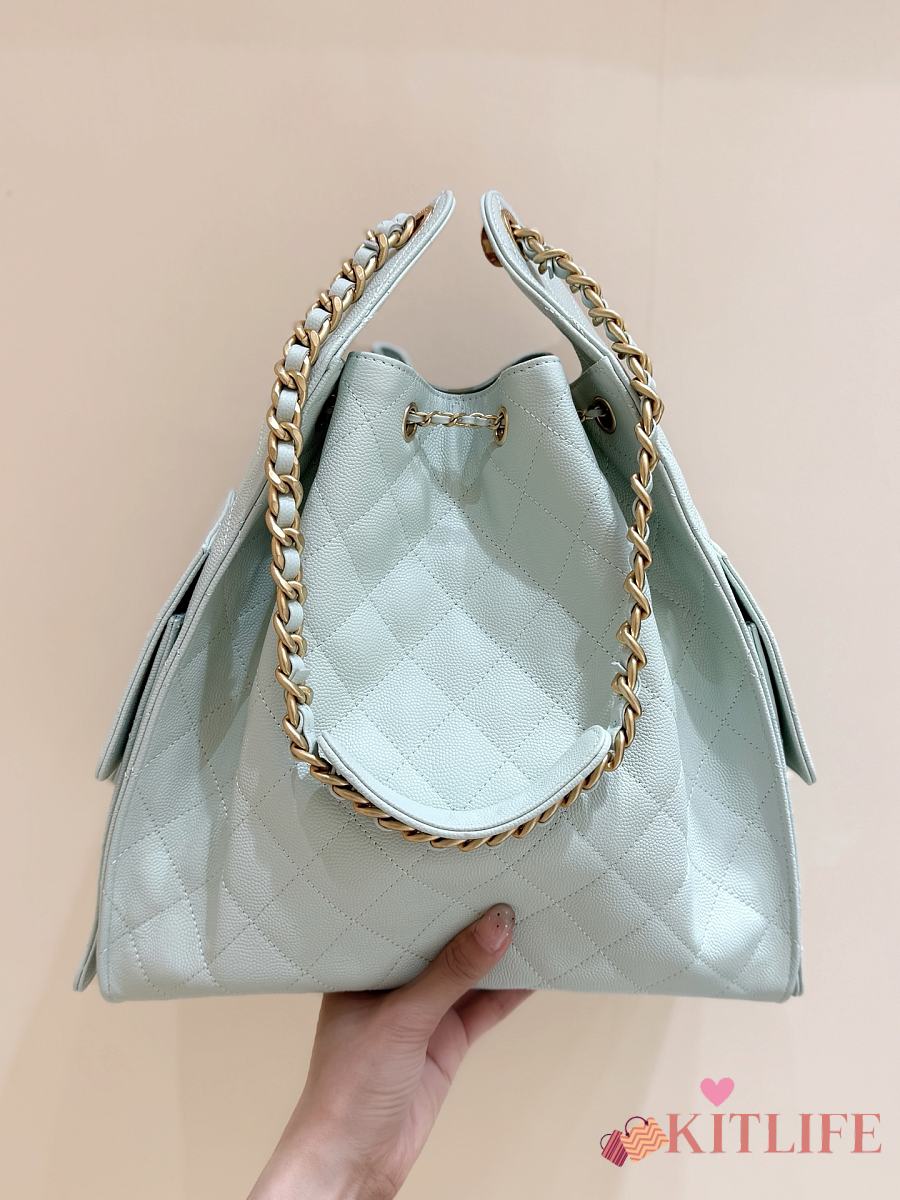 Kitlife Chanel 25C Drawstring Bucket Hobo Bag Green Grained Calfskin AS5311 40x30x15cm