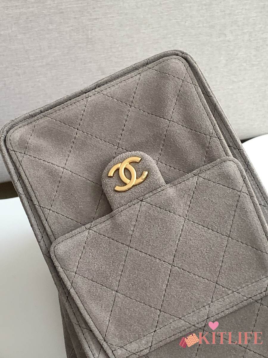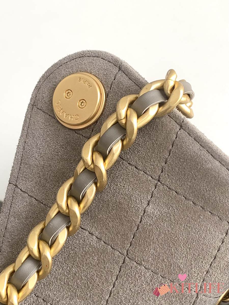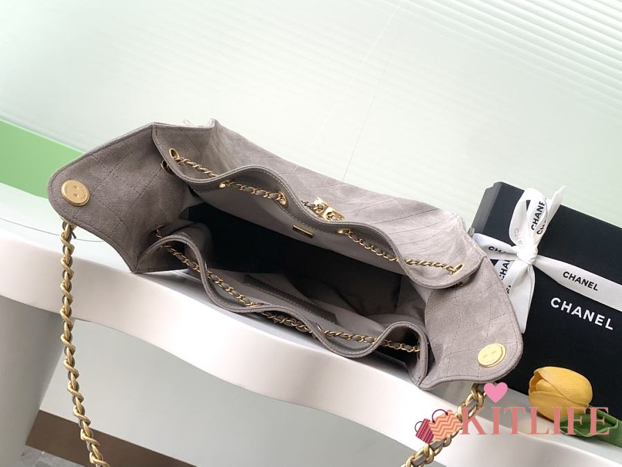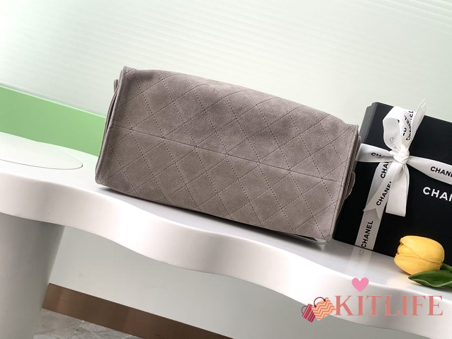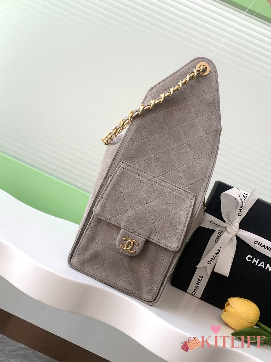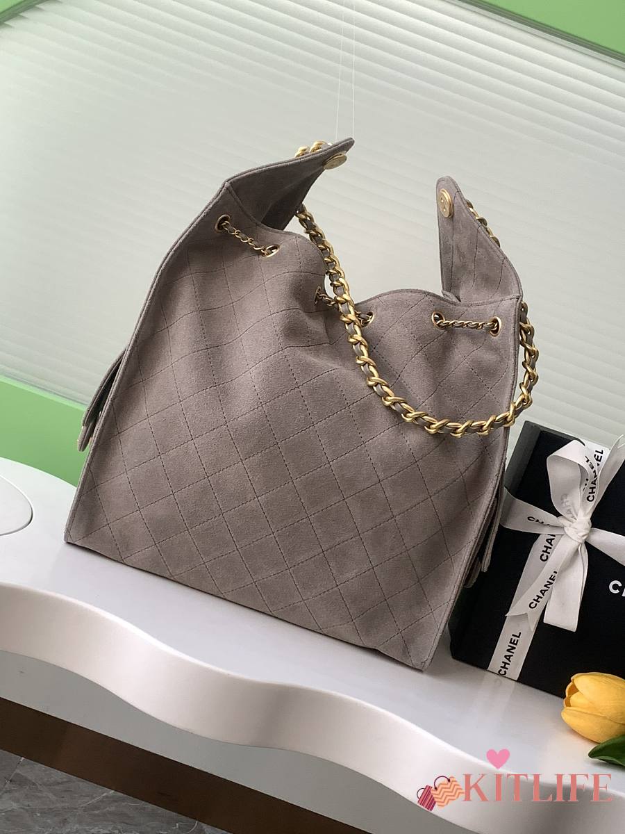 Kitlife Chanel 25C Drawstring Bucket Hobo Bag Grey Suede AS5311 40x30x15cm