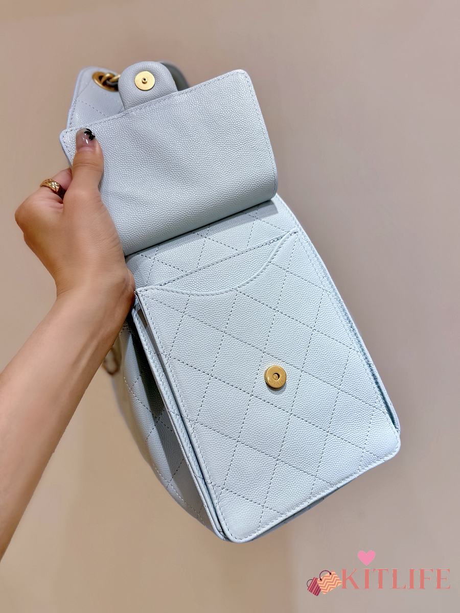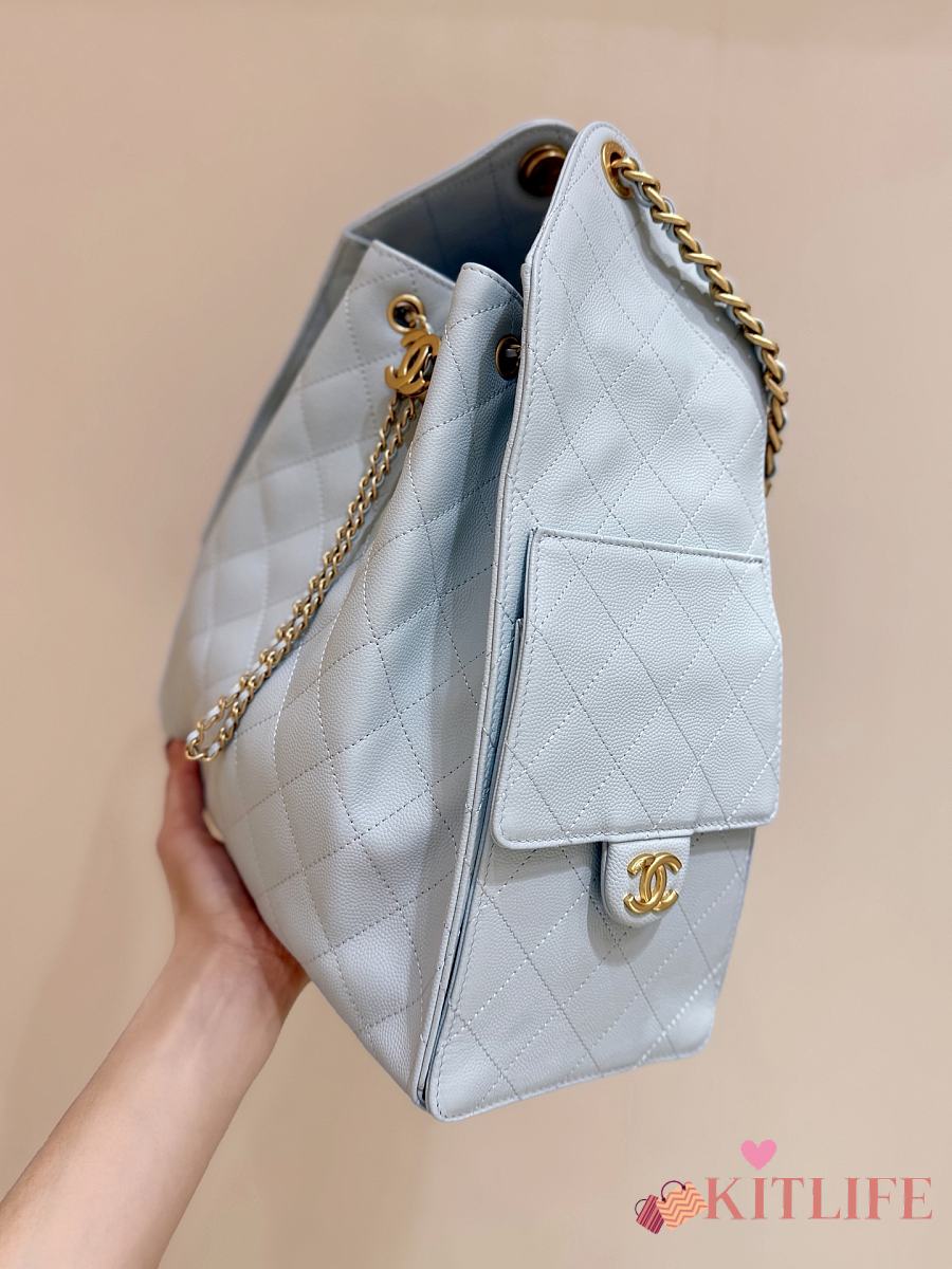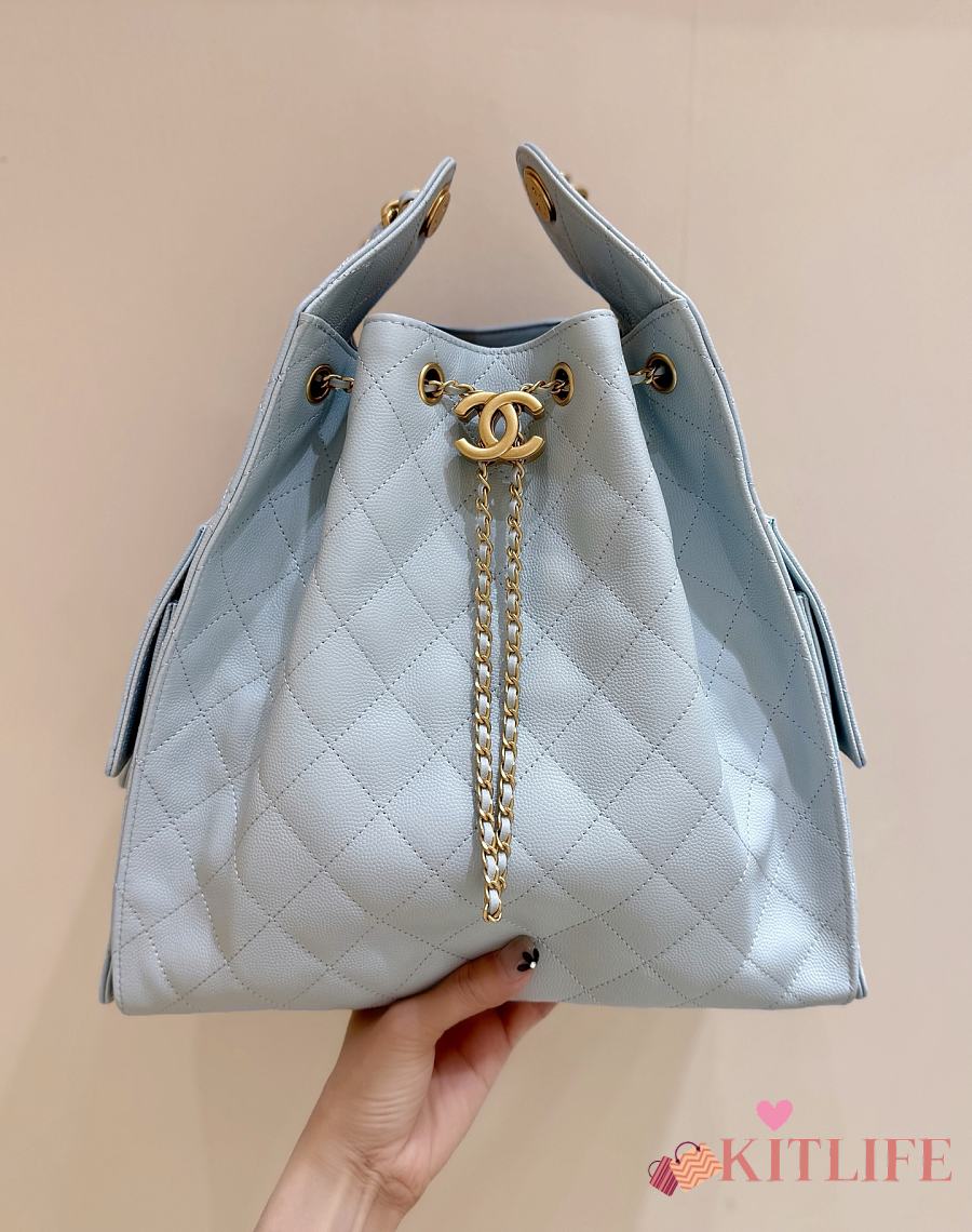 Kitlife Chanel 25C Drawstring Bucket Hobo Bag Light Blue Grained Calfskin AS5311 40x30x15cm