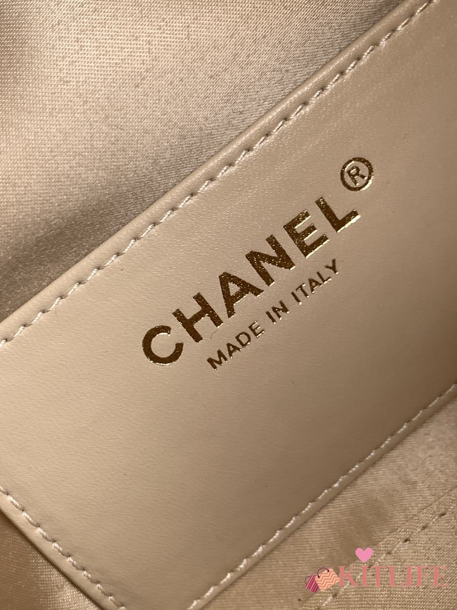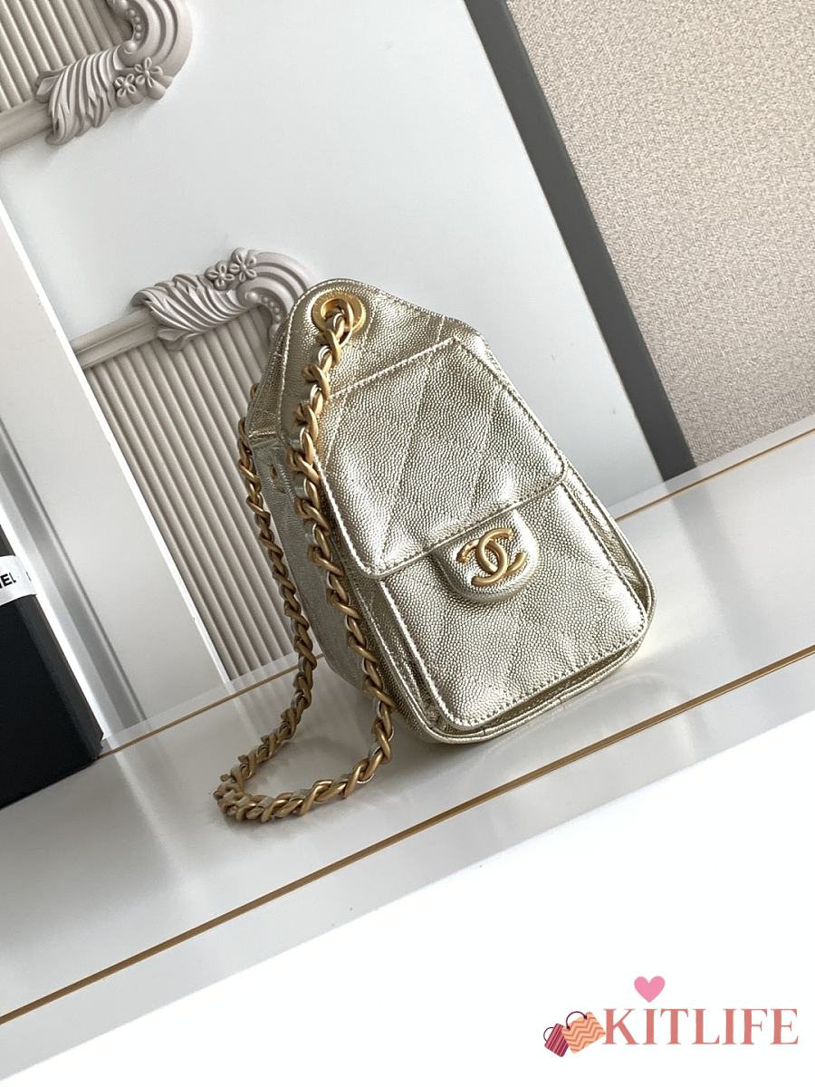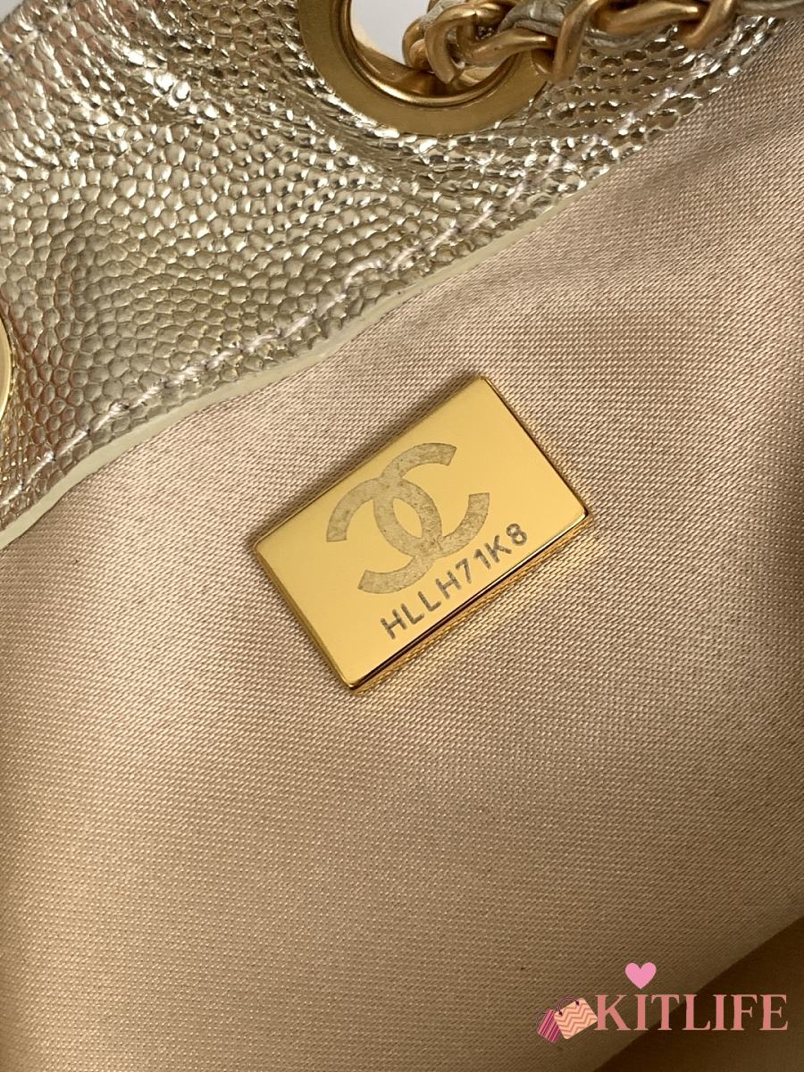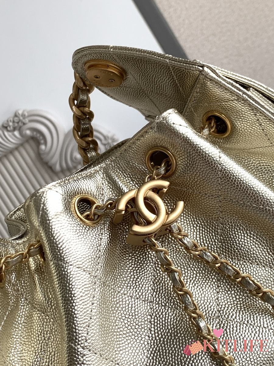 Kitlife Chanel 25C Drawstring Bucket Hobo Bag Light Gold Leather 20x22x12.5cm