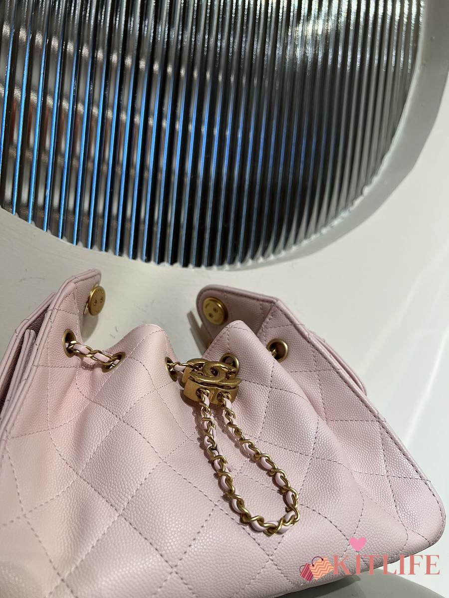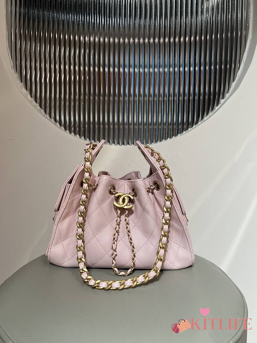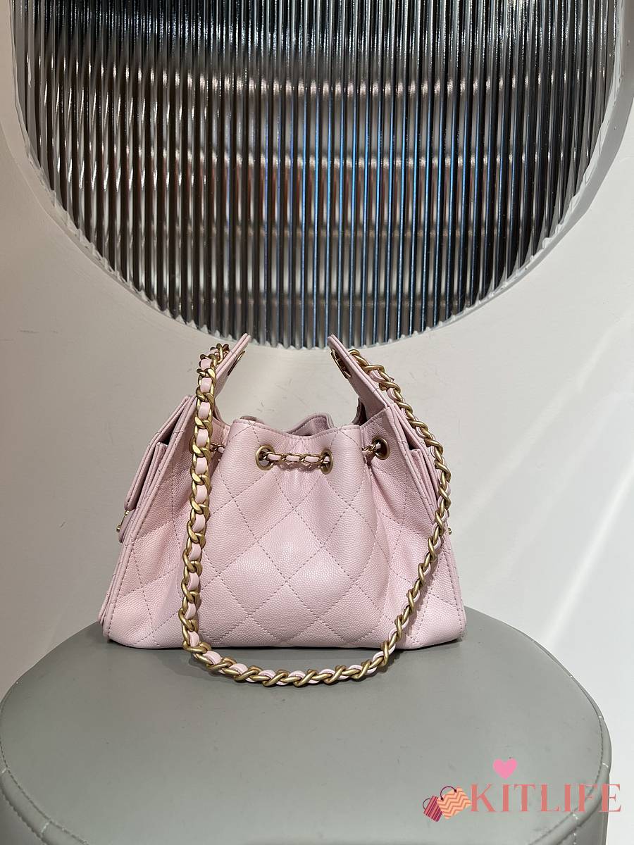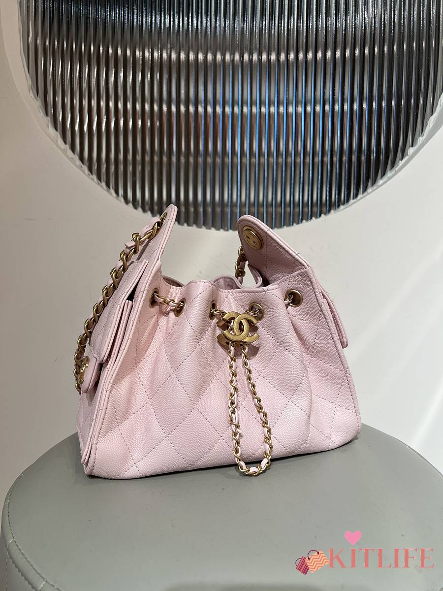 Kitlife Chanel 25C Drawstring Bucket Hobo Bag Light Pink Grained Leather 20x22x12.5cm