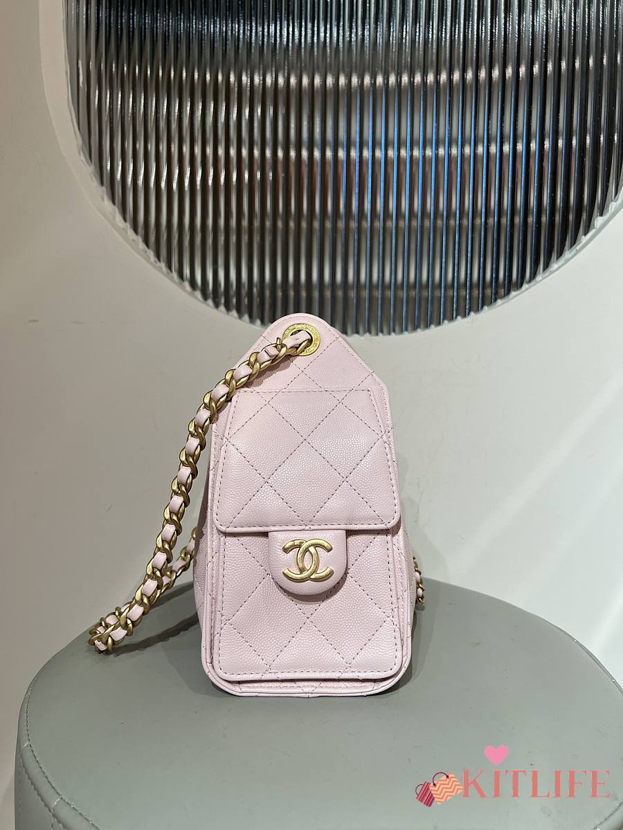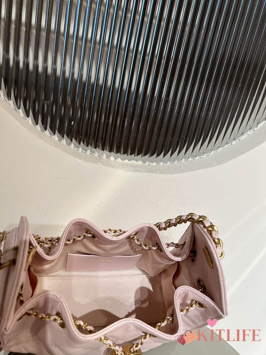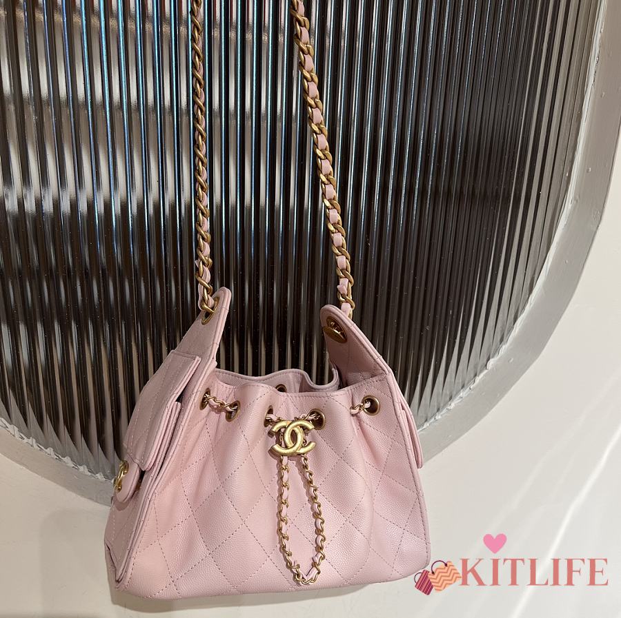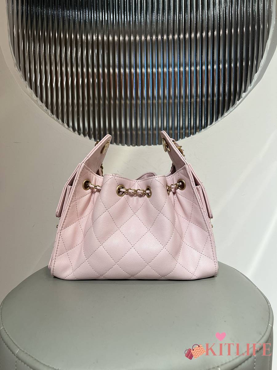 Kitlife Chanel 25C Drawstring Bucket Hobo Bag Light Pink Grained Leather 20x22x12.5cm