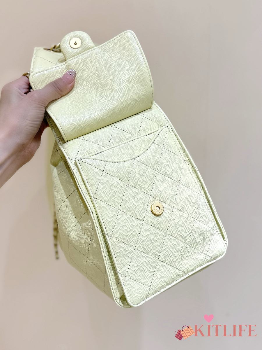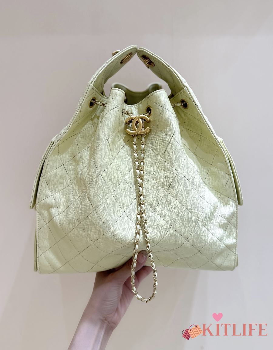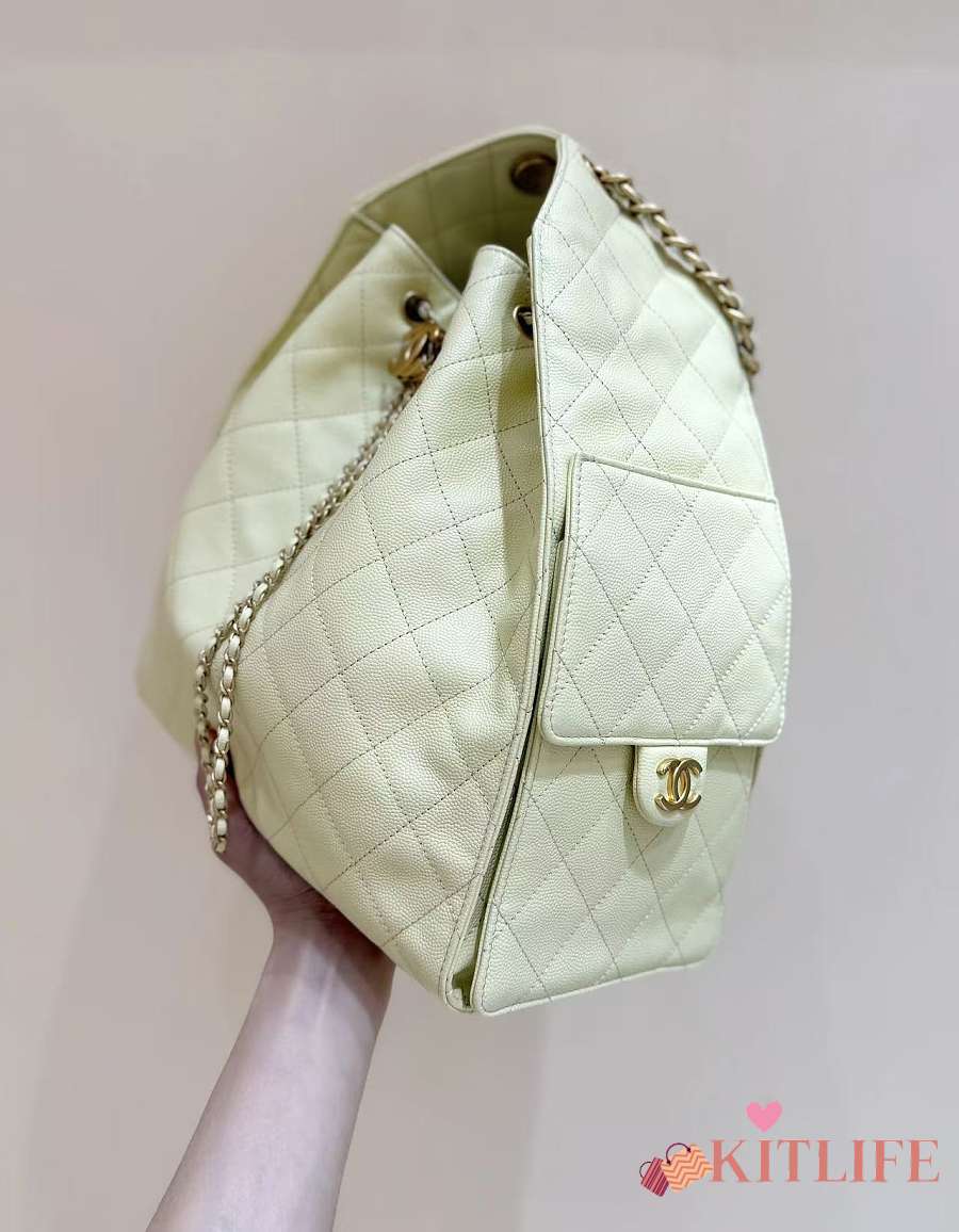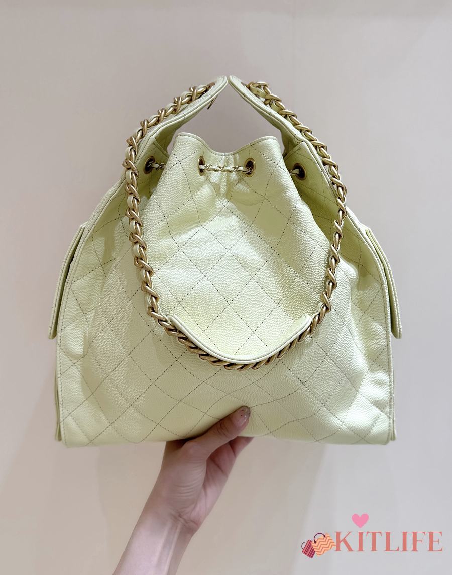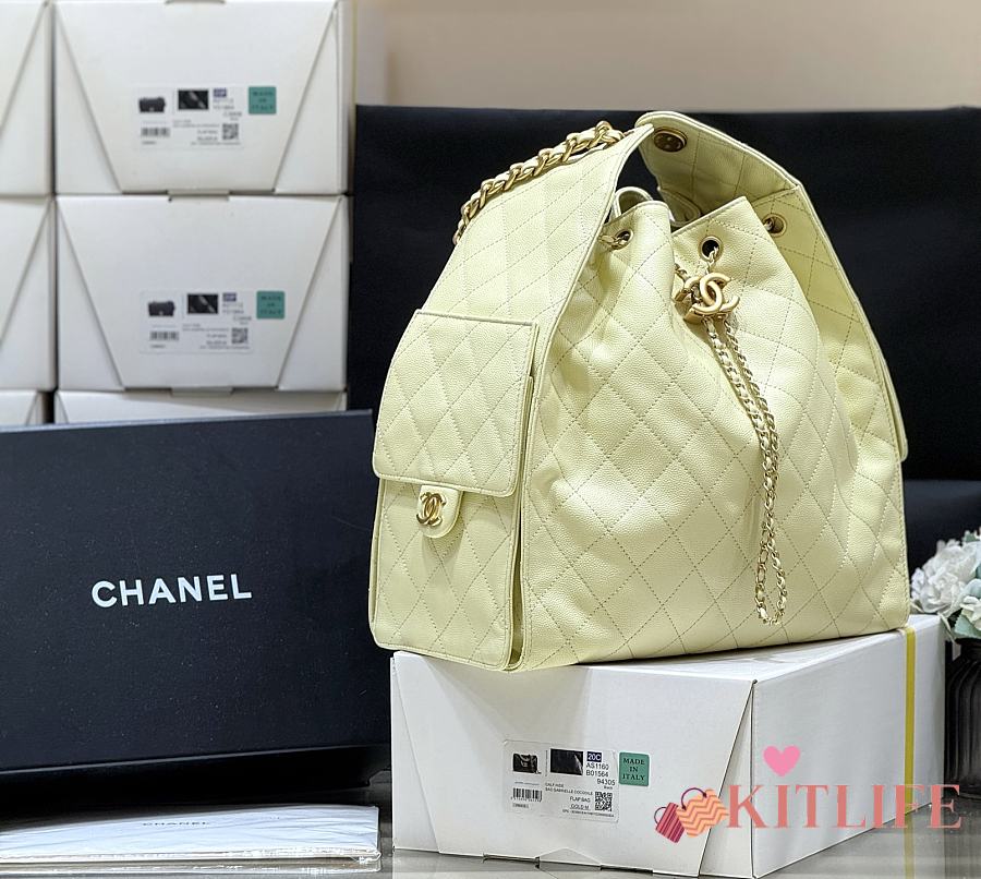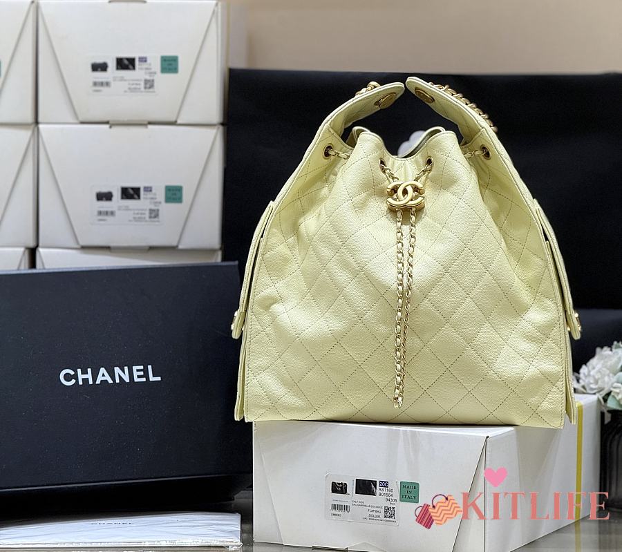 Kitlife Chanel 25C Drawstring Bucket Hobo Bag Yellow Grained Calfskin AS5311 40x30x15cm