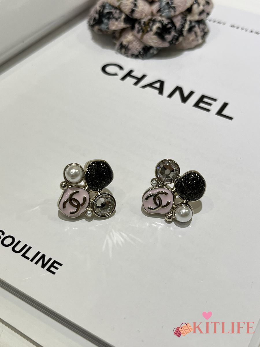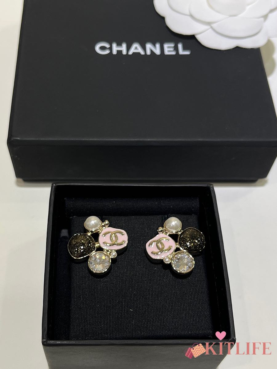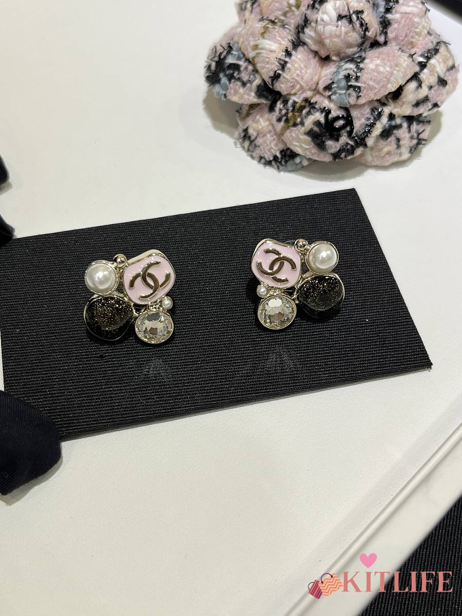 Kitlife Chanel 25K Black and Pink Enamel Double C Geometric Earrings