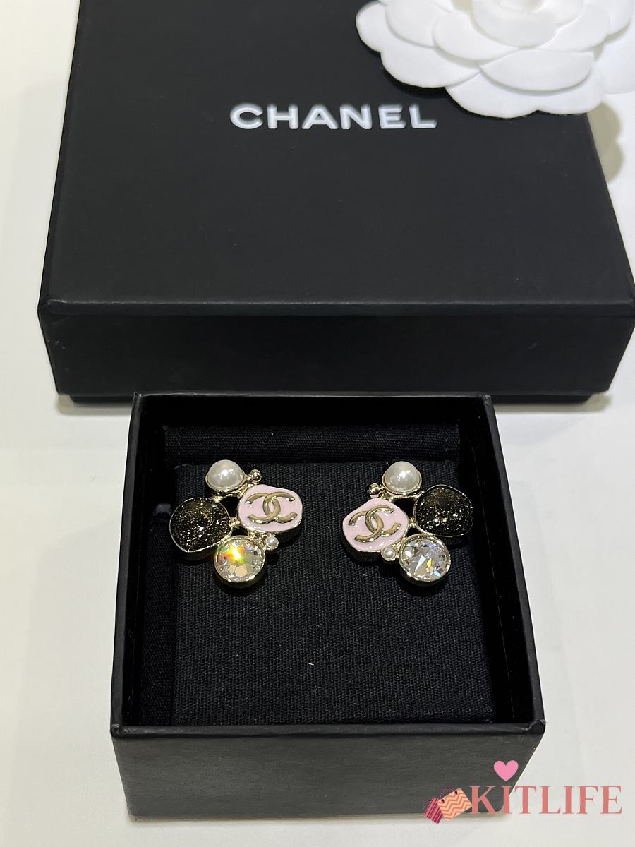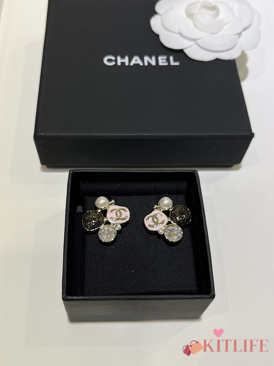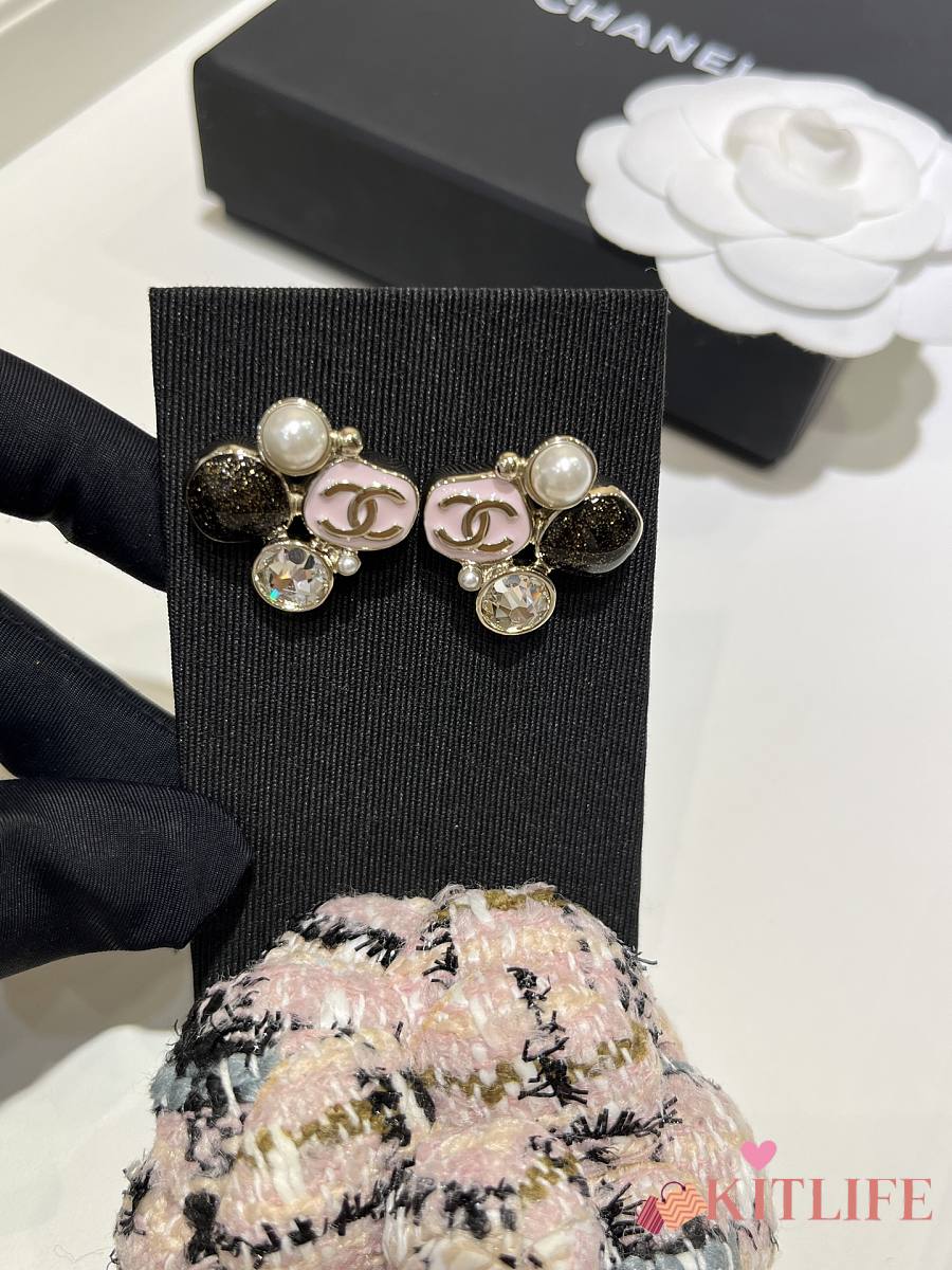 Kitlife Chanel 25K Black and Pink Enamel Double C Geometric Earrings
