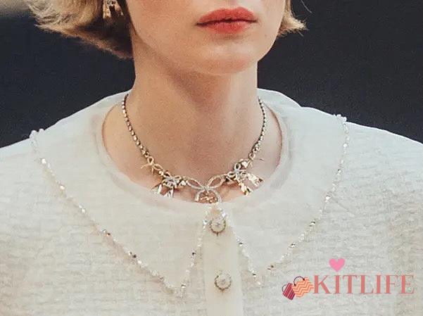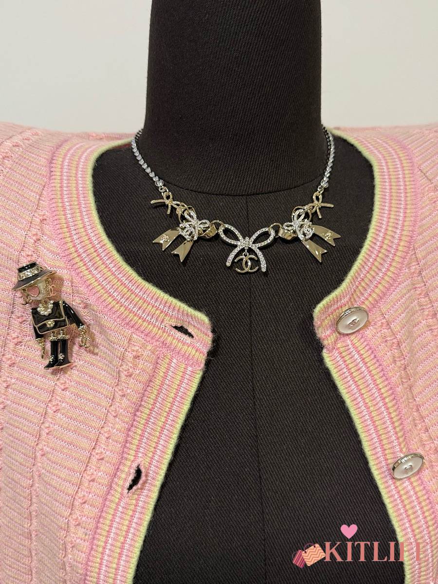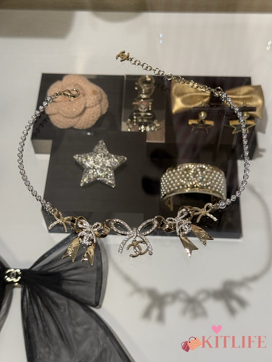 Kitlife Chanel 25k Gold And Silver Double Bow Crystal Necklace