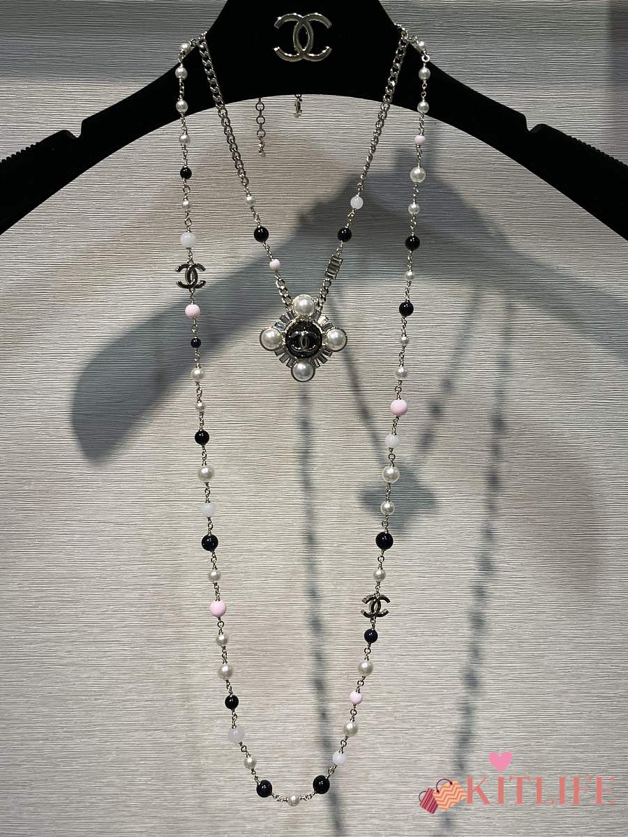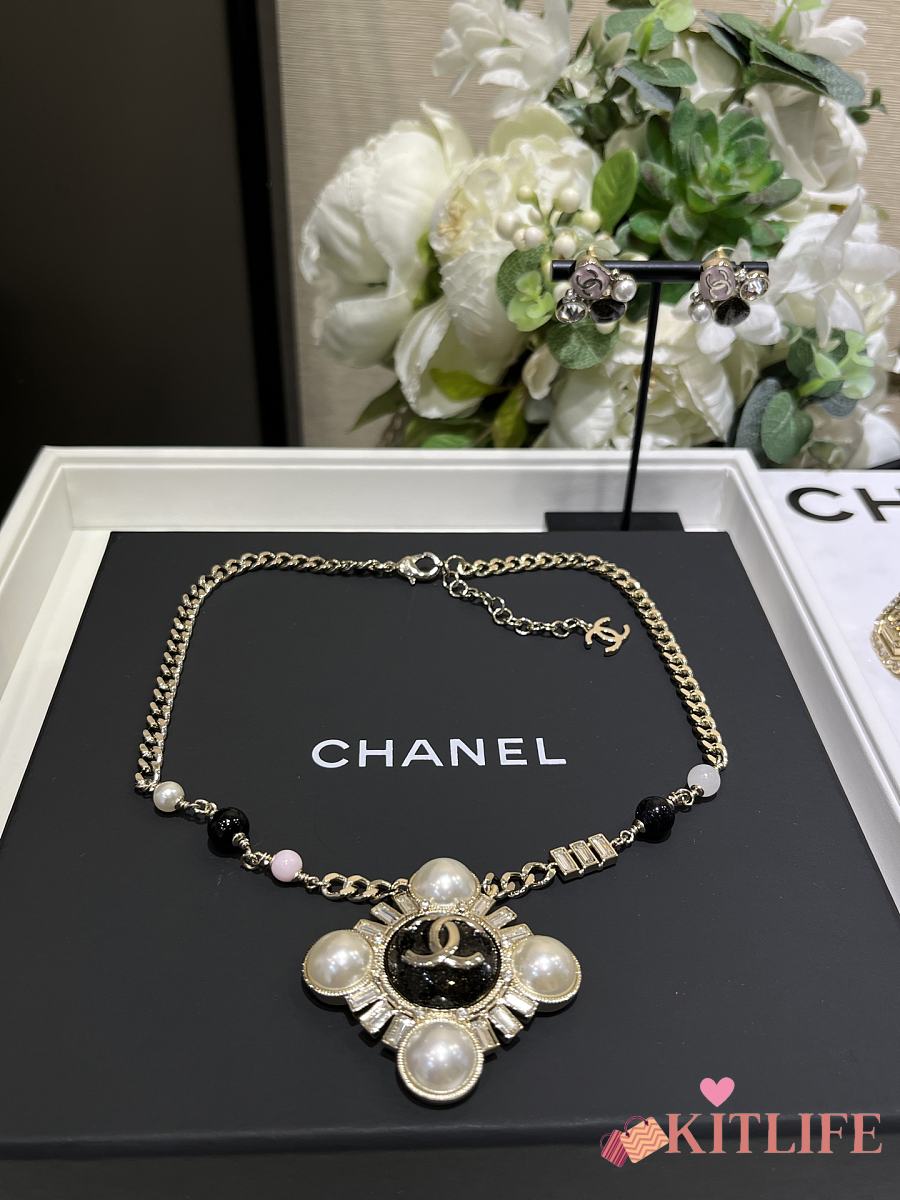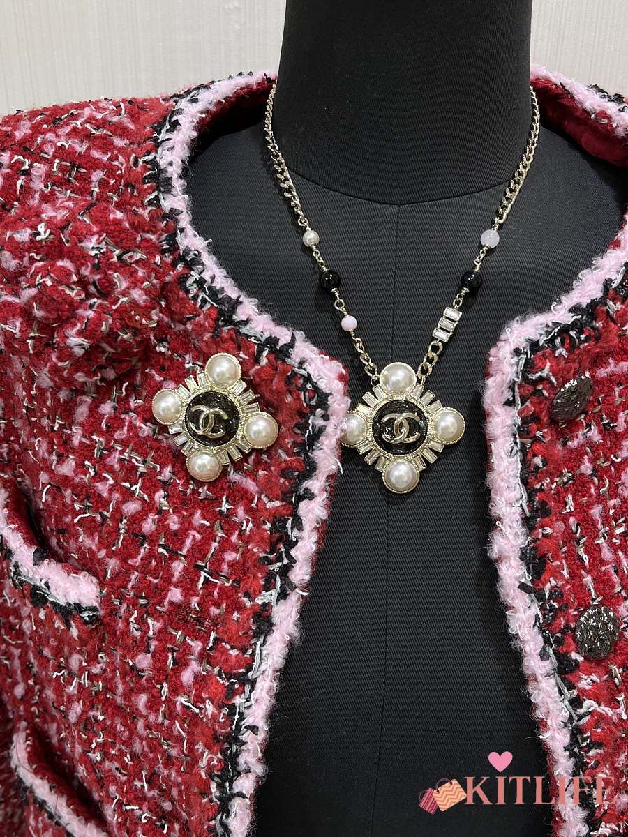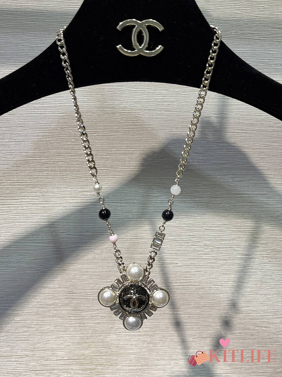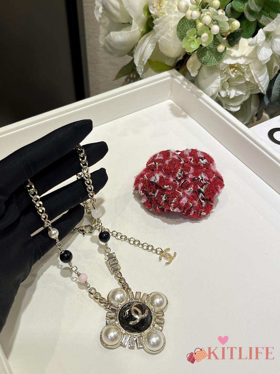 Kitlife Chanel 25K Black Enamel Pearl Rhinestone Diamond Sunflower Necklace