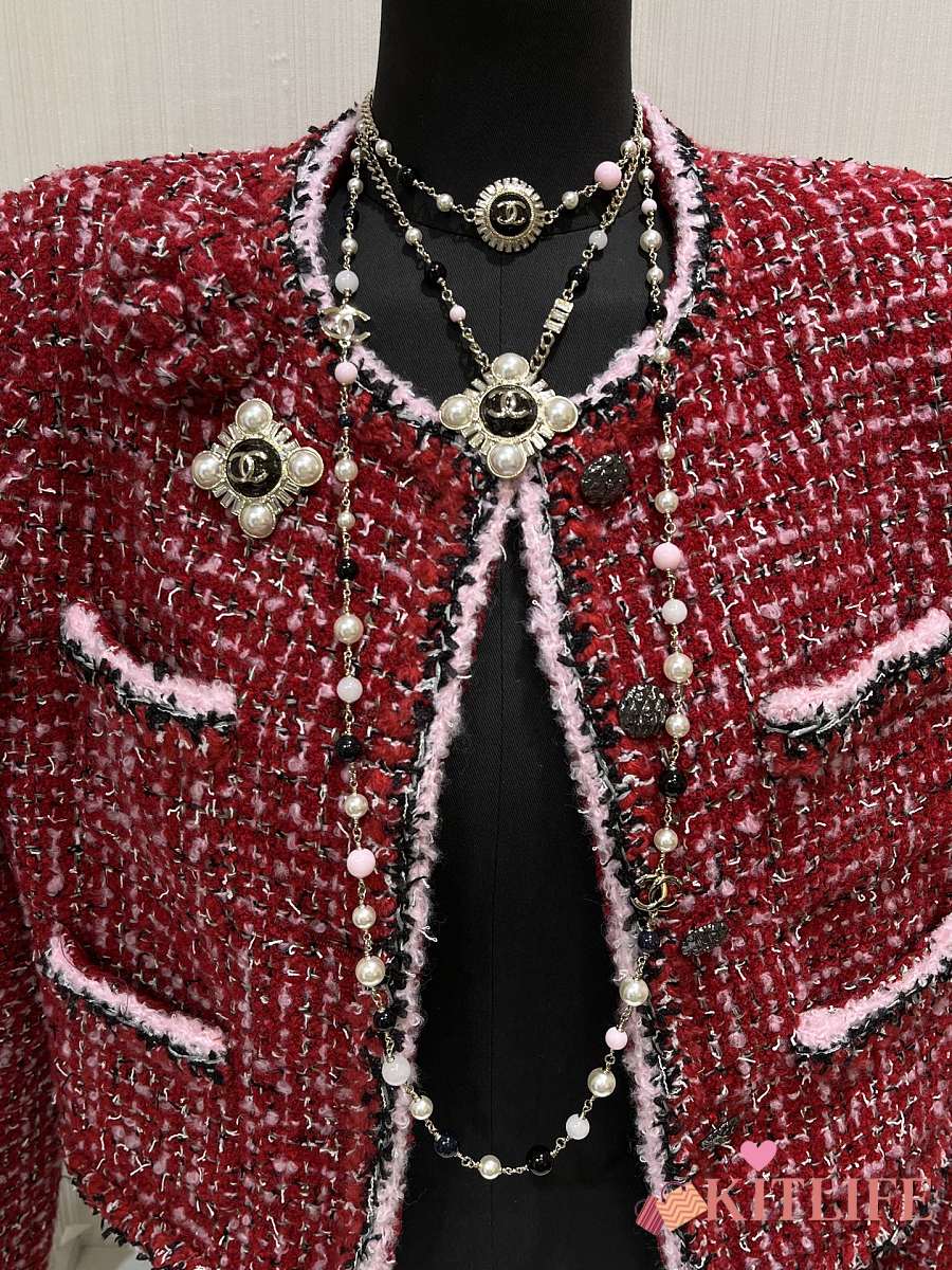 Kitlife Chanel 25K New Gold Lava Square Lace Crystal Pearl Long Necklace