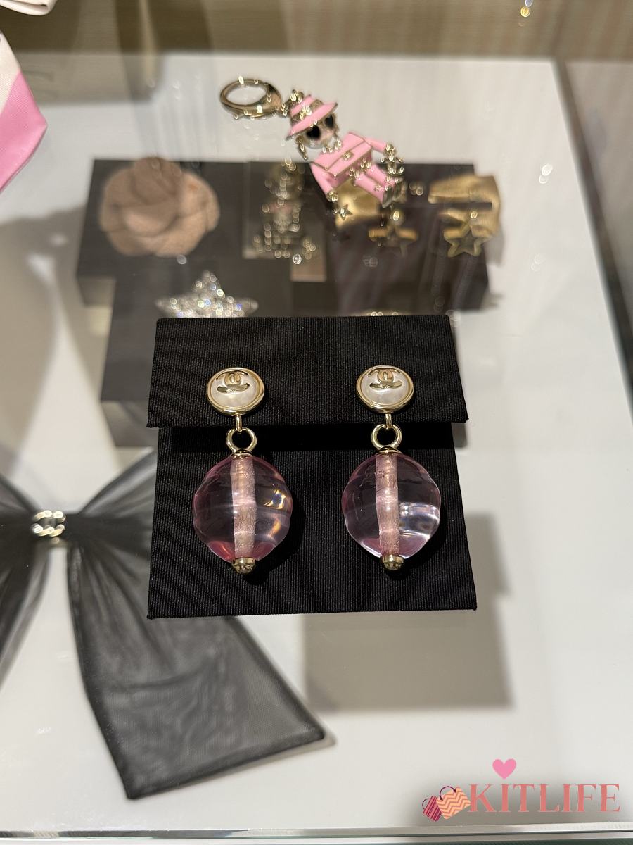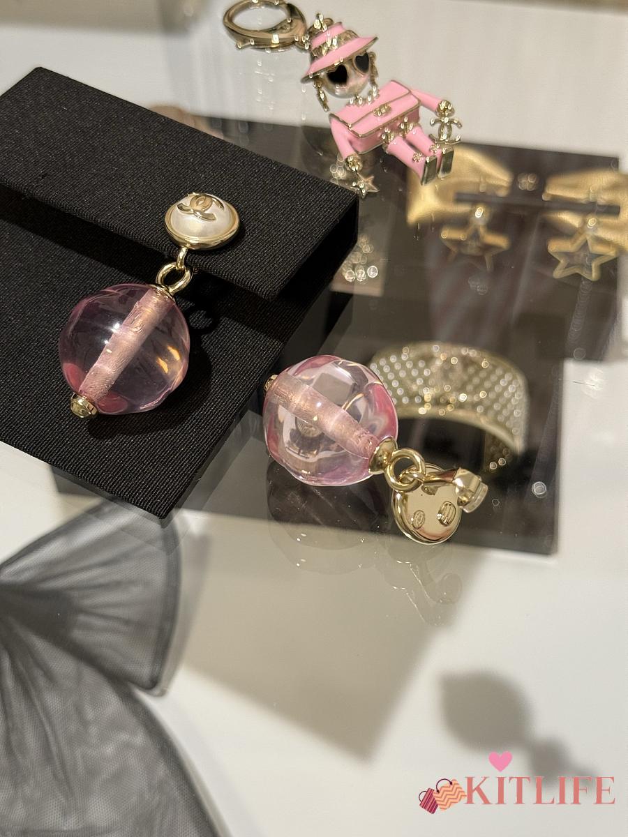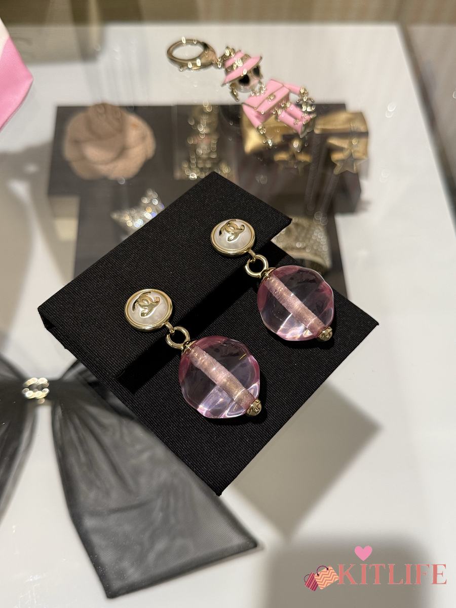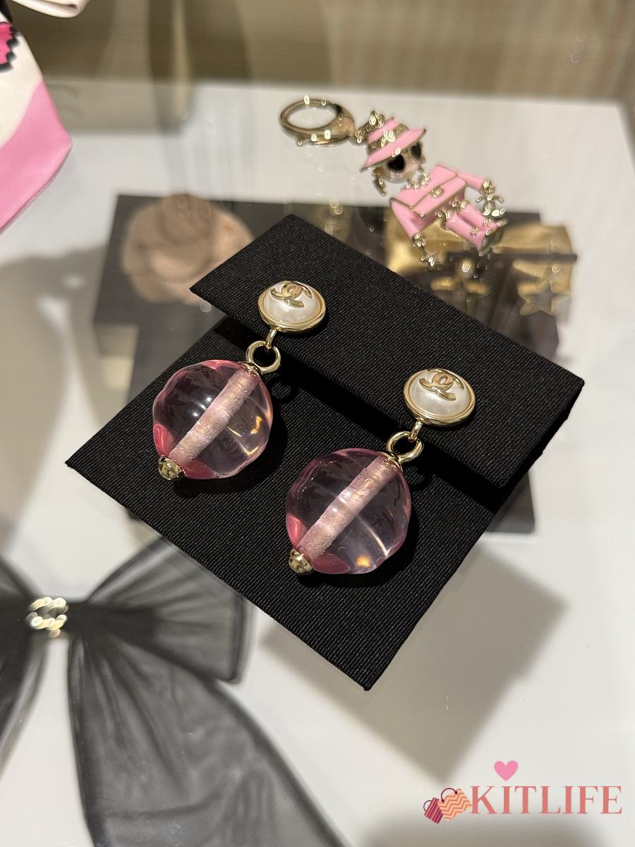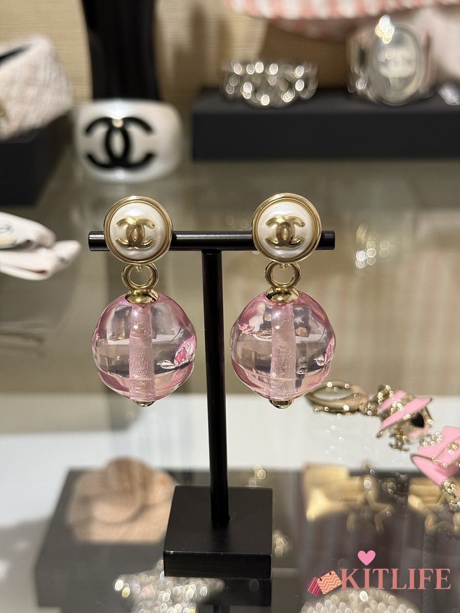 Kitlife Chanel 25K Pink Transparent Pearl Earrings Clip-on Pendant