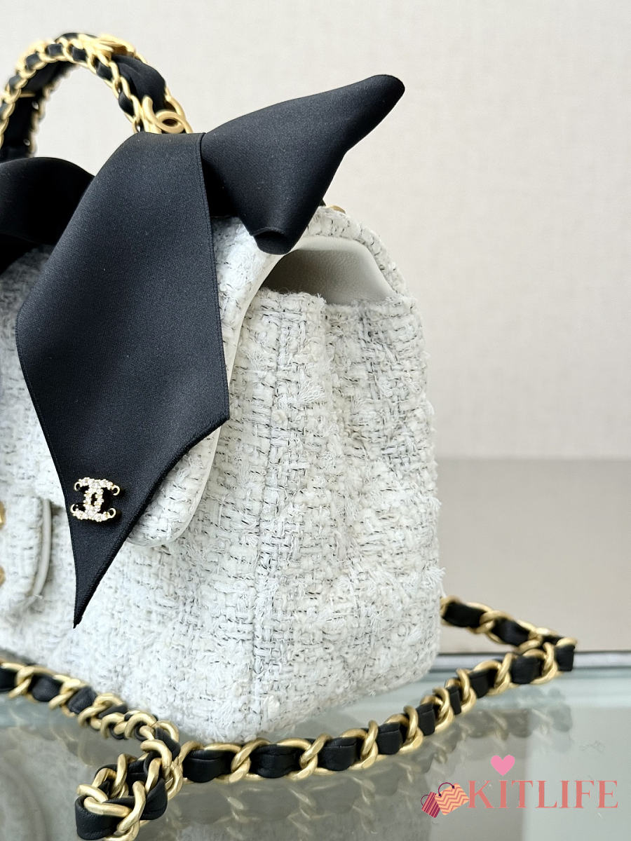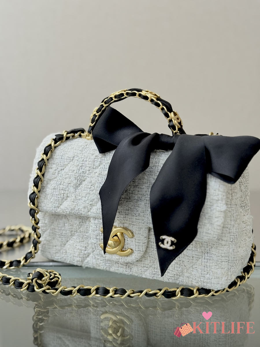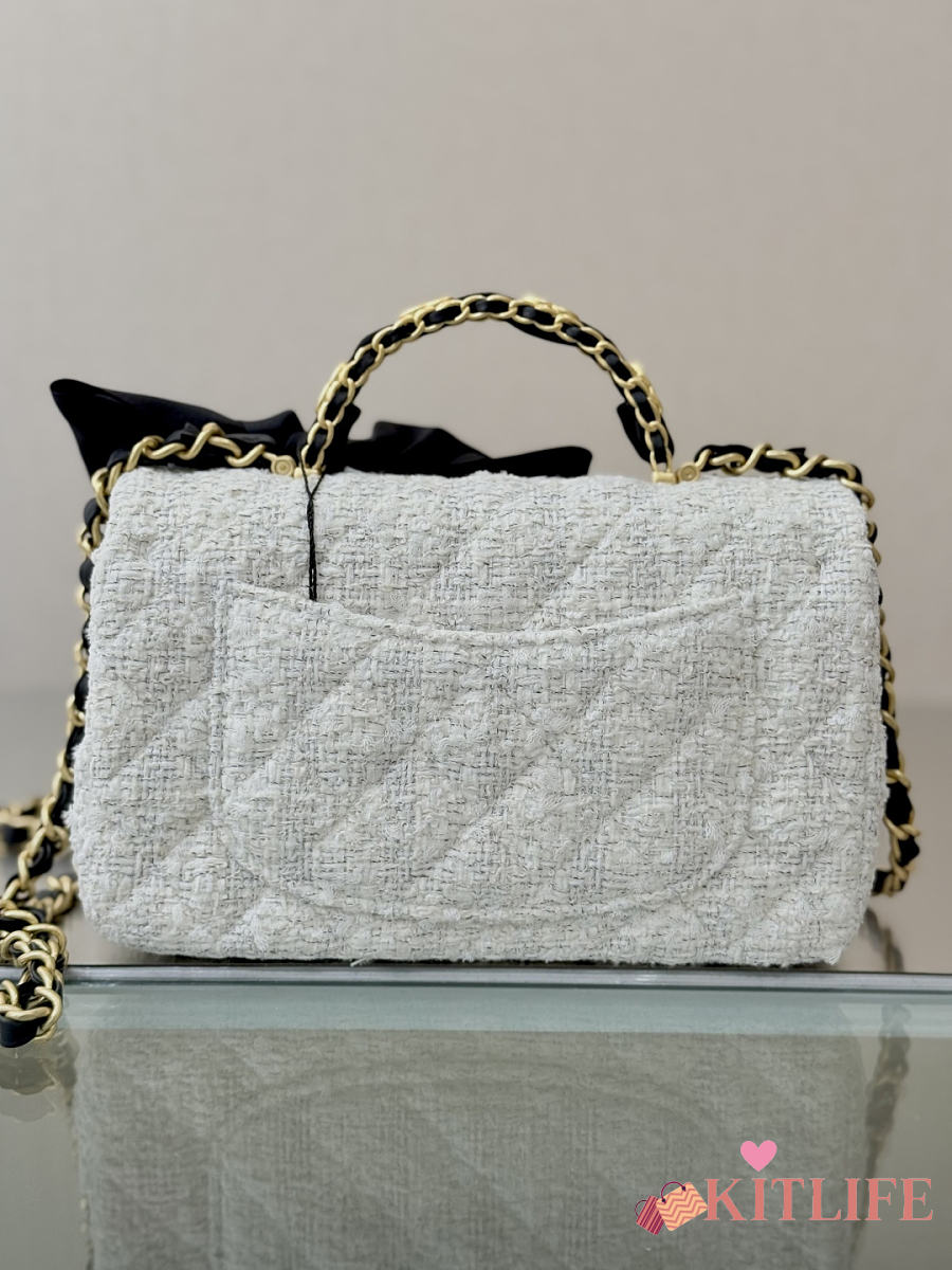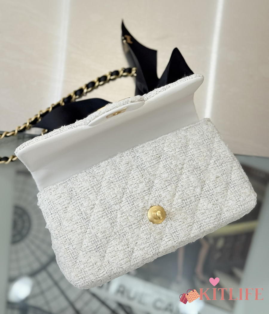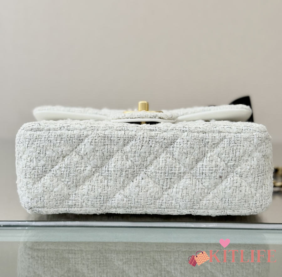 Kitlife Chanel 25k Velvet Bow Mini CF Bag with Handle White 20cm