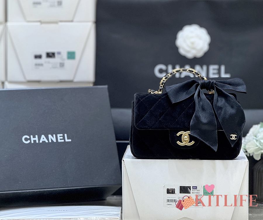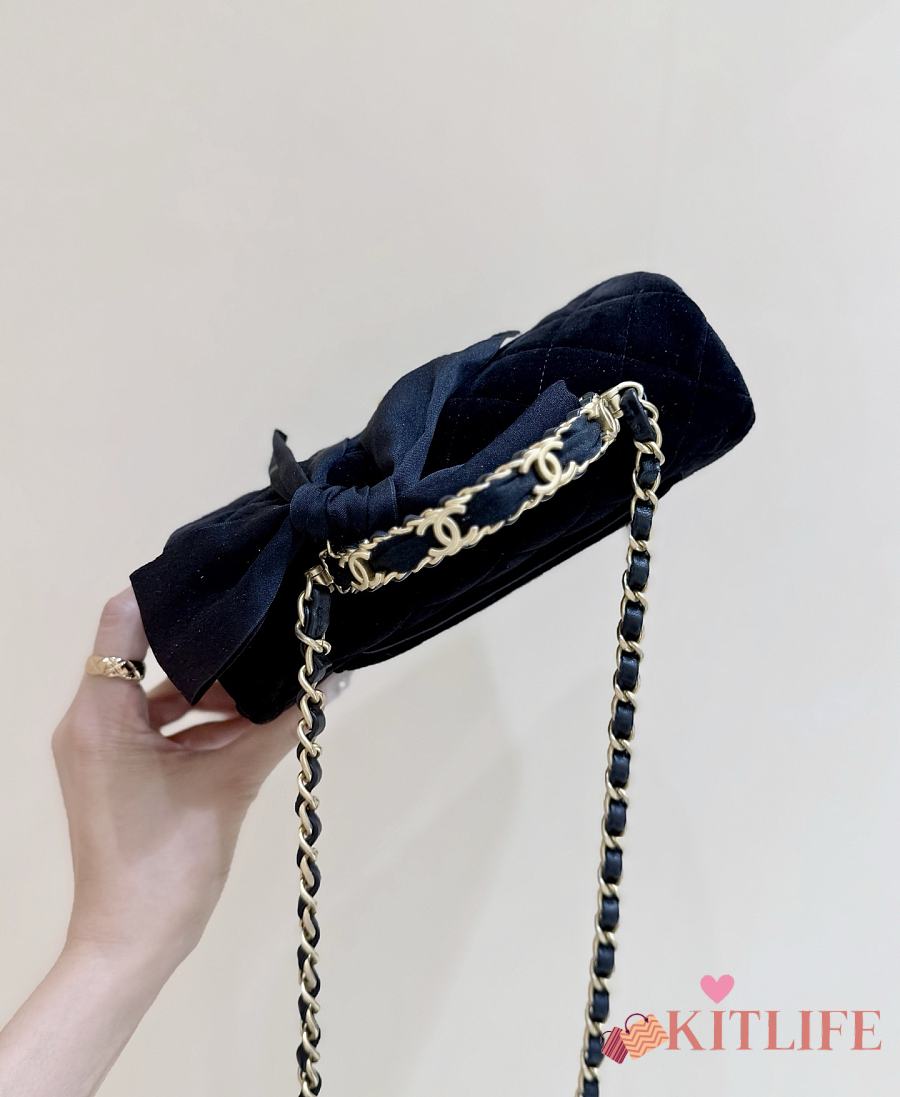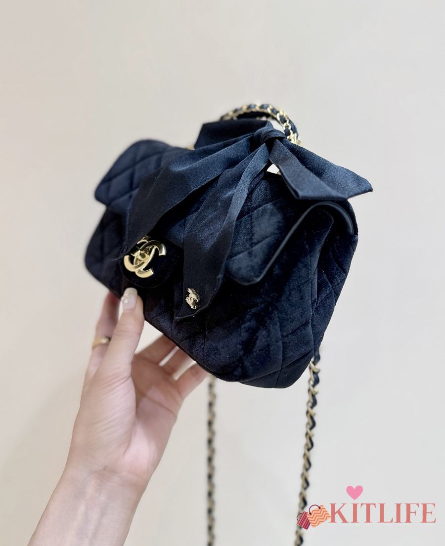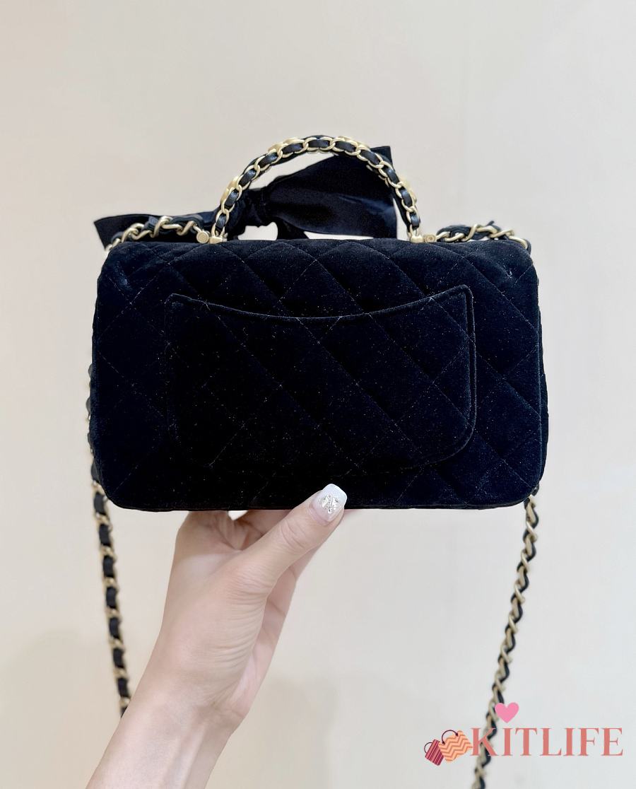 Kitlife Chanel 25K Velvet Handle Bow Mini Bag Black 13x20x6cm