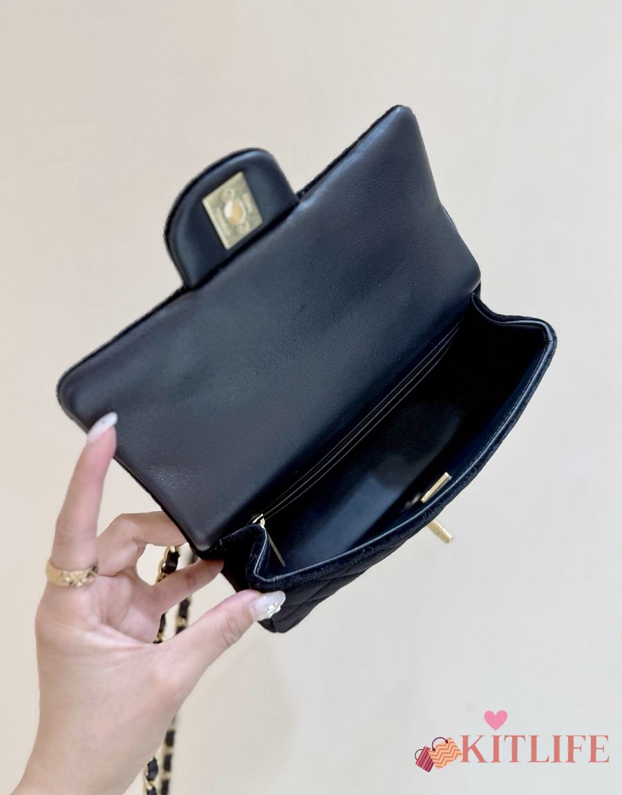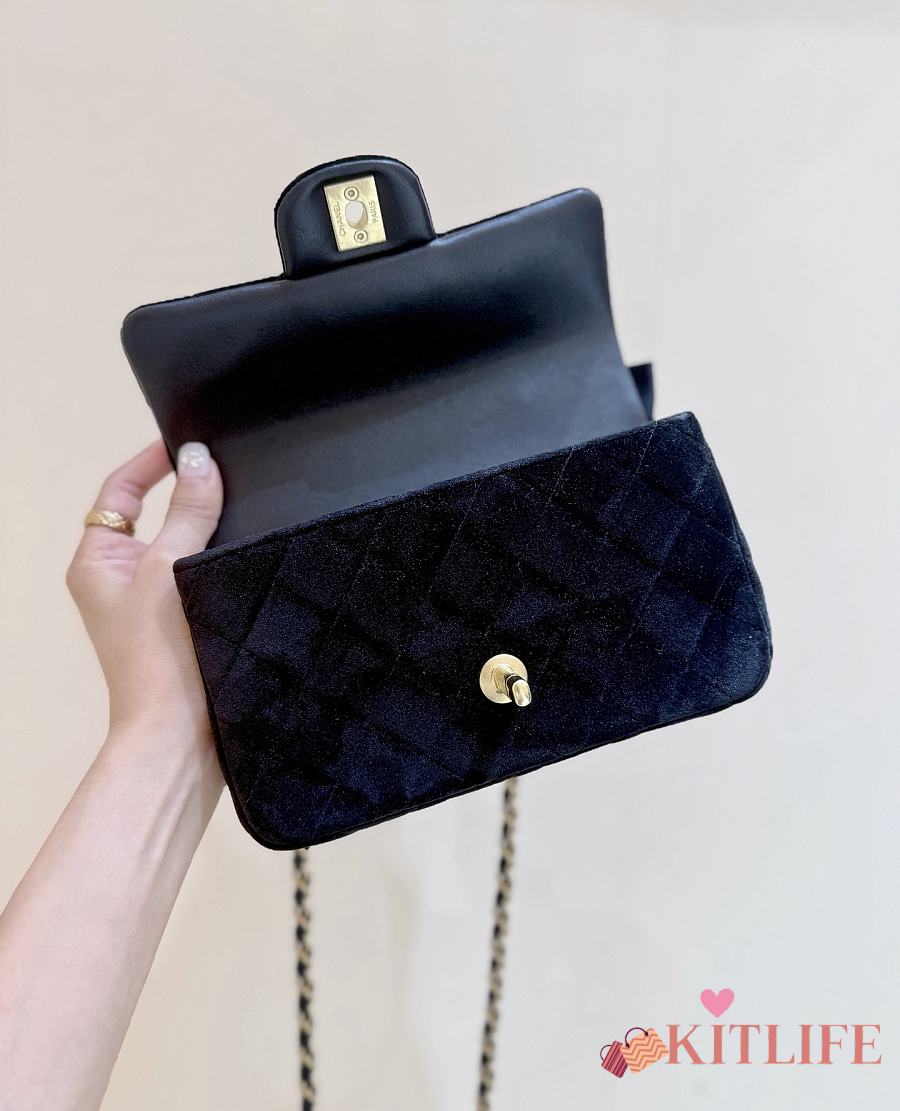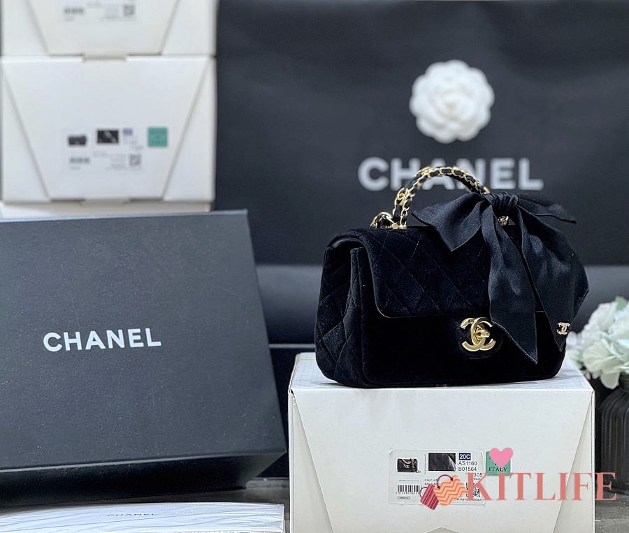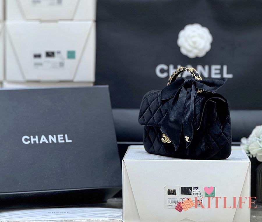 Kitlife Chanel 25K Velvet Handle Bow Mini Bag Black 13x20x6cm