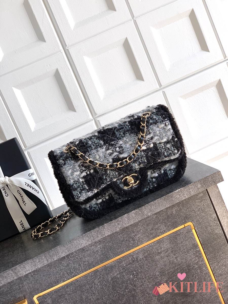 Kitlife Chanel 25N CF Tweed Bag Black & Grey AS5686 26cm