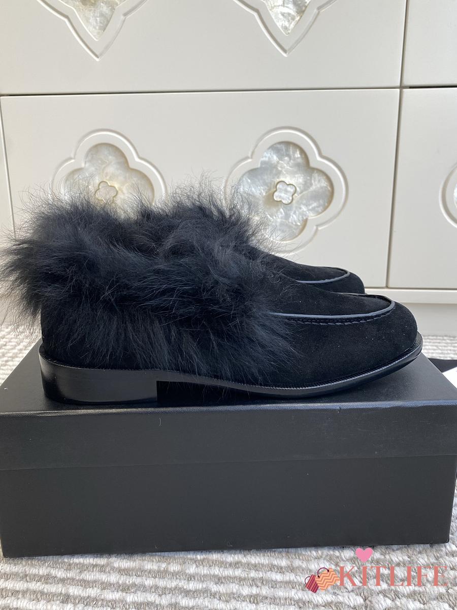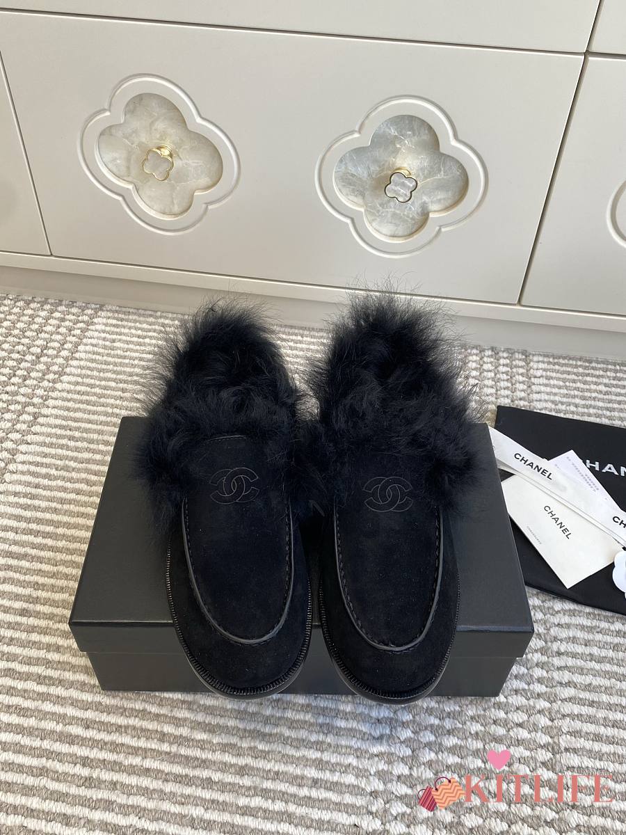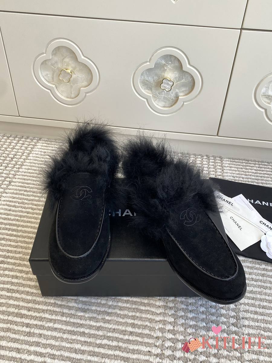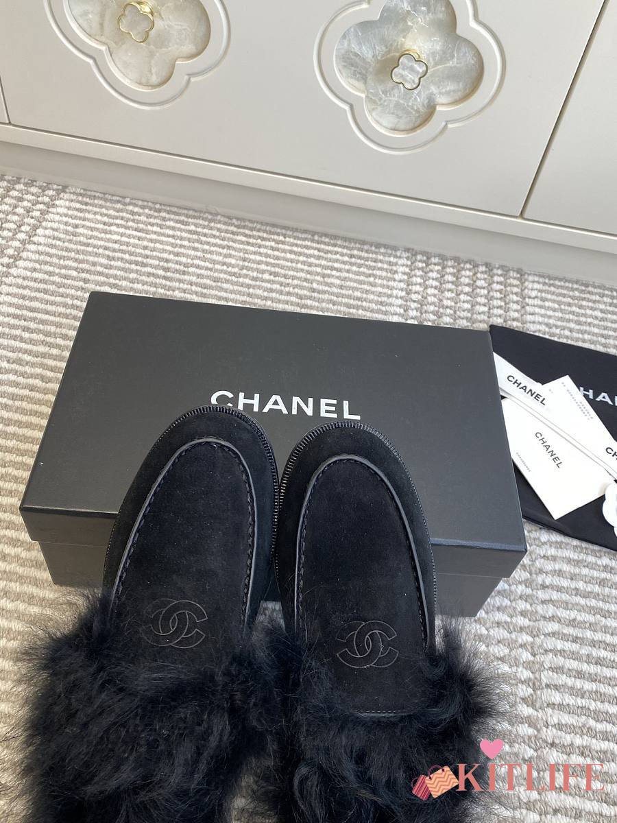 Kitlife Chanel 25N Furry Loafers Black Suede Leather