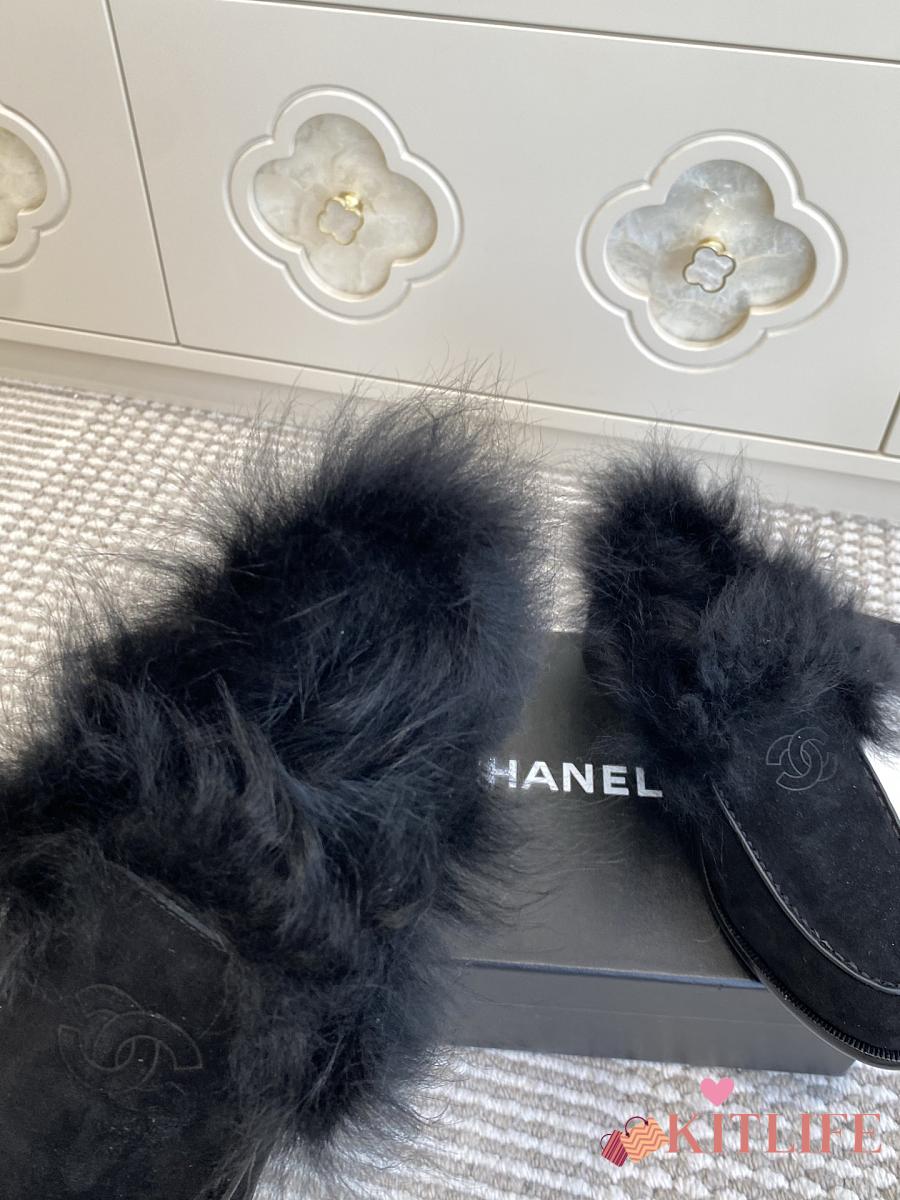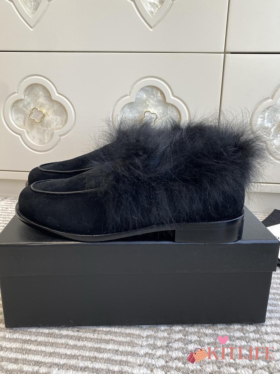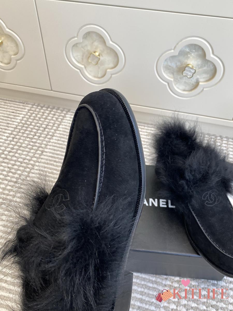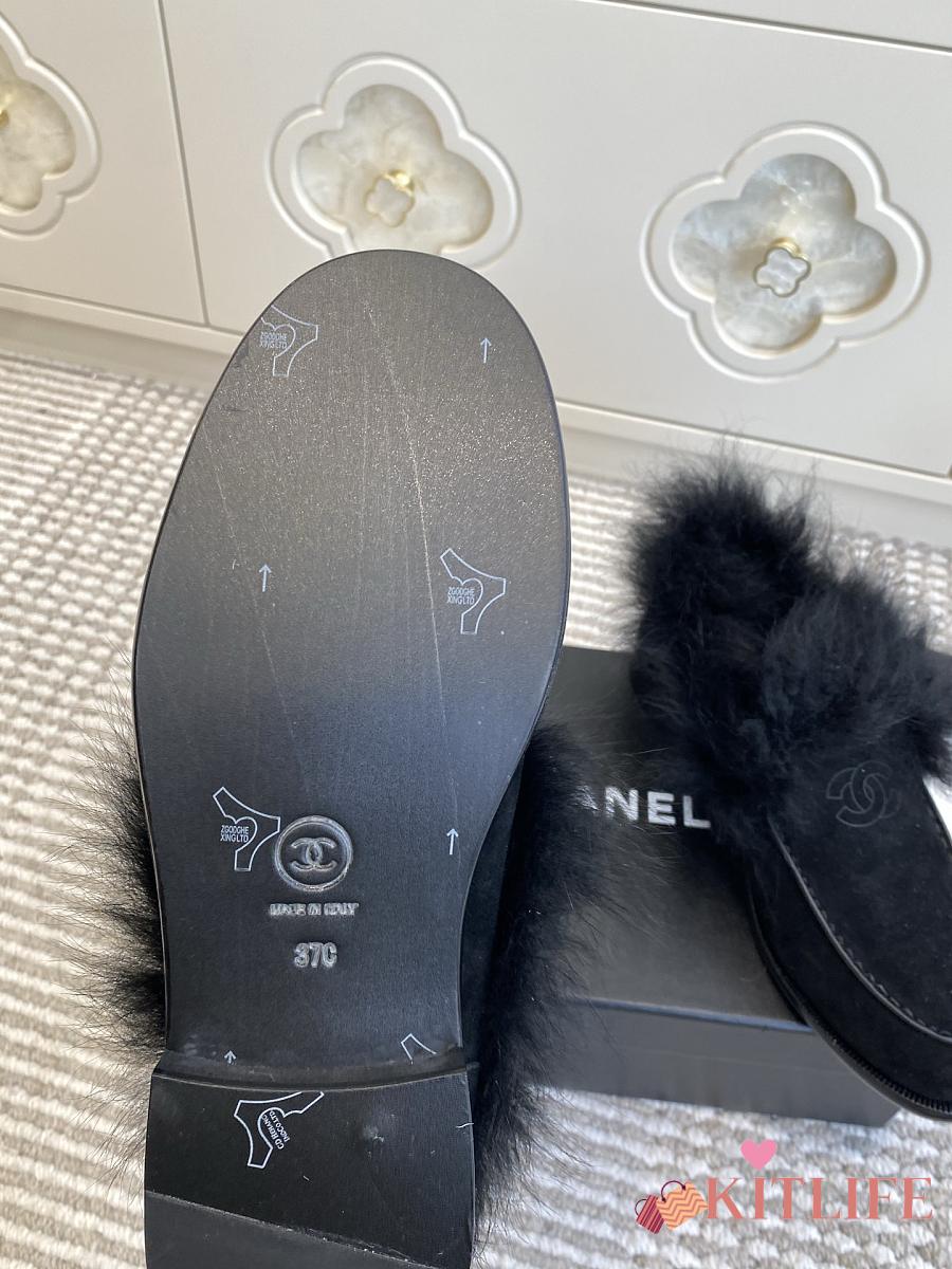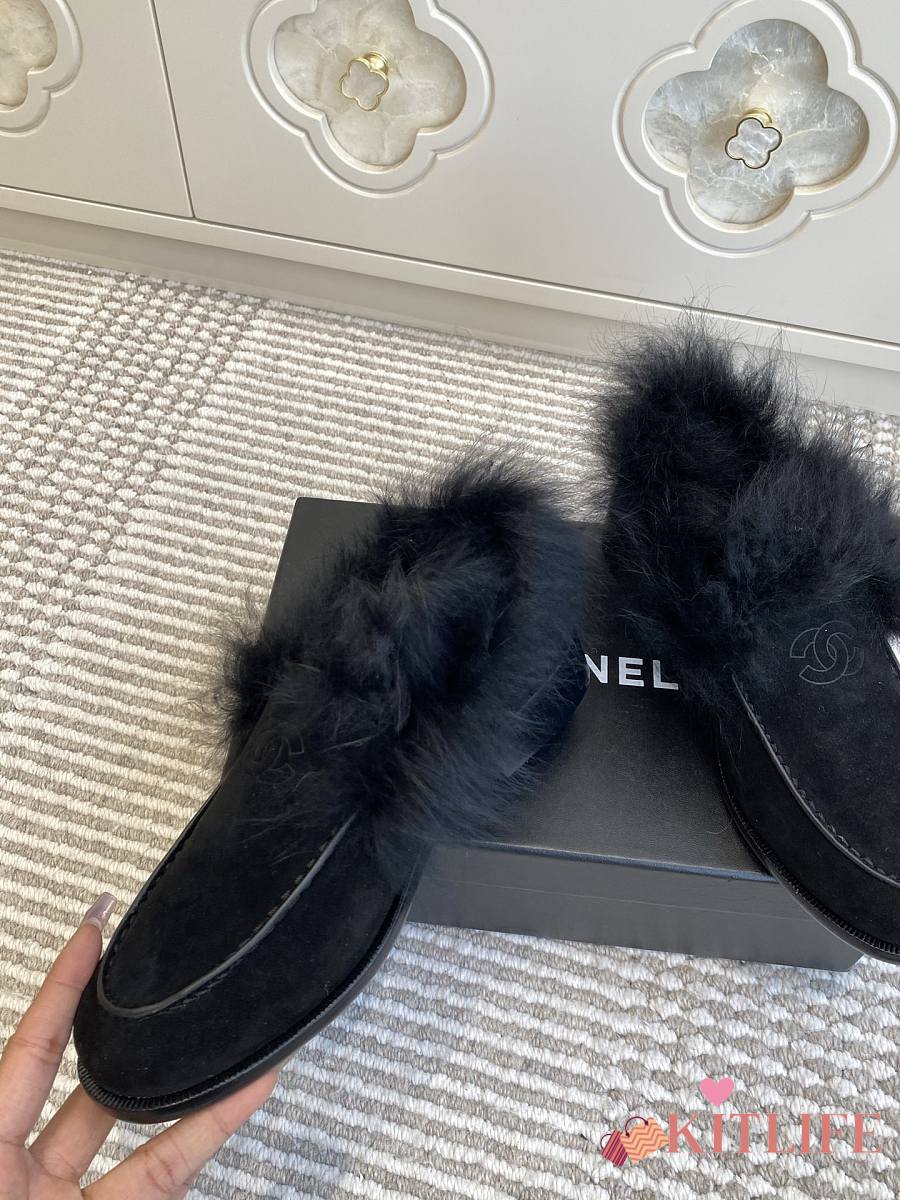 Kitlife Chanel 25N Furry Loafers Black Suede Leather