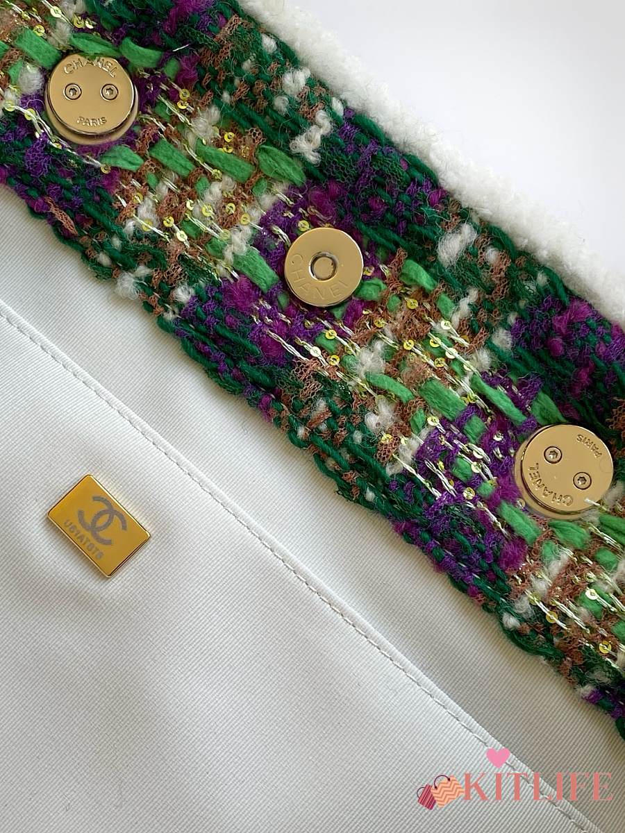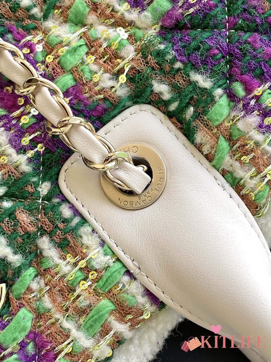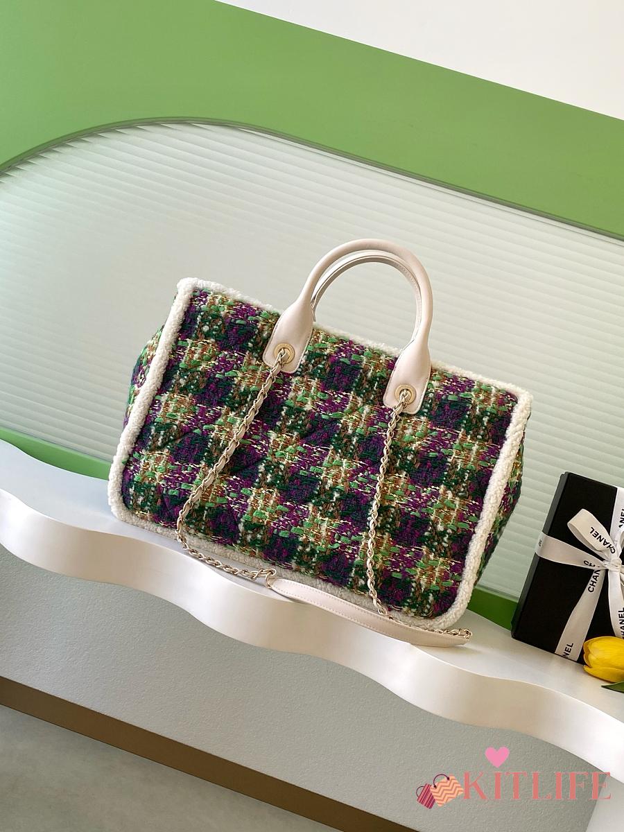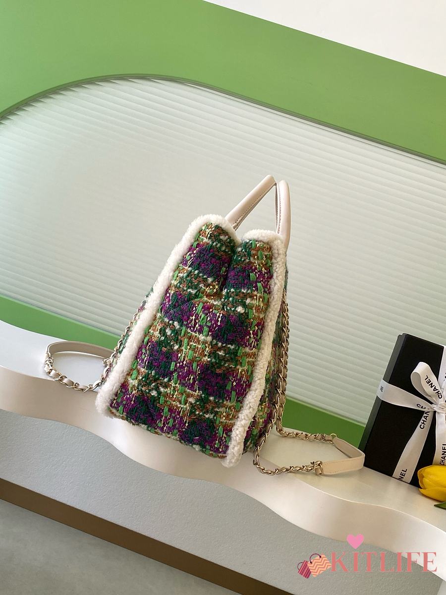 Kitlife Chanel 25N Tweed Shopping Bag Green AS5689 27.5x39.5x16cm